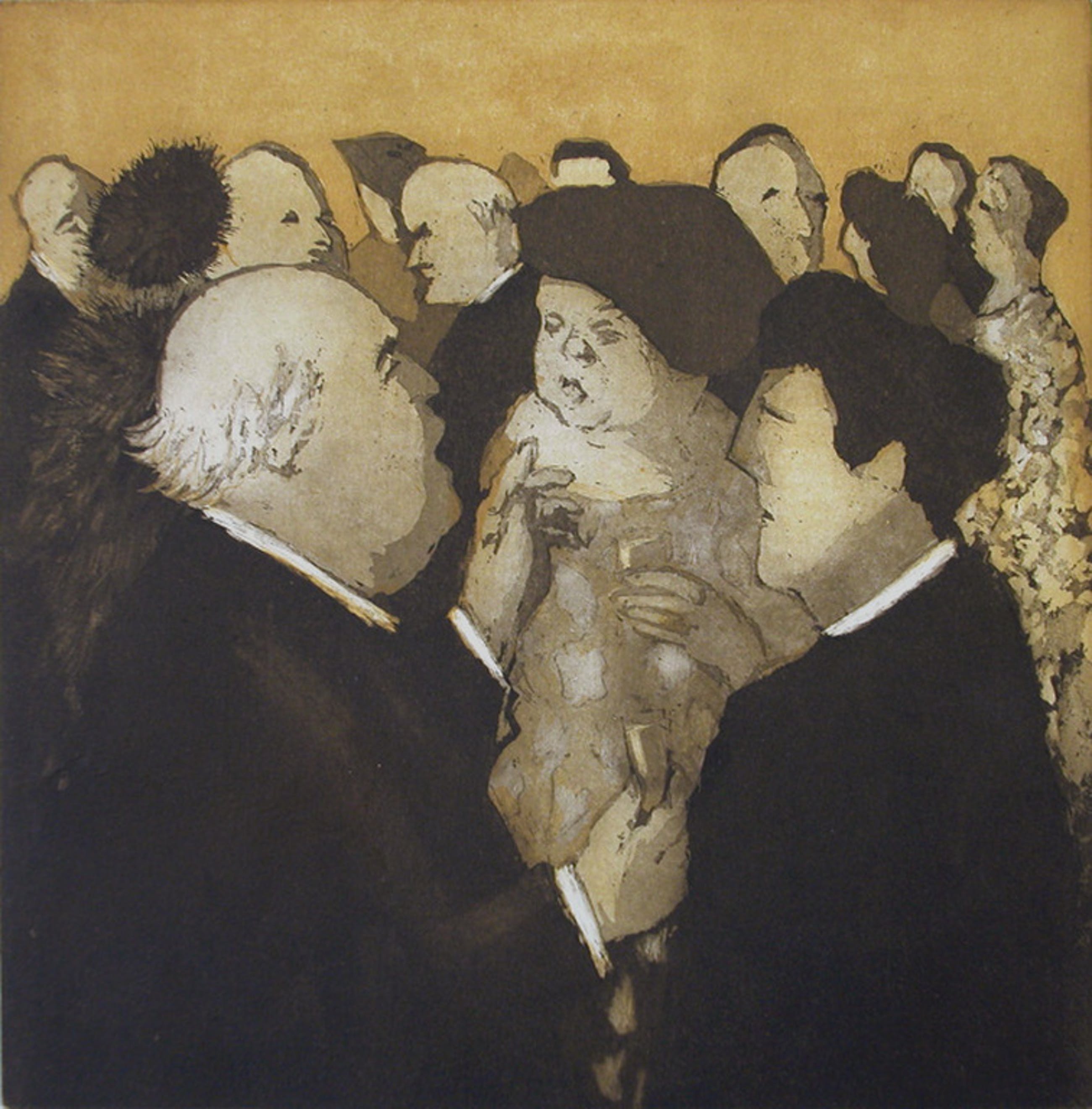 Een bekend thema uit het werk van Willy Belinfante zijn de ontmoetingen op recepties en partijen.