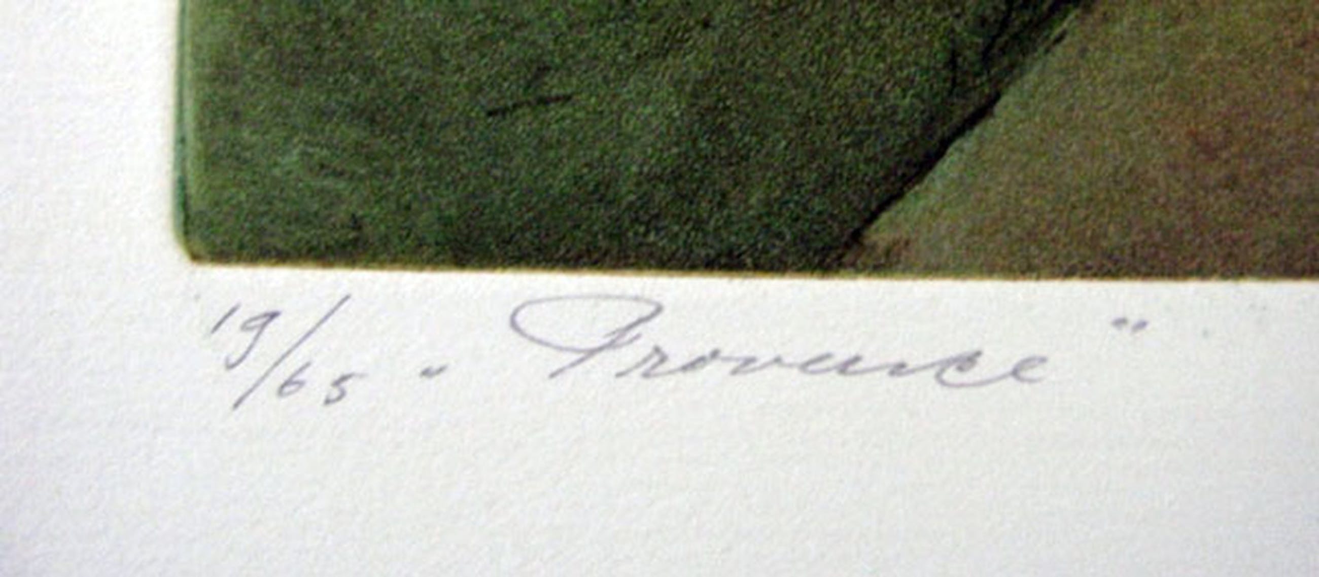 Is het Ansouis of Lamartine ? In de Provence is het in ieder geval. De afbeelding heeft een afmeting van 35 x 25 en het gehele blad meet 51 x 39. De oplage 19/65, titel en handtekening zijn met dun potlood onder de kleurets door de kunstenaar genoteerd. Het jaartal is niet bekend. De conditie van de ets is uitstekend. De verzending is aangetekend via PostNL.