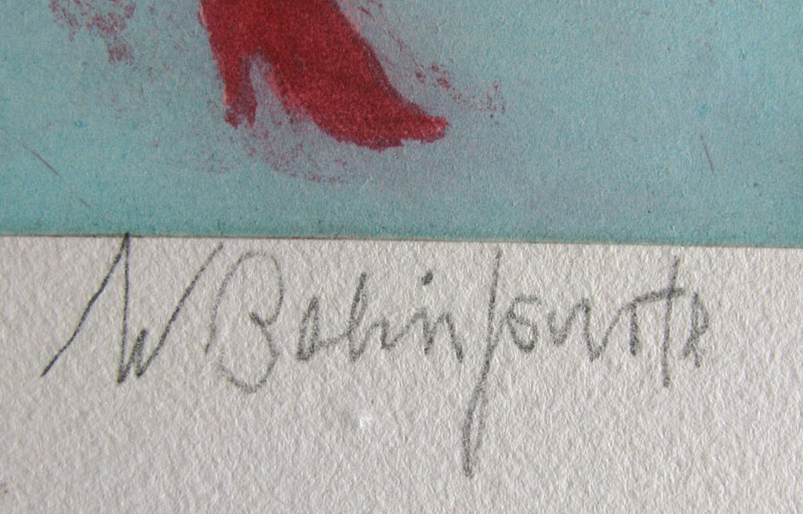 Het blad van deze kleurets heeft een afmeting van 33 x 38 en de afbeelding zelf meet 18 x 24. Het werk is duidelijk later door de kunstenaar gesigneerd, er wordt geen titel, oplage en jaartal vermeld. Aan de linkerzijde is een lichte vouw in het blad ontstaan, die voor een klein deel door de afbeelding gaat.