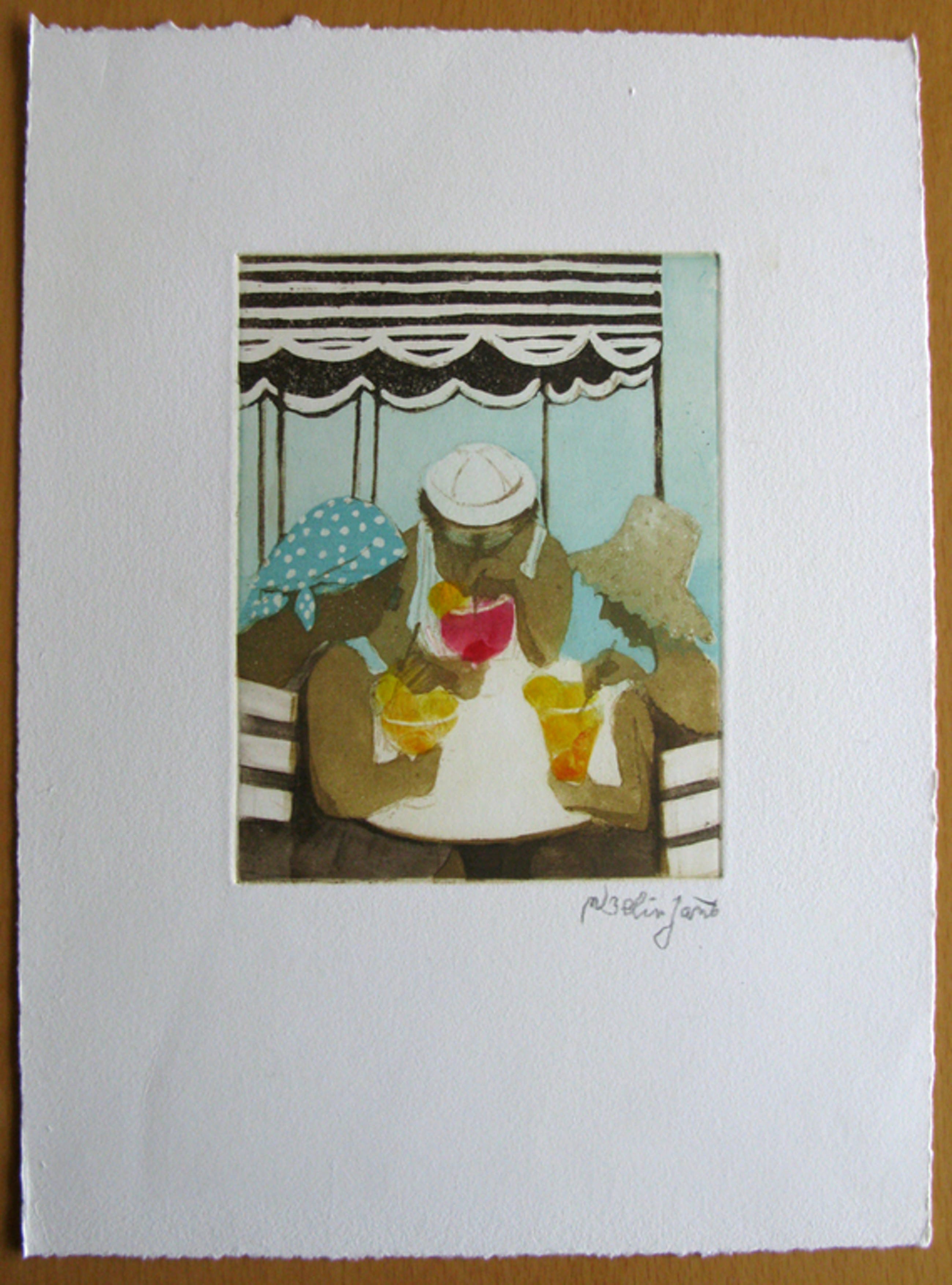 De afbeelding meet 16 x 12 en het blad van deze kleurets meet 32 x 23. De kleurets is duidelijk later door de kunstenaar gesigneerd - titel, oplage en jaartal zijn niet weergegeven. Linksonder is een zeer licht vouw in het blad gekomen, daarom is de conditie goed te noemen. De ets wordt zonder lijst aangeboden. De verzending is aangetekend via PostNL.