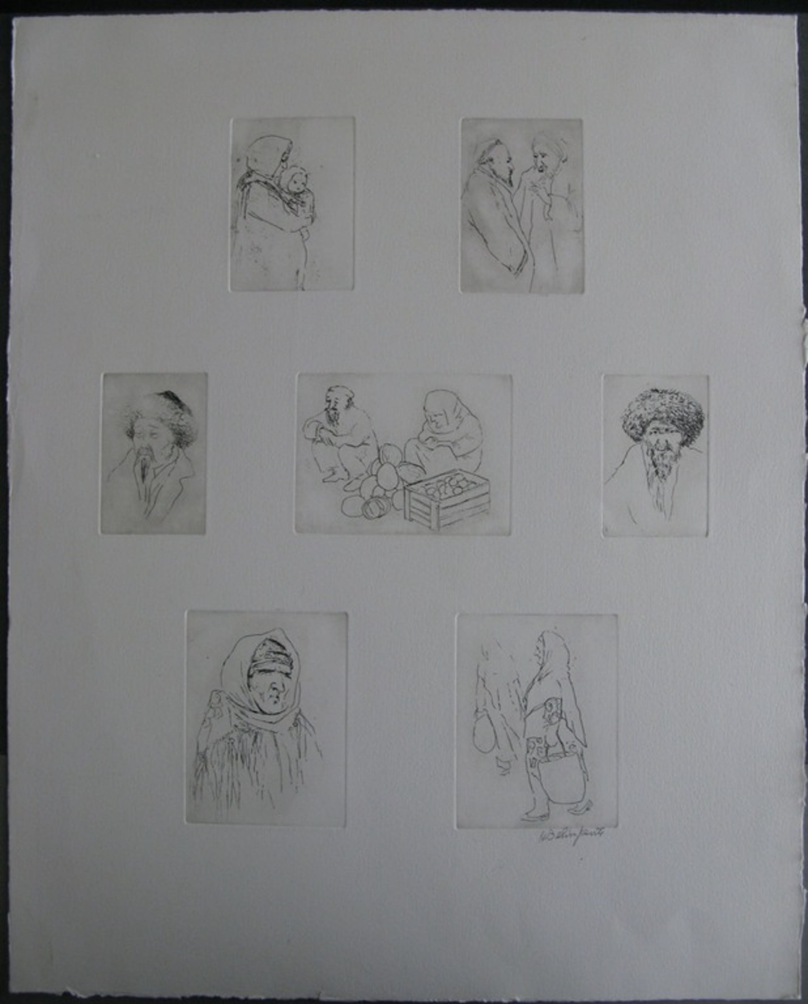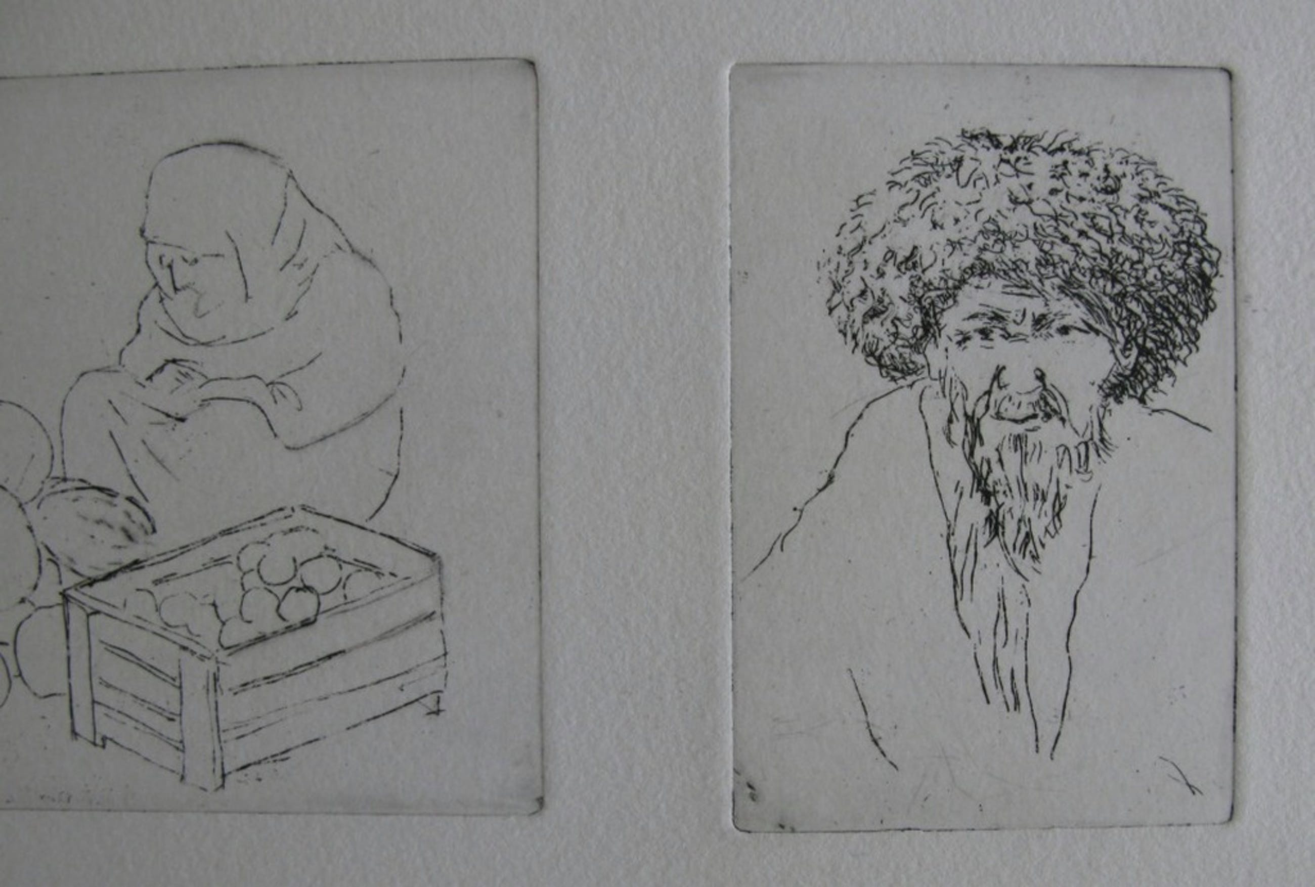 De indrukken van een reis naar de Oriënt zijn weergegeven in de zeven afbeeldingen op dit blad. De afmeting van het blad is 56 x 44. De conditie van deze ets is uitstekend. Het werk is later door de kunstenaar gesigneerd. Er is geen titel en oplage bekend. Voor een bedrag van € 10 wordt dit werk goed verpakt bij PostNL aangeboden voor een aangetekende verzending binnen Nederland. Deze kosten zijn voor rekening van de koper.