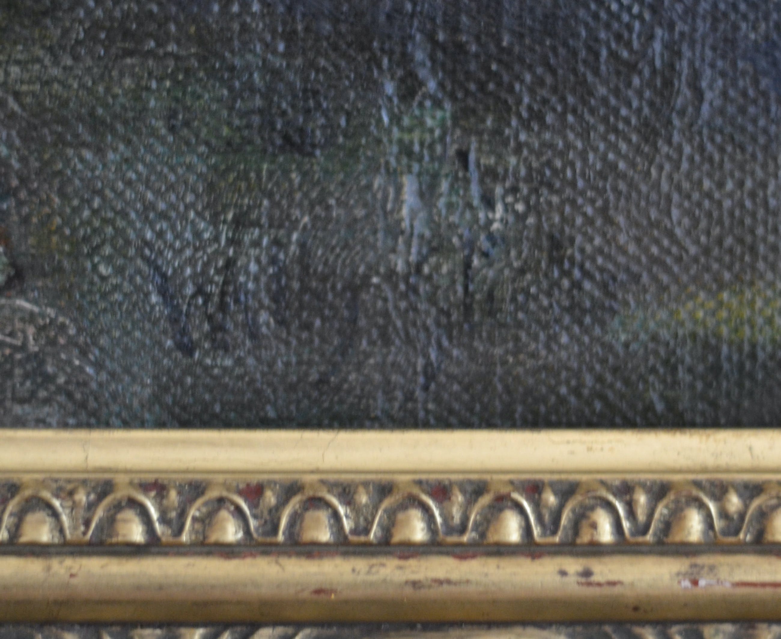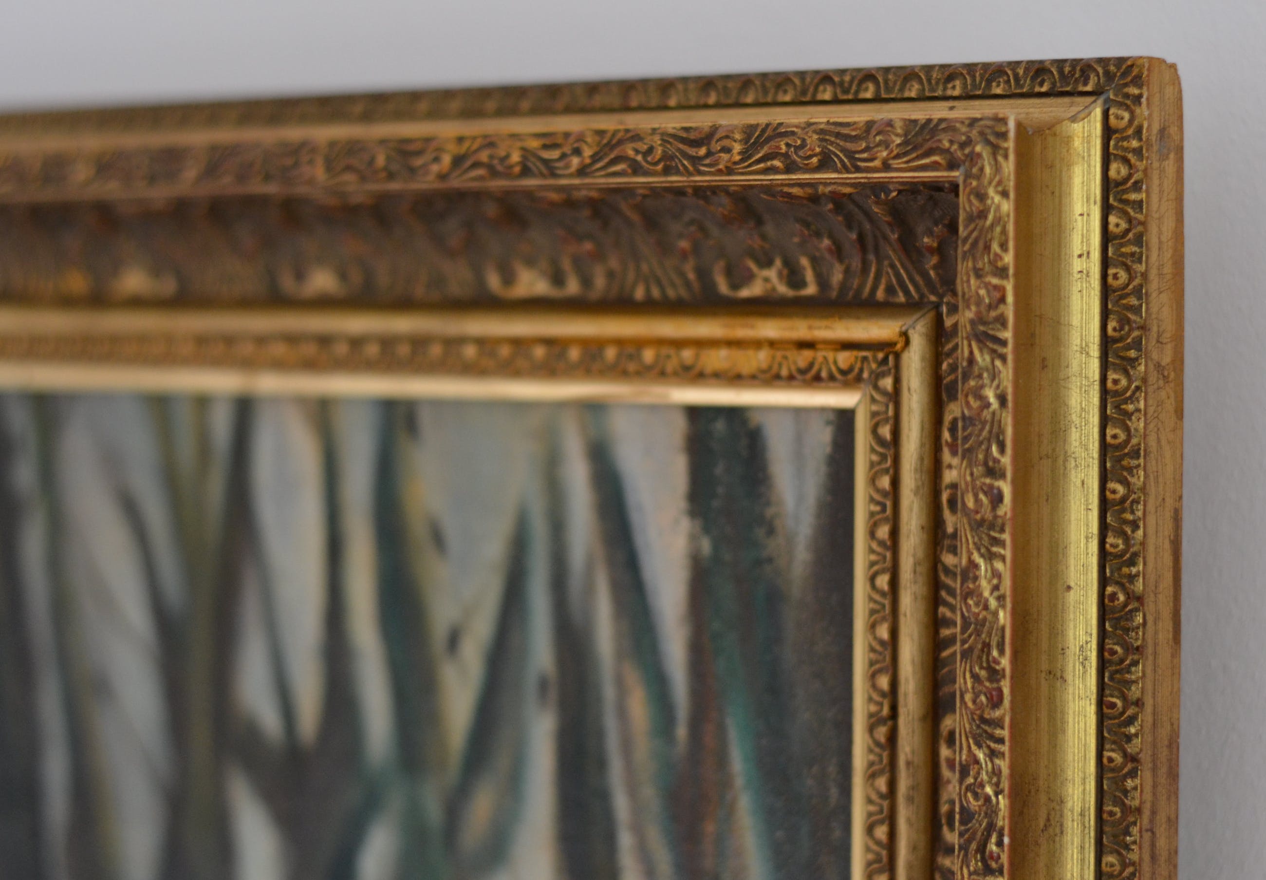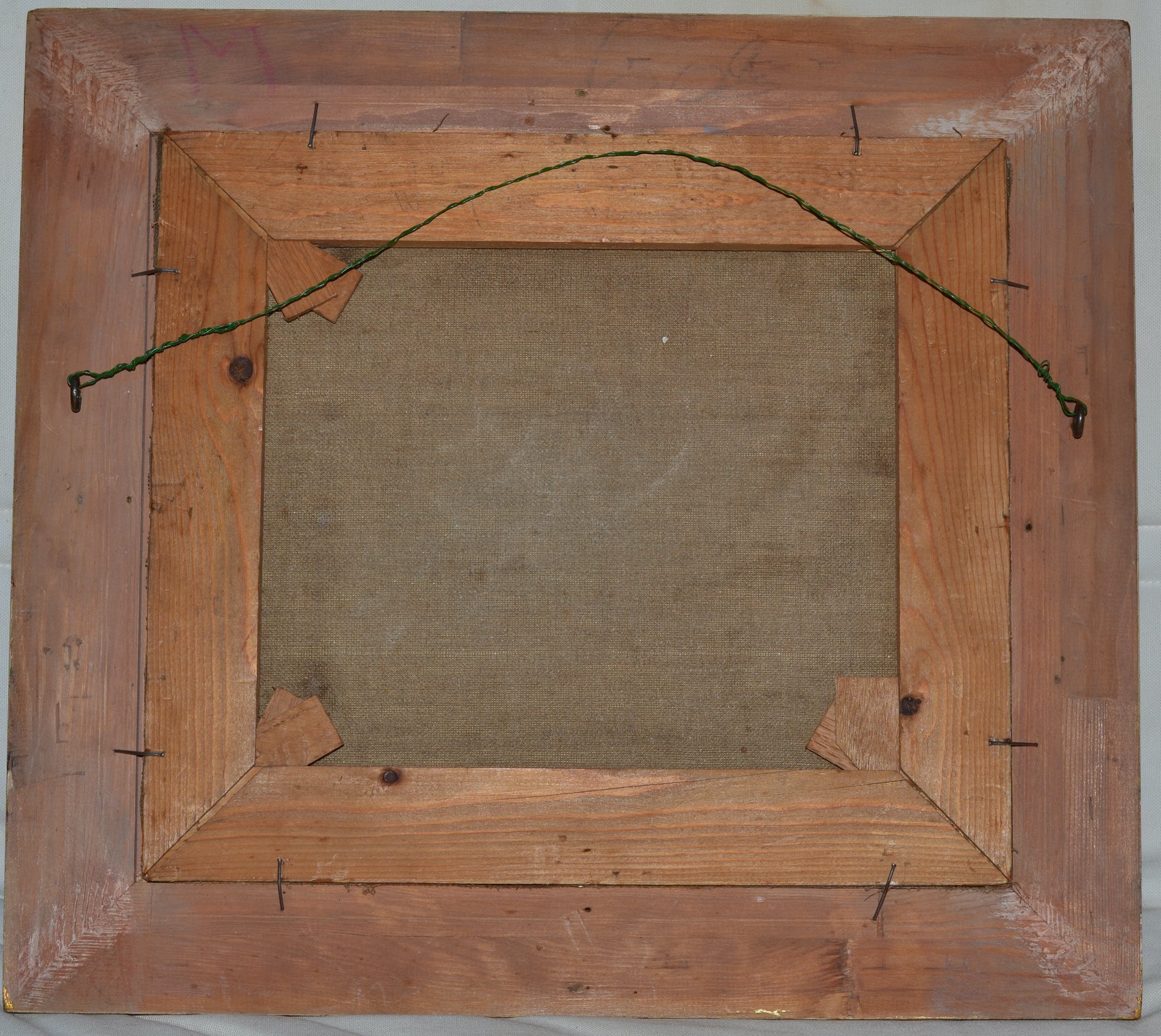 Gekocht bij een veiling met titel "Bootje tussen bomen", maar ik houd het op bootjes met masten/zeilen.