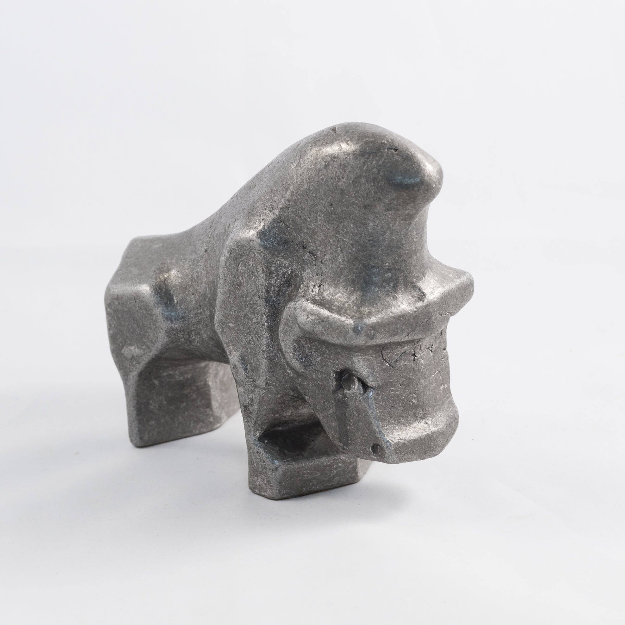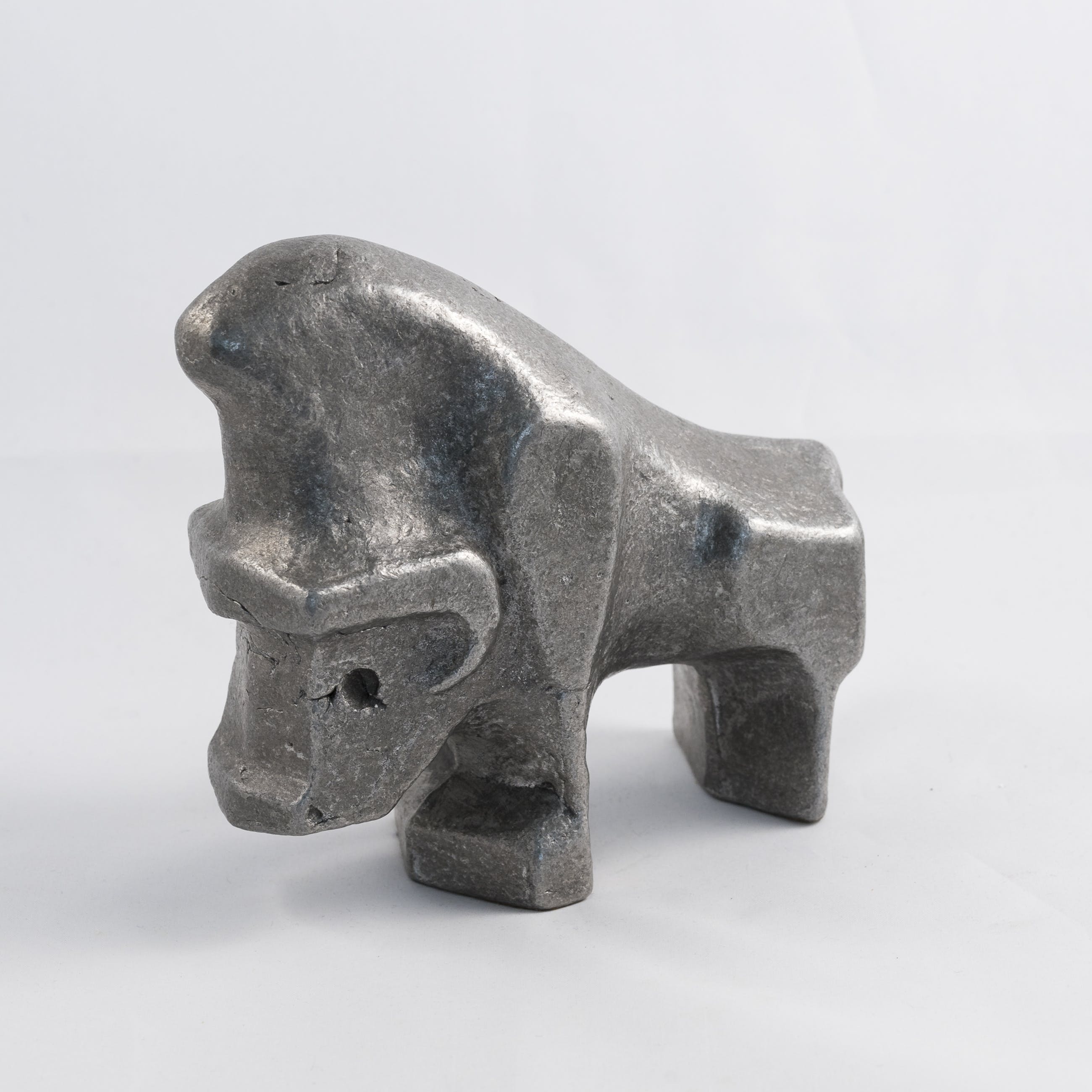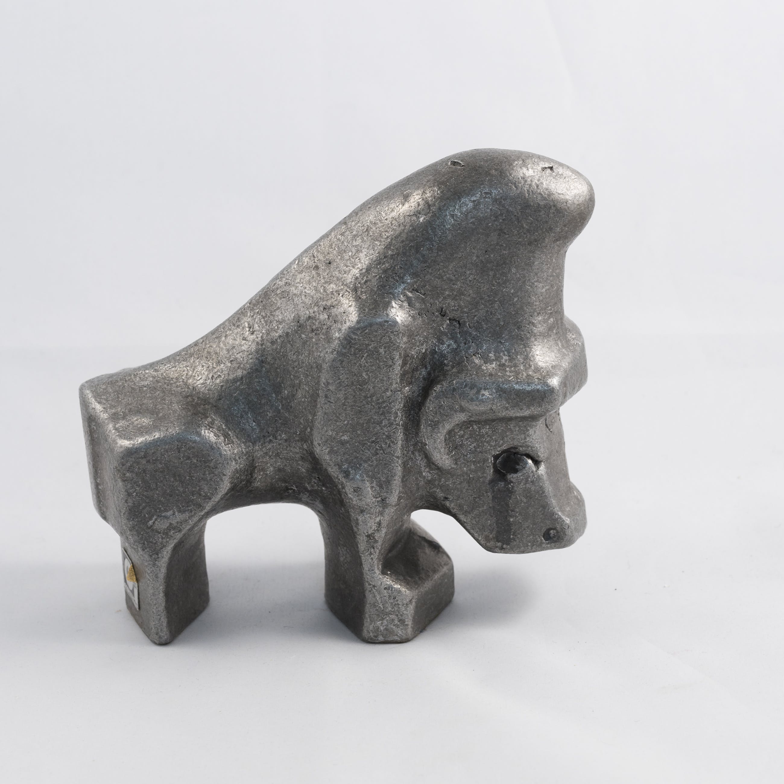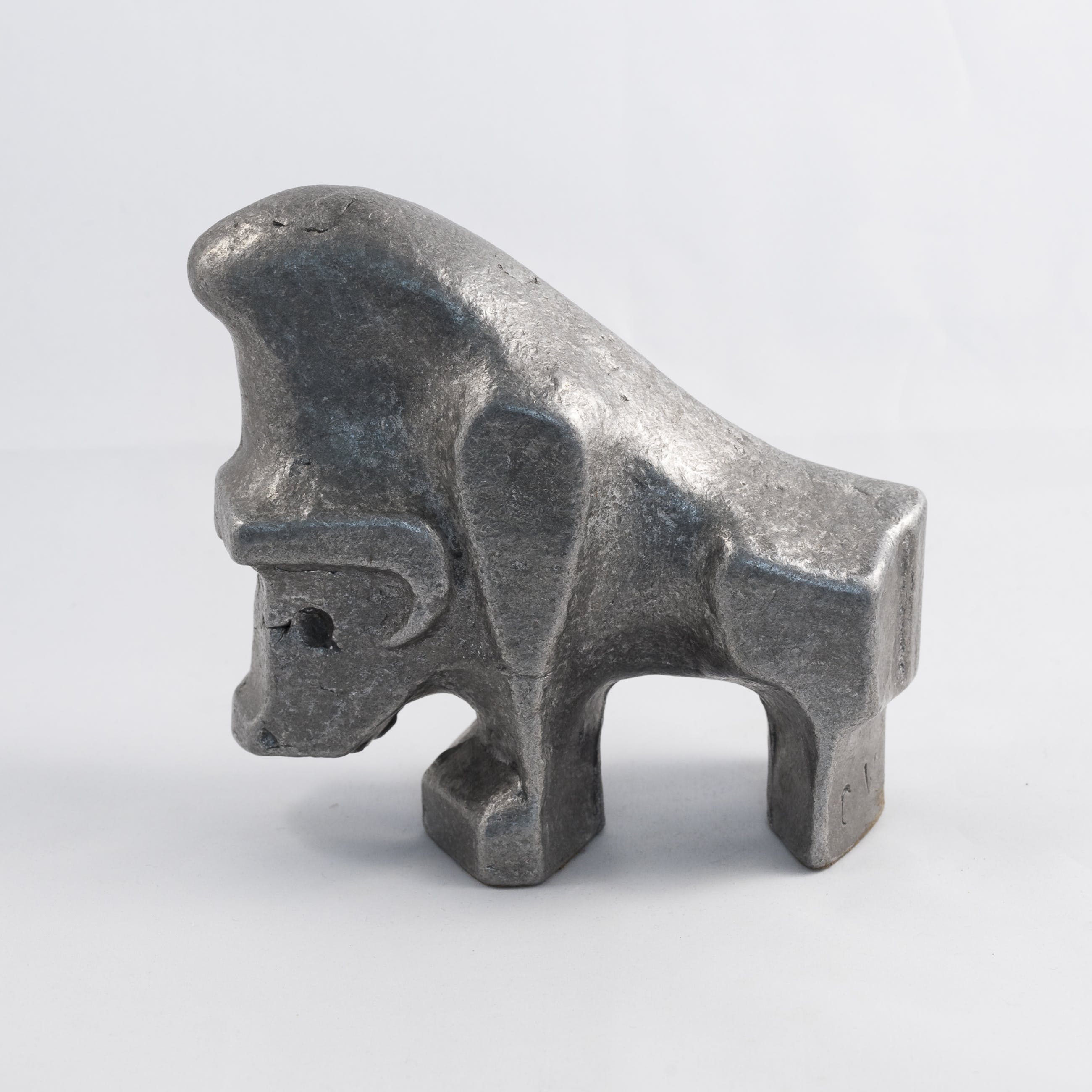 Een mooi beeld van een bizon uit de zestiger jaren gemaakt door de Belgische kunstenaar Willy Ceysens (CW). Hij is vooral bekend om zijn aluminium beelden (veelal dieren of mensfiguren) en kerkelijke kunst. Zijn kunstwerken zijn van gegoten aluminium die na het gieten niet glad zijn afgewerkt. Het is dus ruw en heeft vaak nog gietranden.