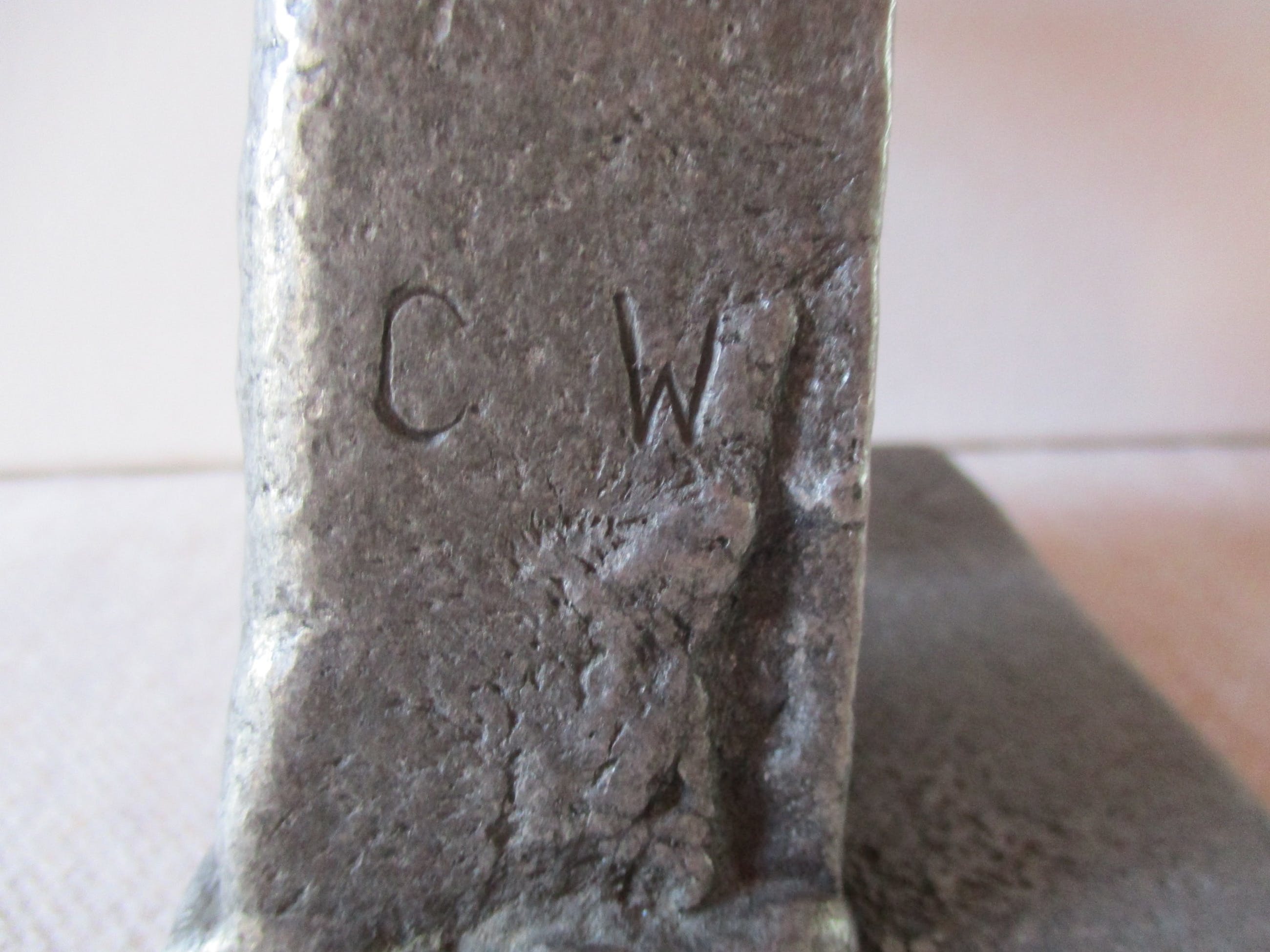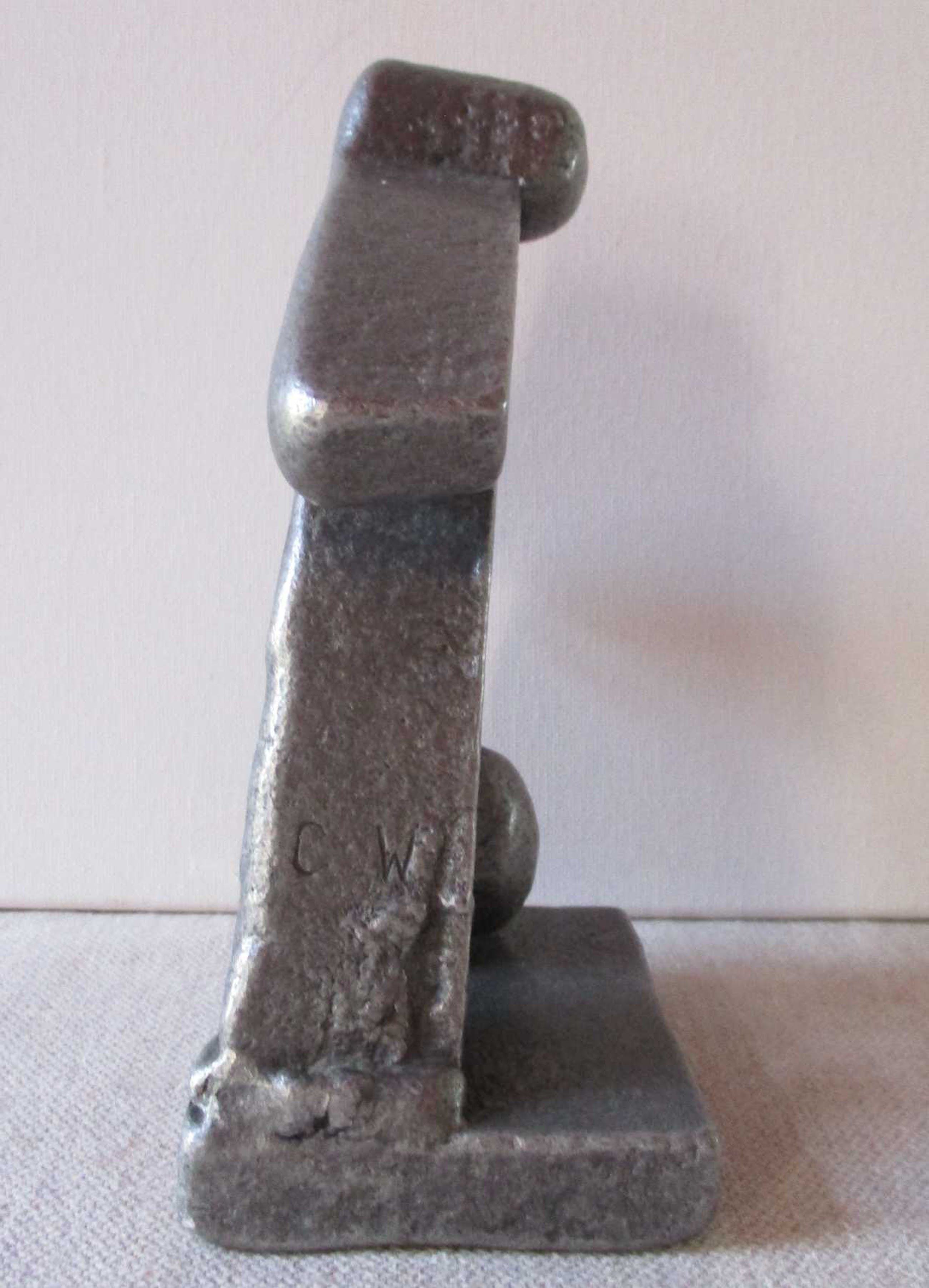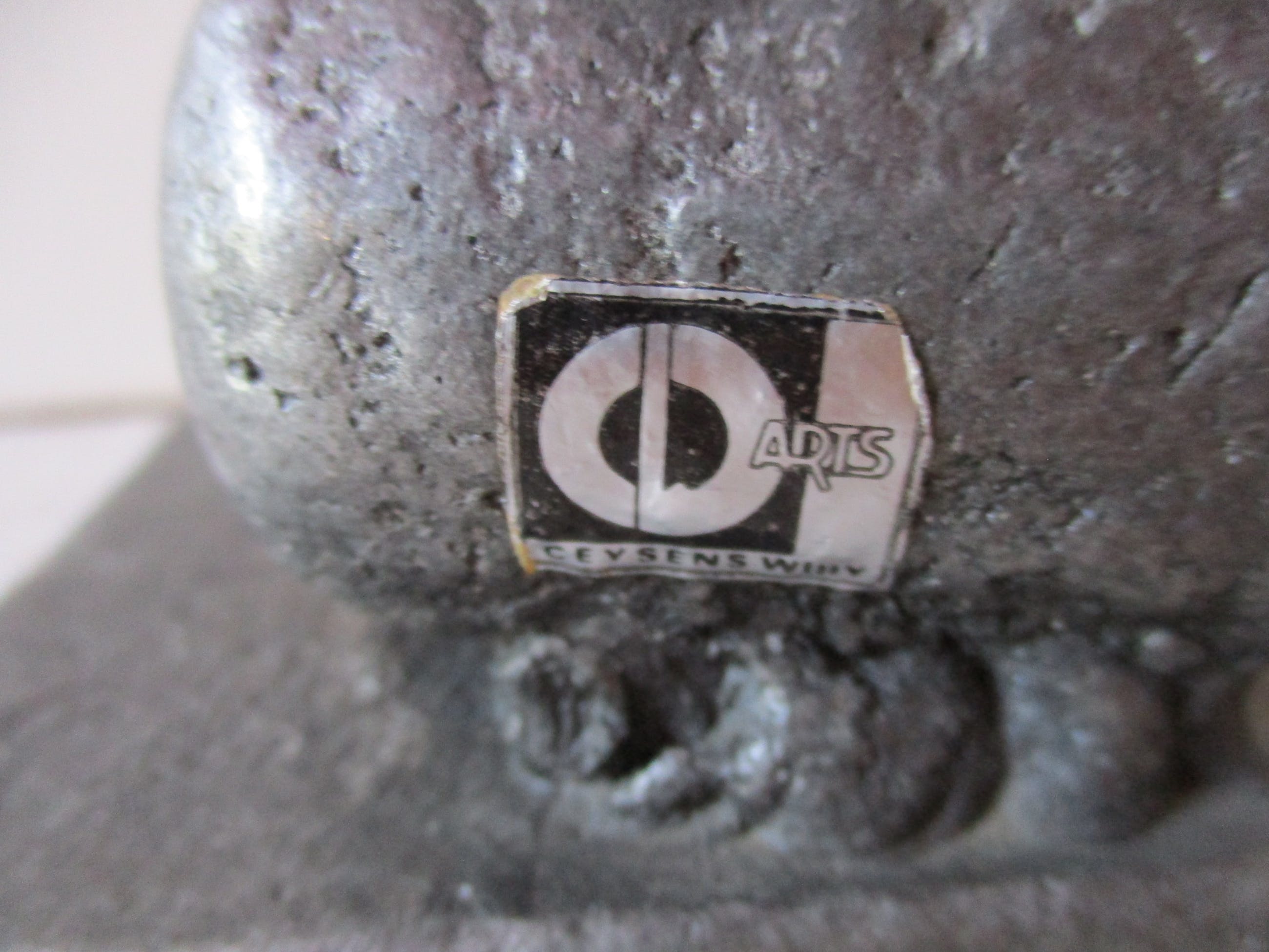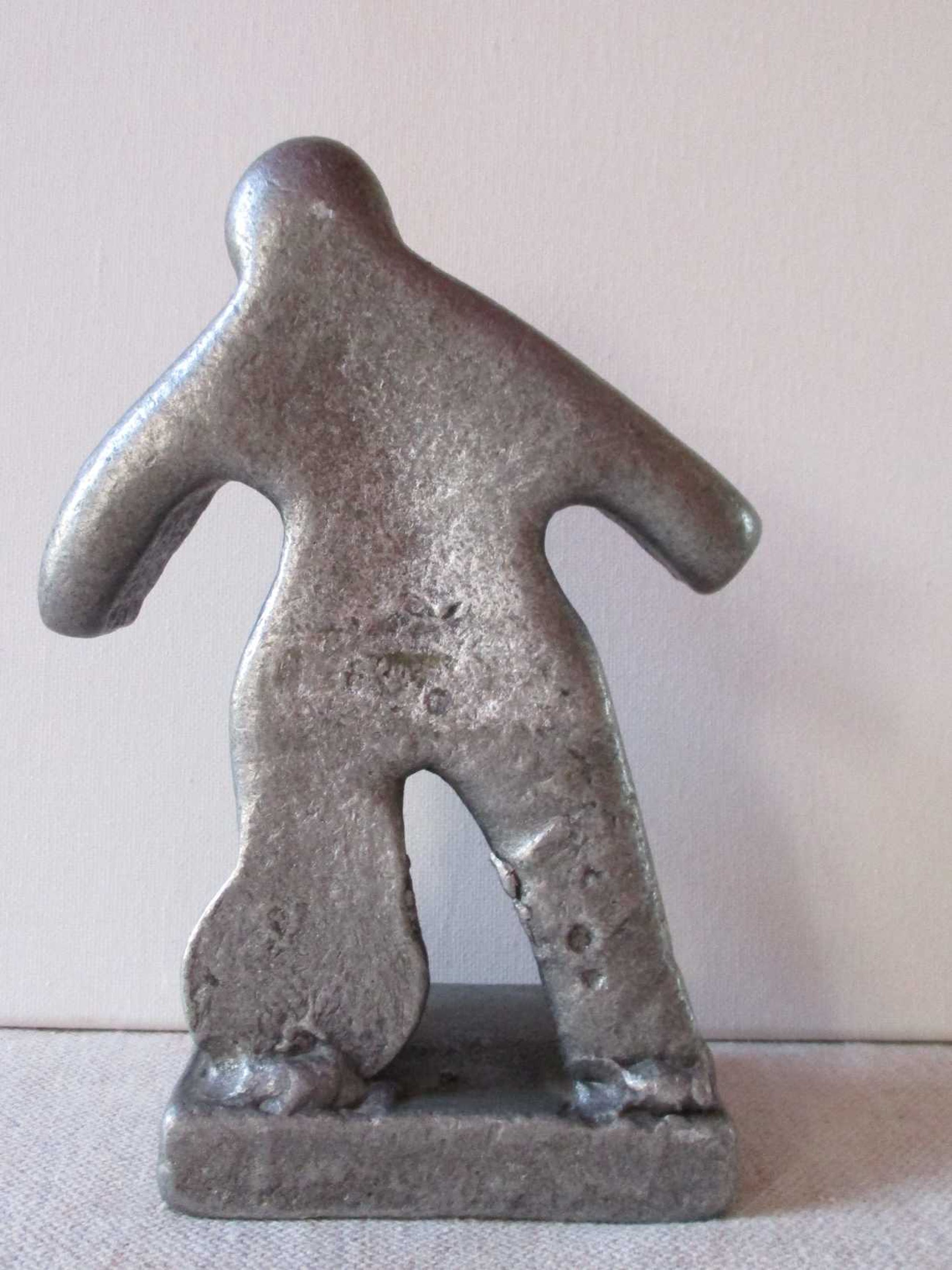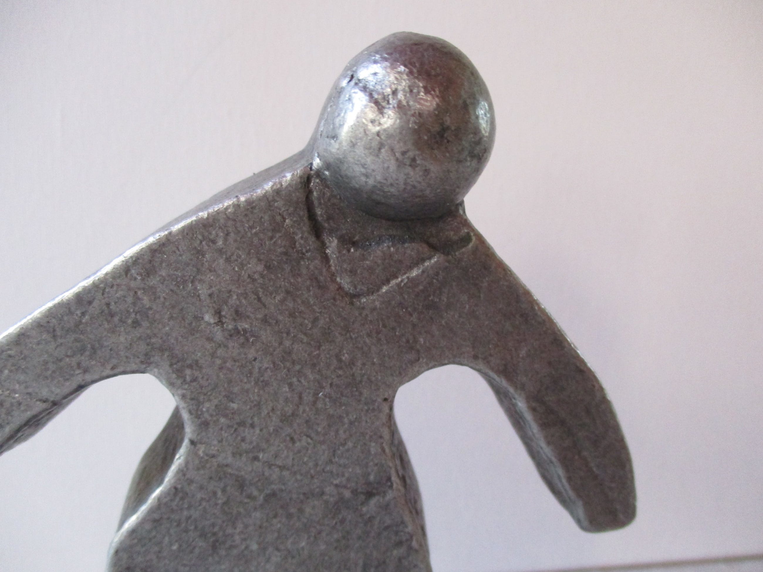 Stilistisch sculptuur van voetballer. Dit werk van Willy Ceysens is aan de zijkant gesigneerd: C W