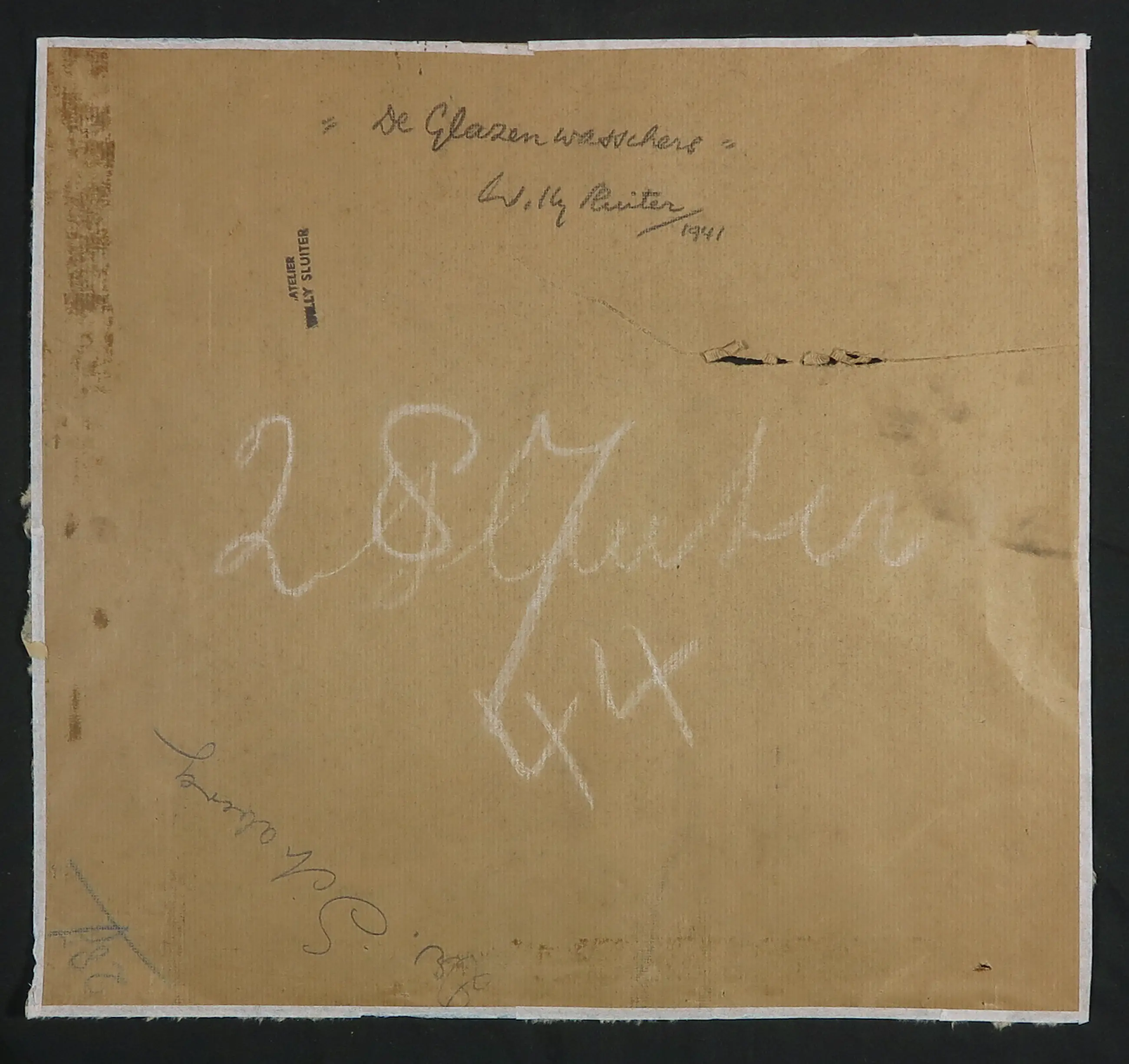Sober maar intrigerend werk van Willy Sluiter. Sluiter heeft bij dit werk gebruik gemaakt van aquarelverf en pastel, hij heeft dit gedaan op papier waarna het papier op board is bevestigd.