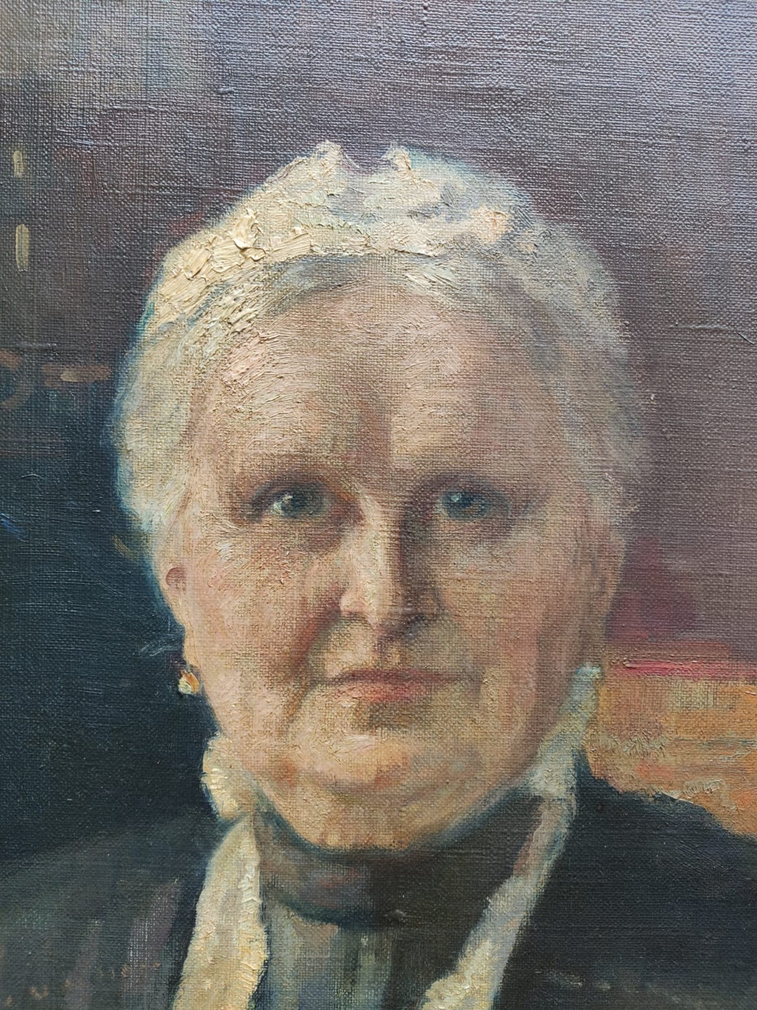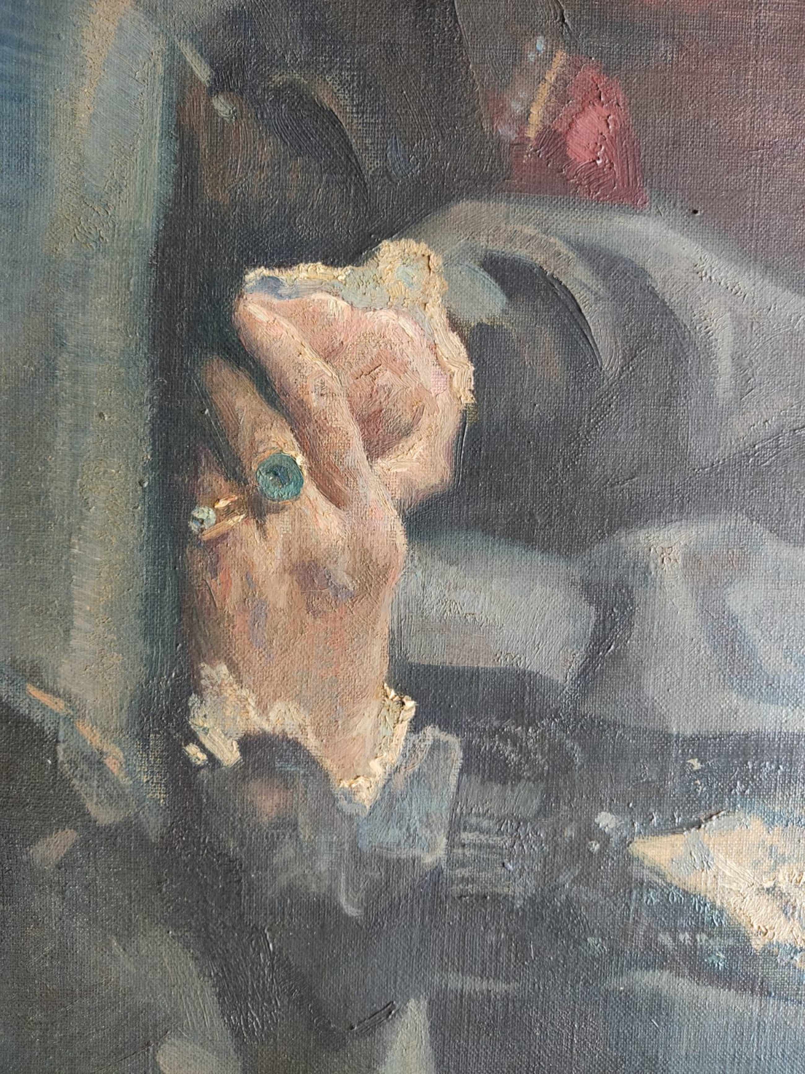 Groot olieverfschilderij van de beroemde Willy Sluiter. Het is waarschijnlijk een dame van hoge stand gezien haar zegelring.