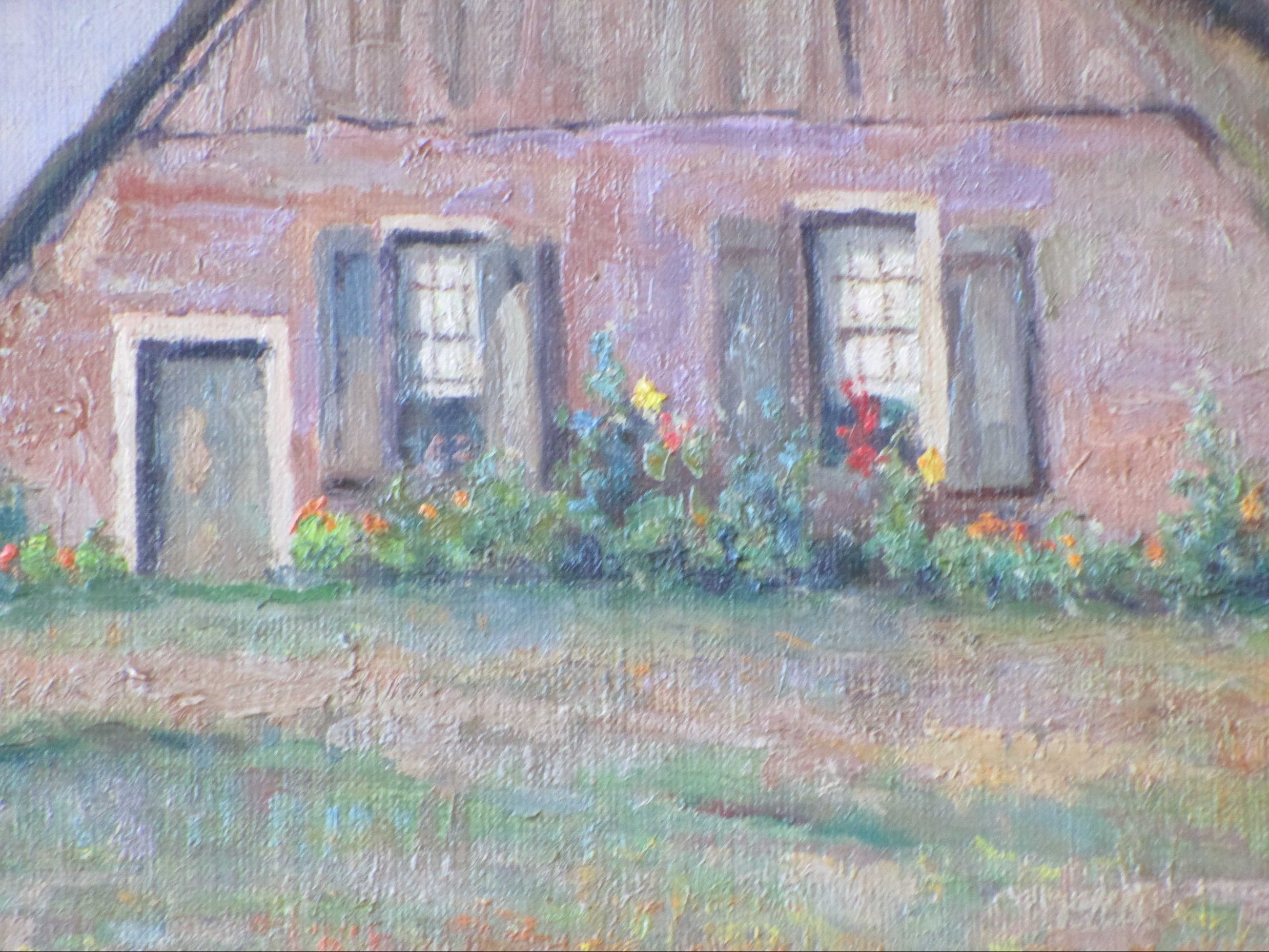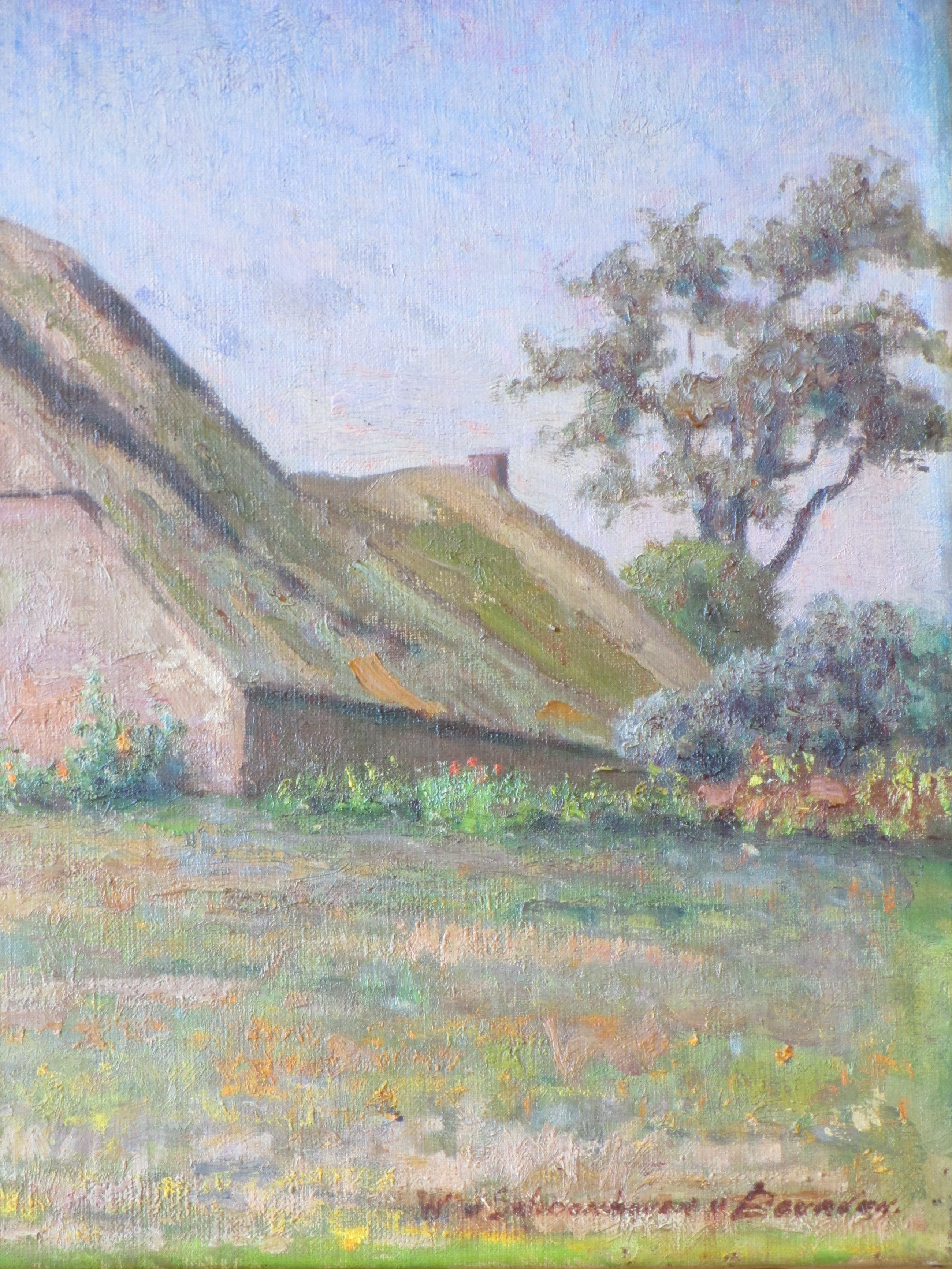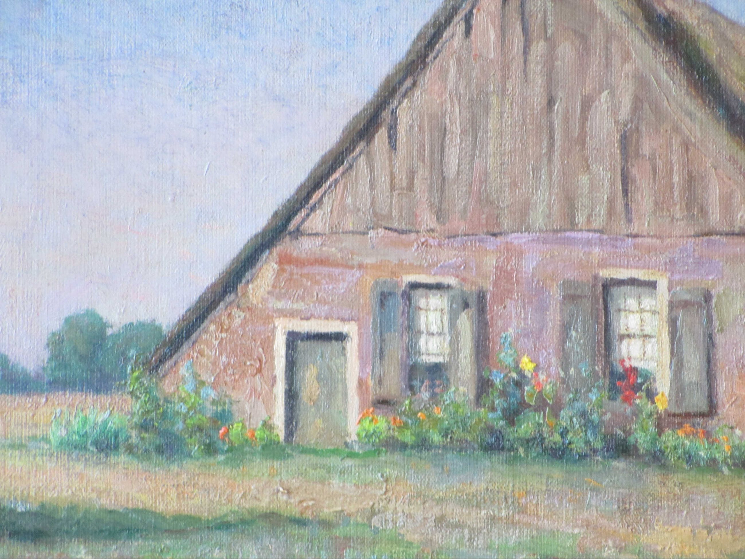 Olieverf op doek door Willy Schoonhoven van Beurden. Voorstelling van een boerderij in een zomers landschap. Niet gelijst, goed op spieraam, beeldmaat 40x52 Gesigneerd r.o.: 'W. van Schoonhoven van Beurden' Getiteld op spieraam achterzijde: 'Boerderij te Havelte' Authenticiteit volledig gegarandeerd.