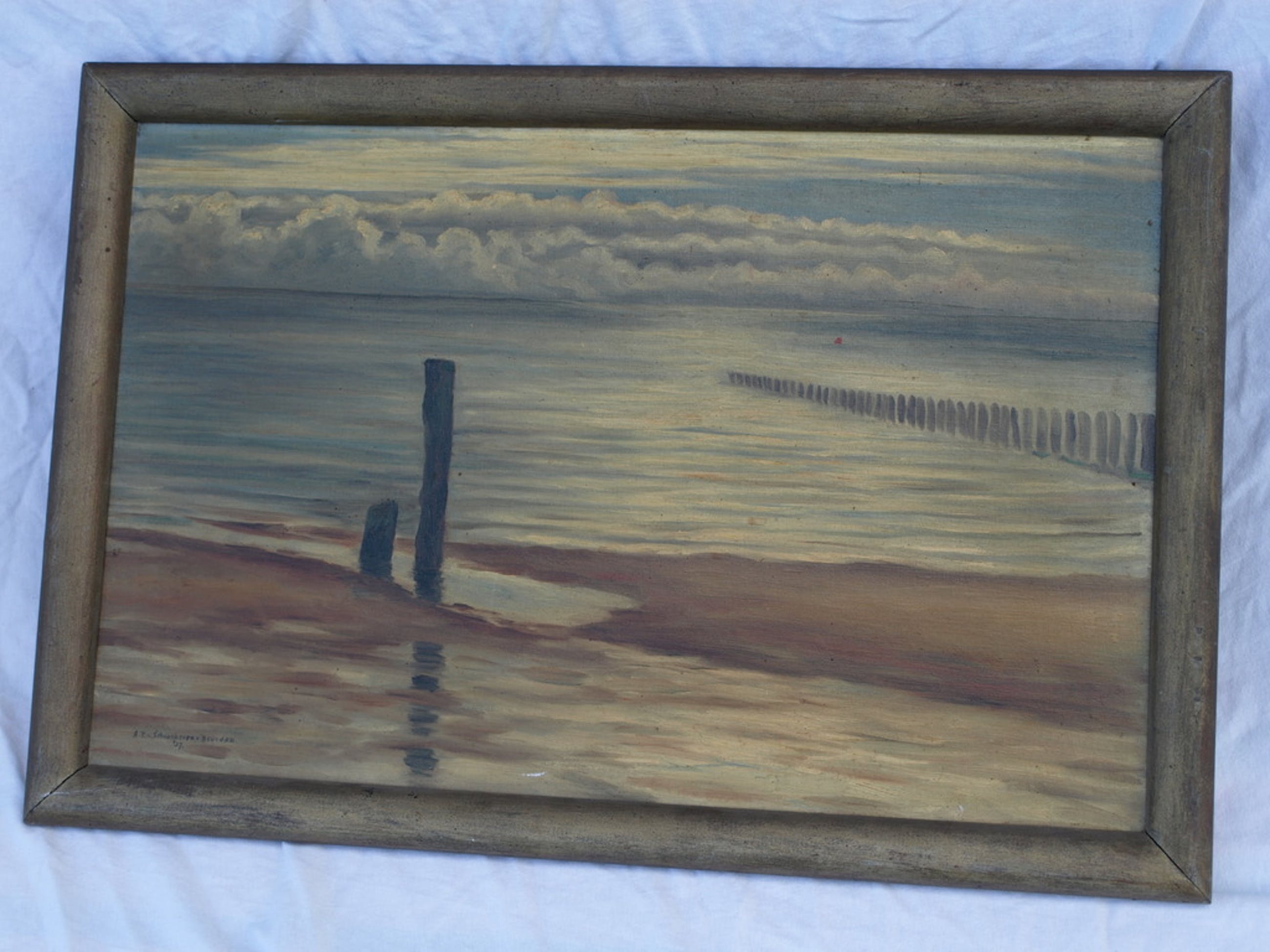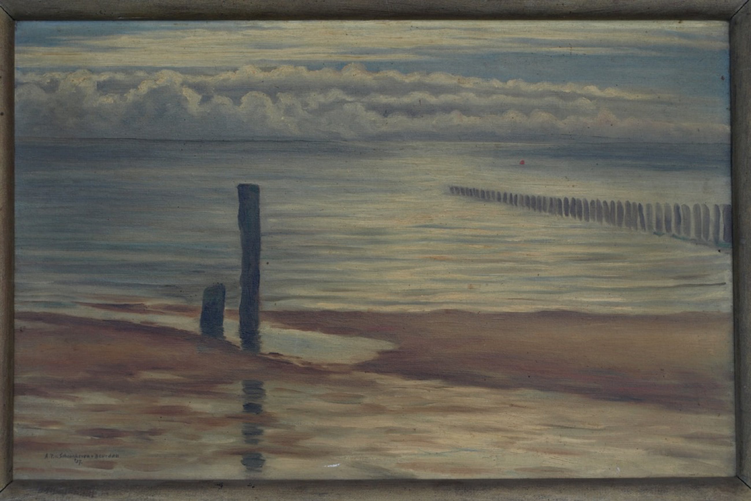 Een schilderij uit 1937 van de Nederlandse kunstenaar Willy van Schoonhoven van Beurden met een voorstelling van het strand bij Zoutelande, een dorp in de Zeeuwse gemeente Veere op het voormalige eiland Walcheren.