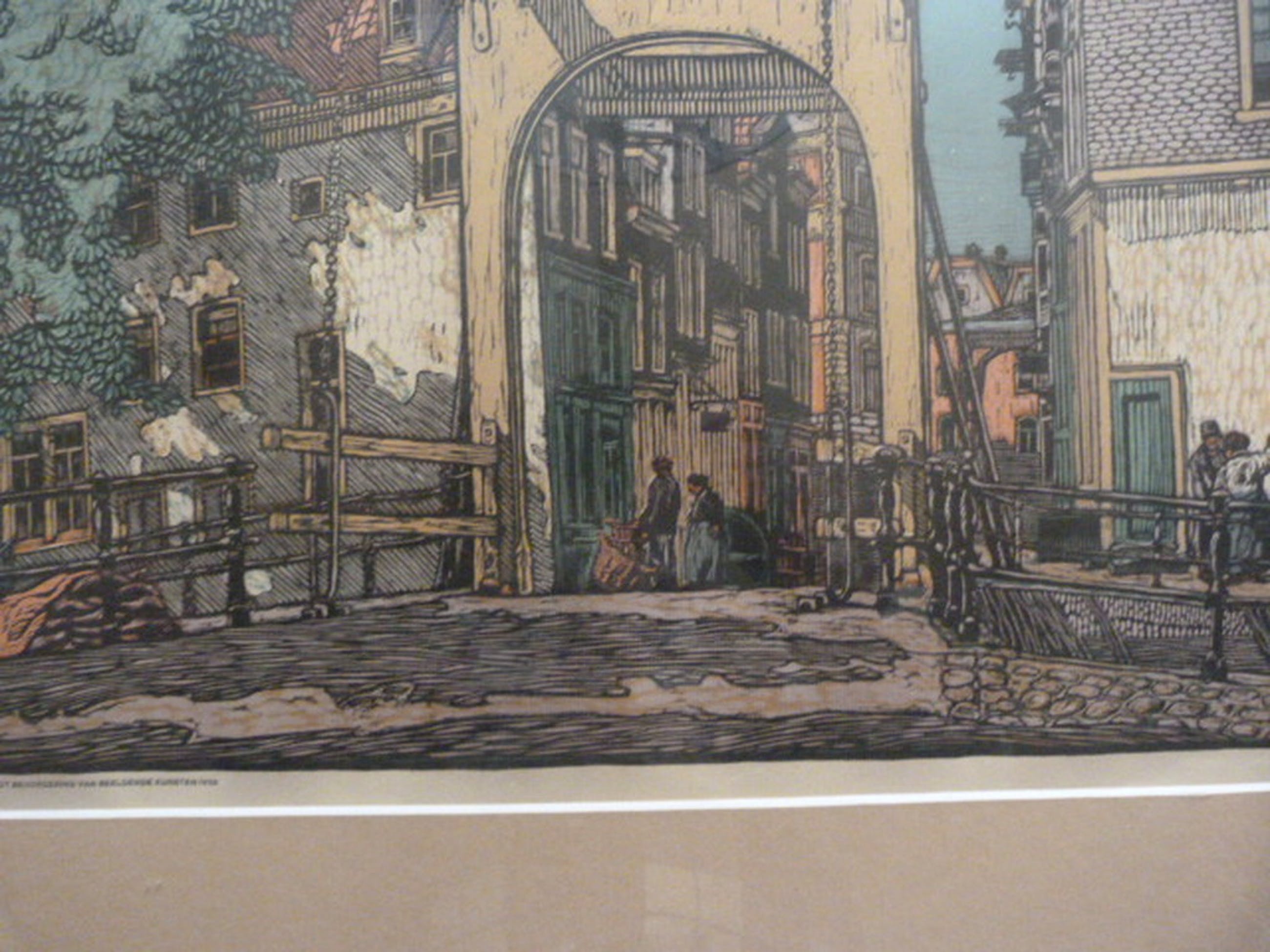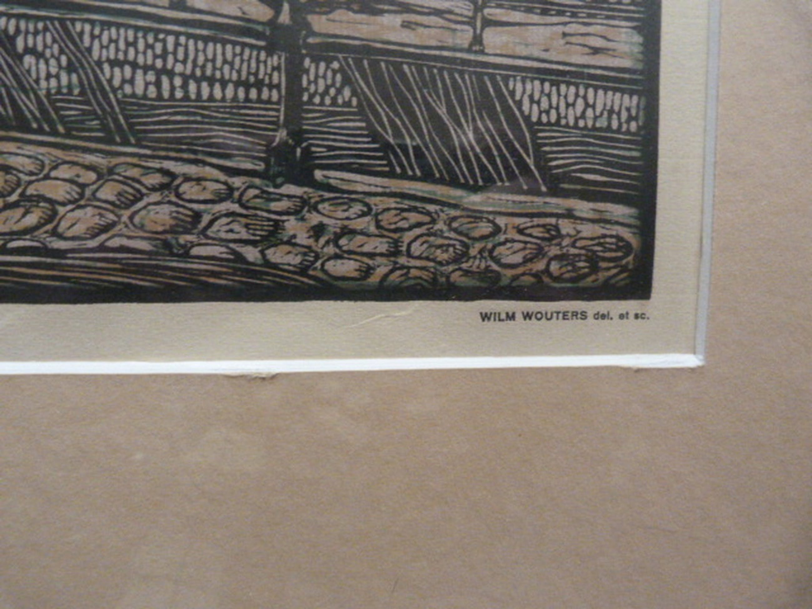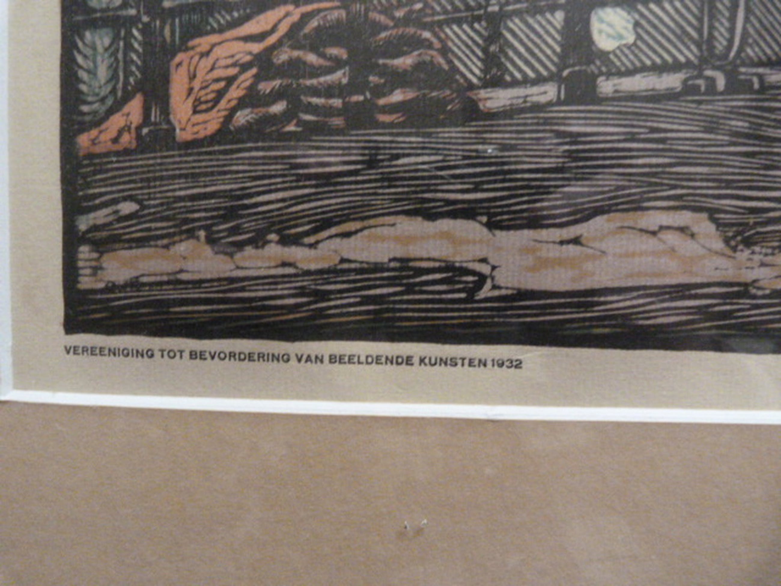 Linosnede, passe-partout en lijst zijn in goede staat.