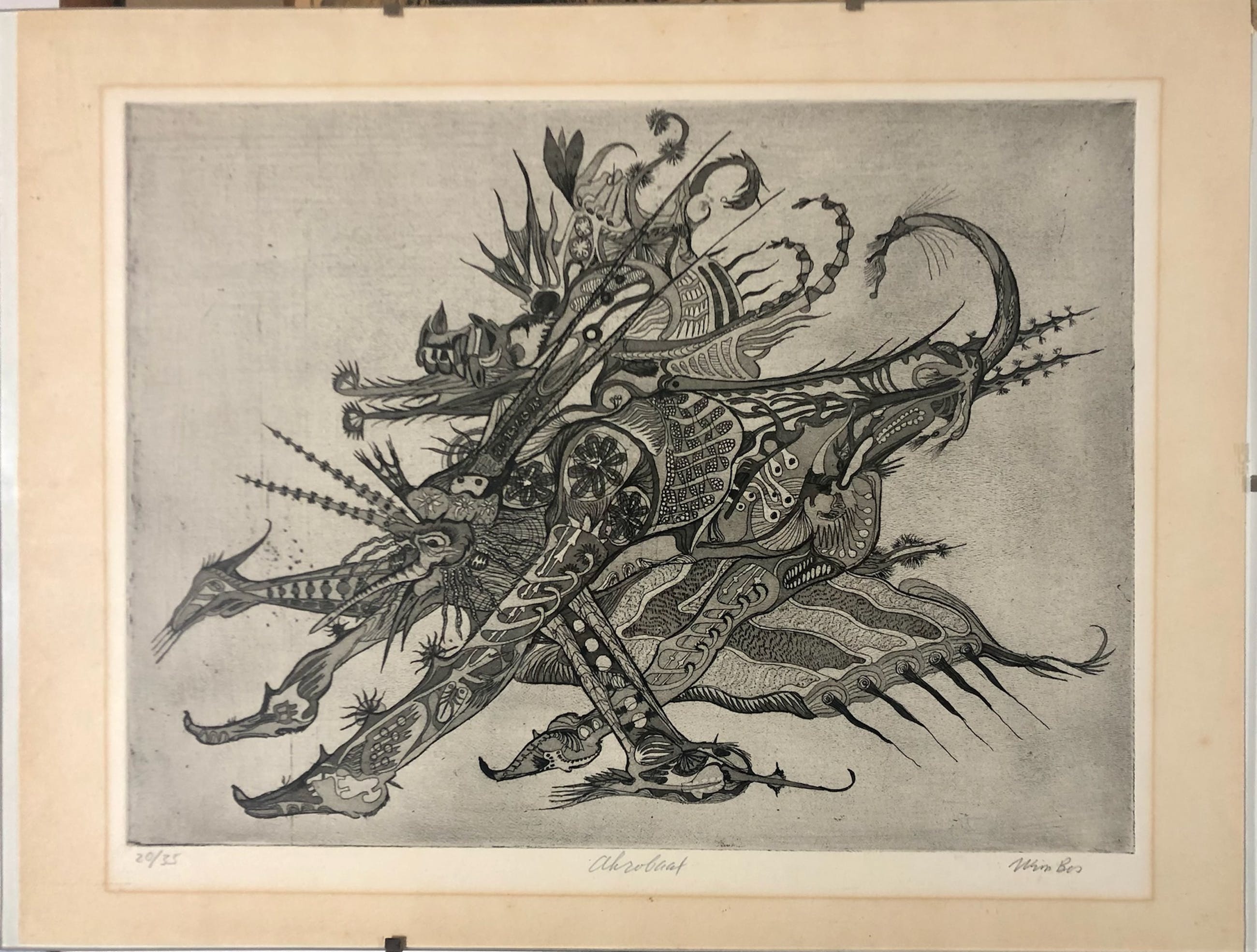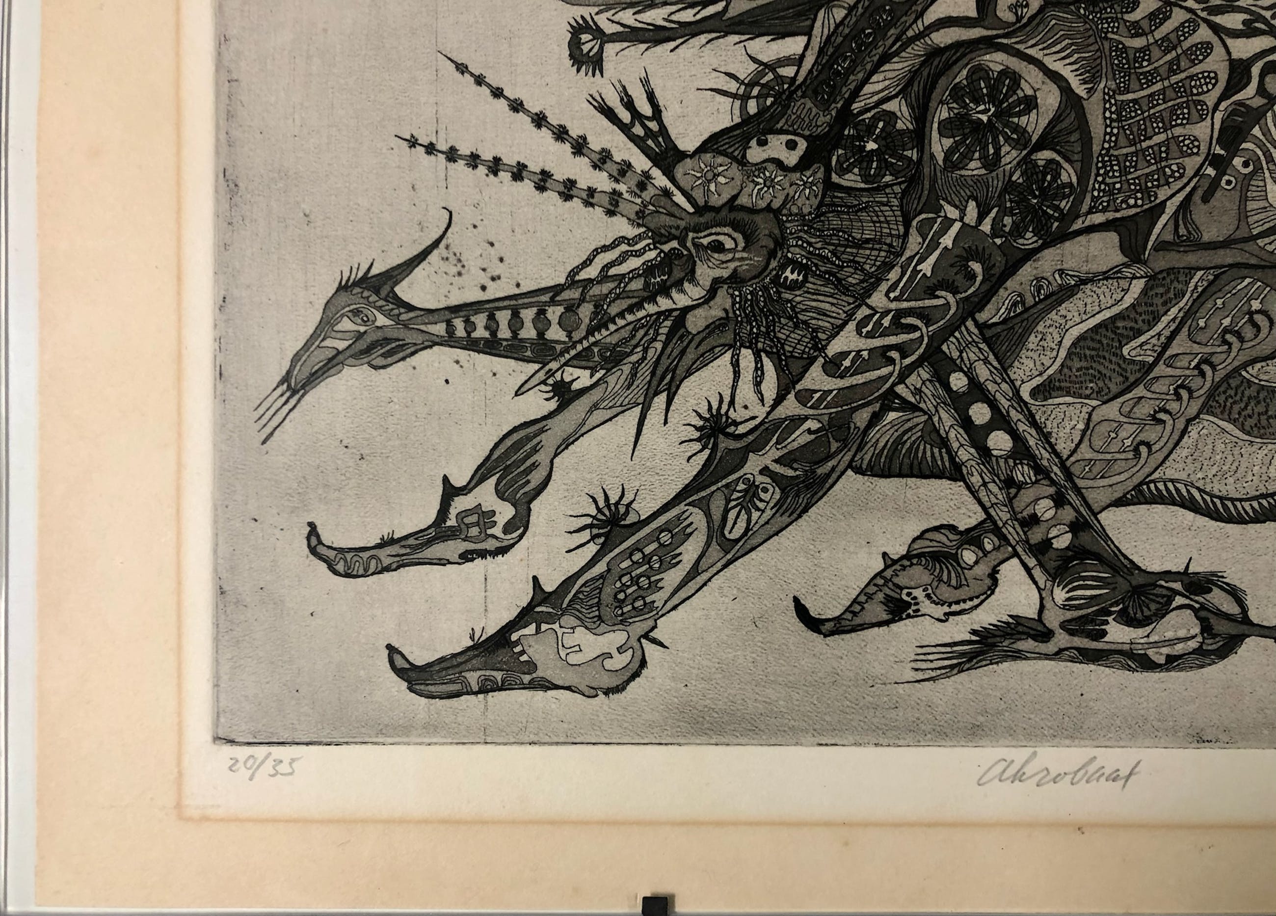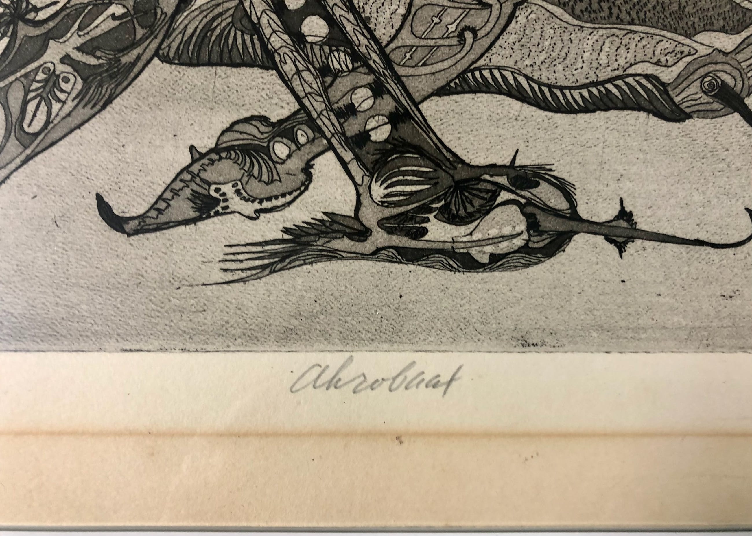 Leuke ets ‘Akrobaat’ van de Hilversumse kunstenaar Wim Bos.