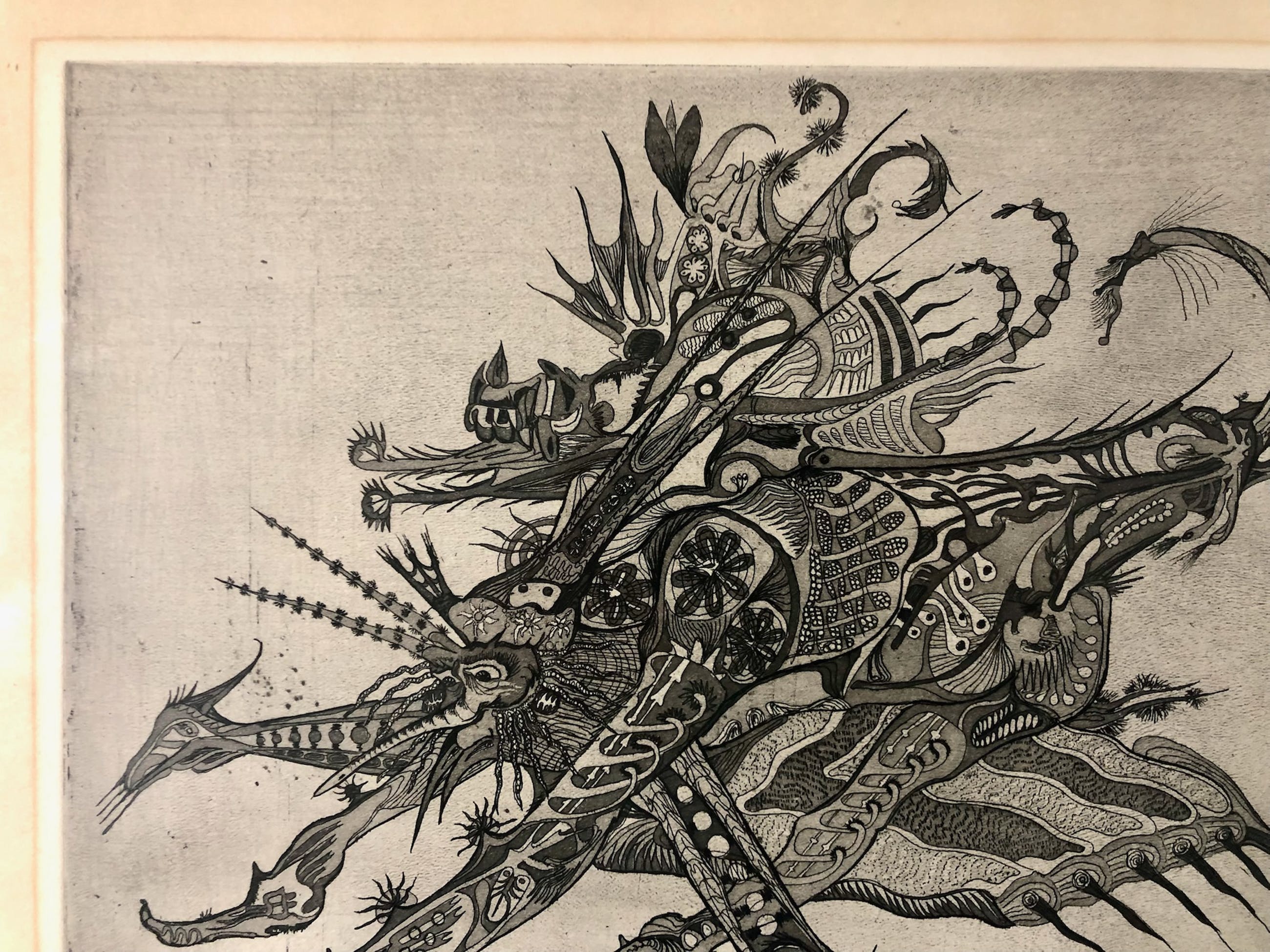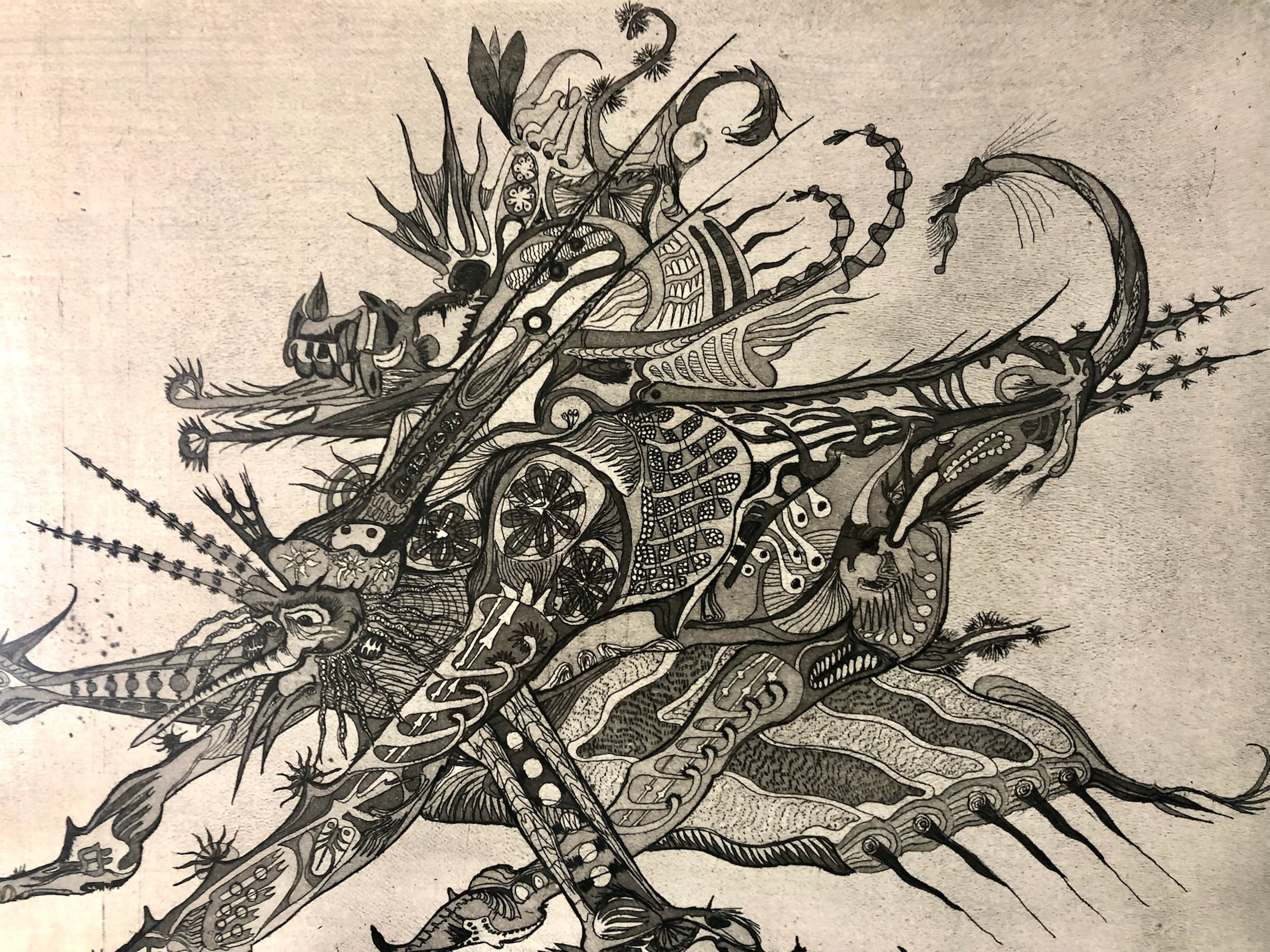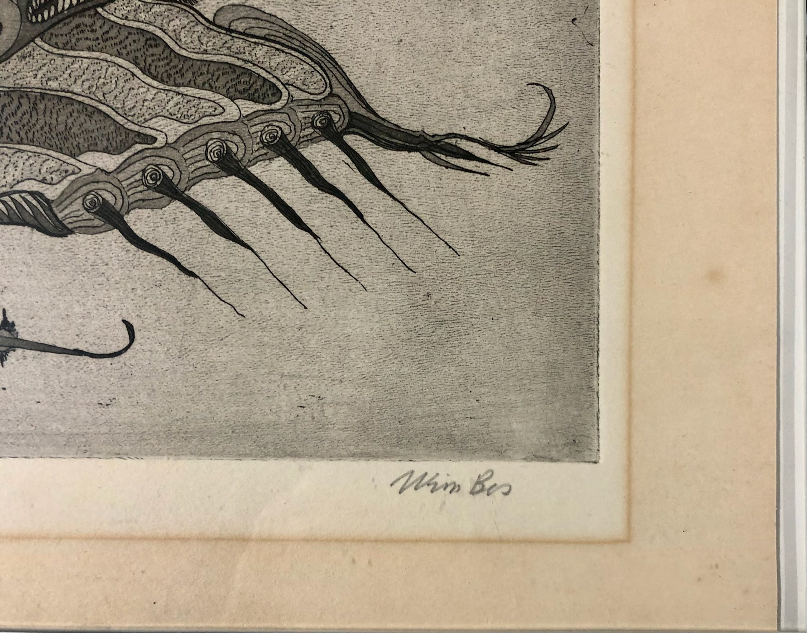 Leuke ets ‘Akrobaat’ van de Hilversumse kunstenaar Wim Bos.