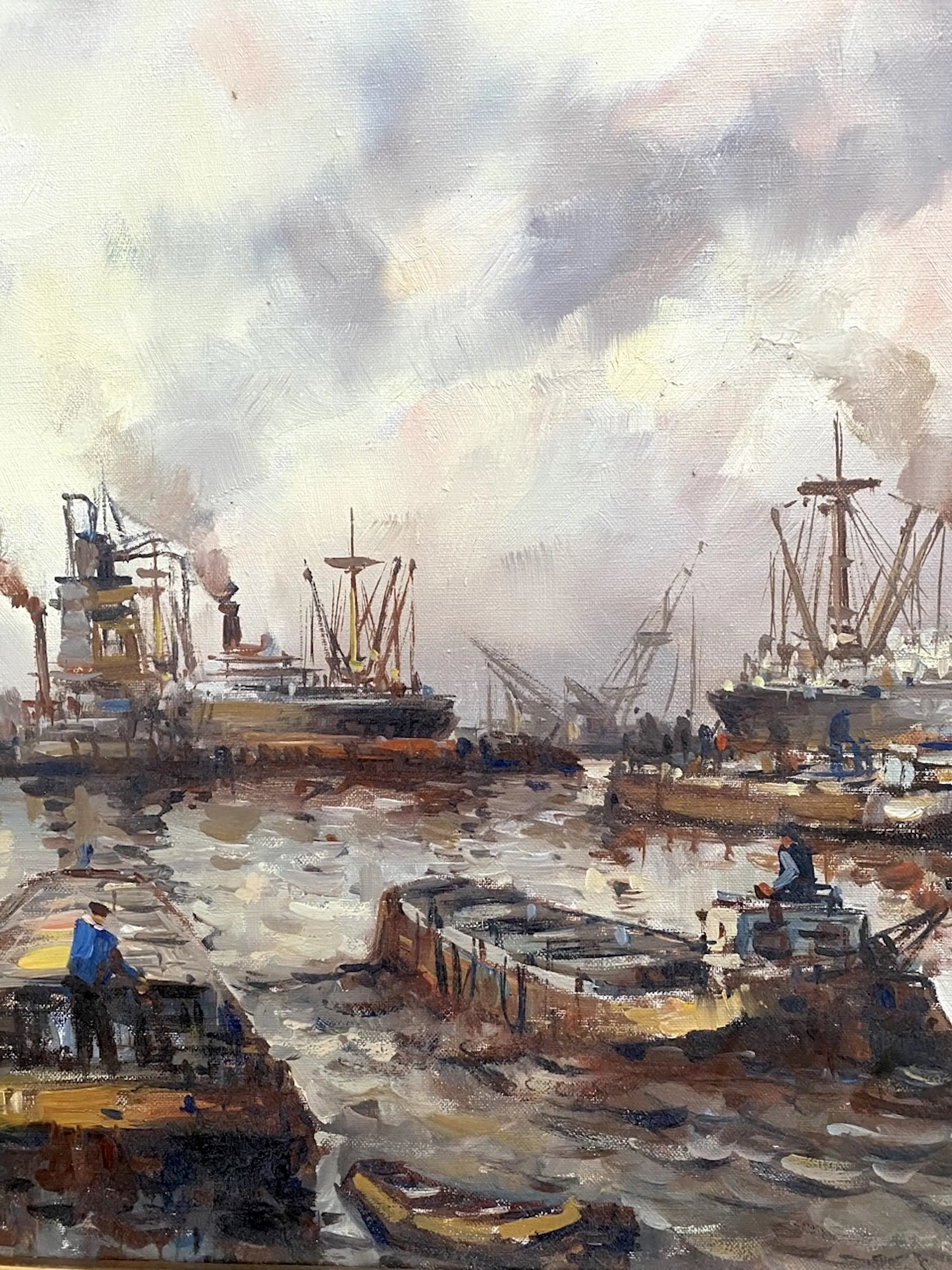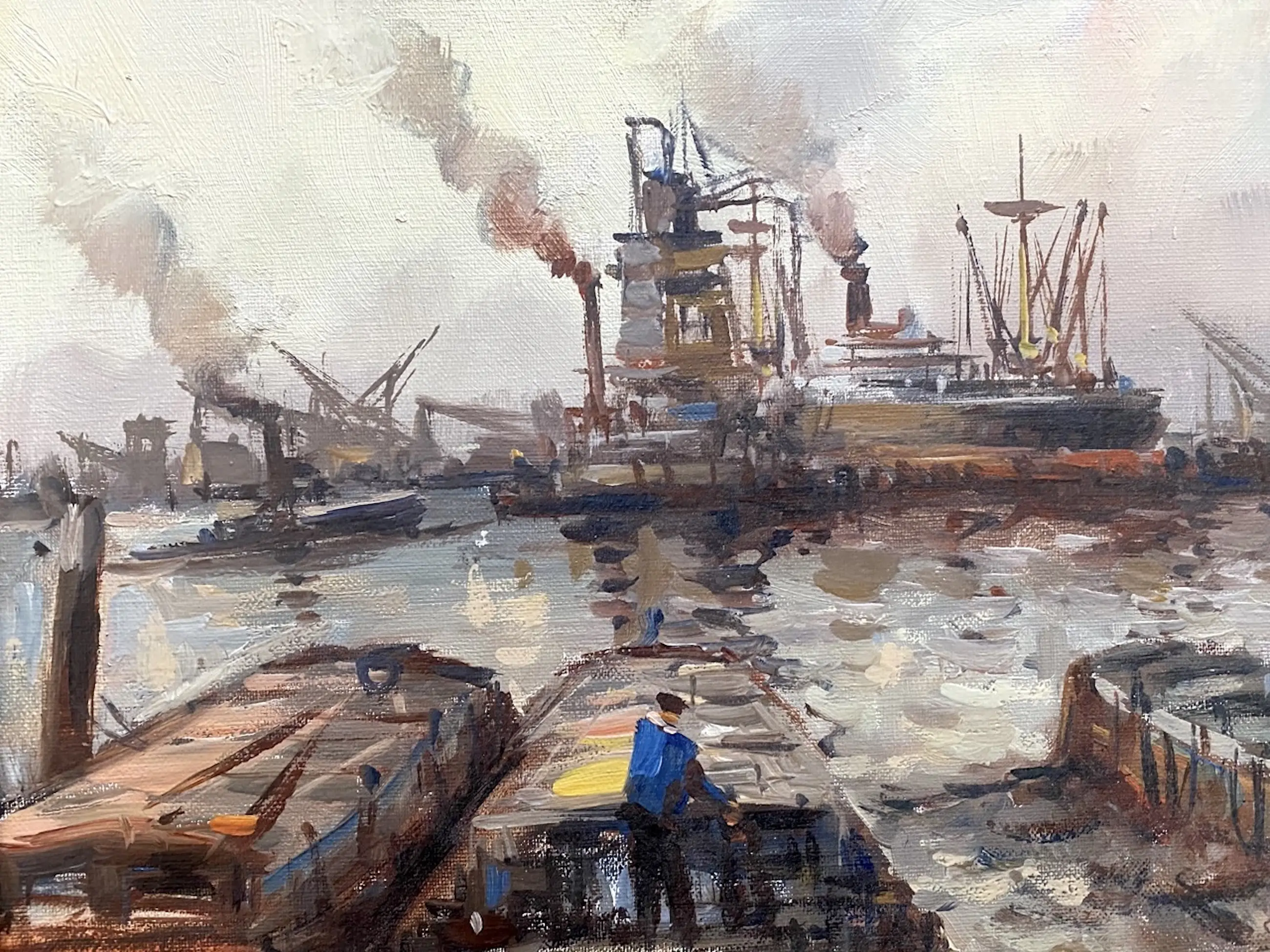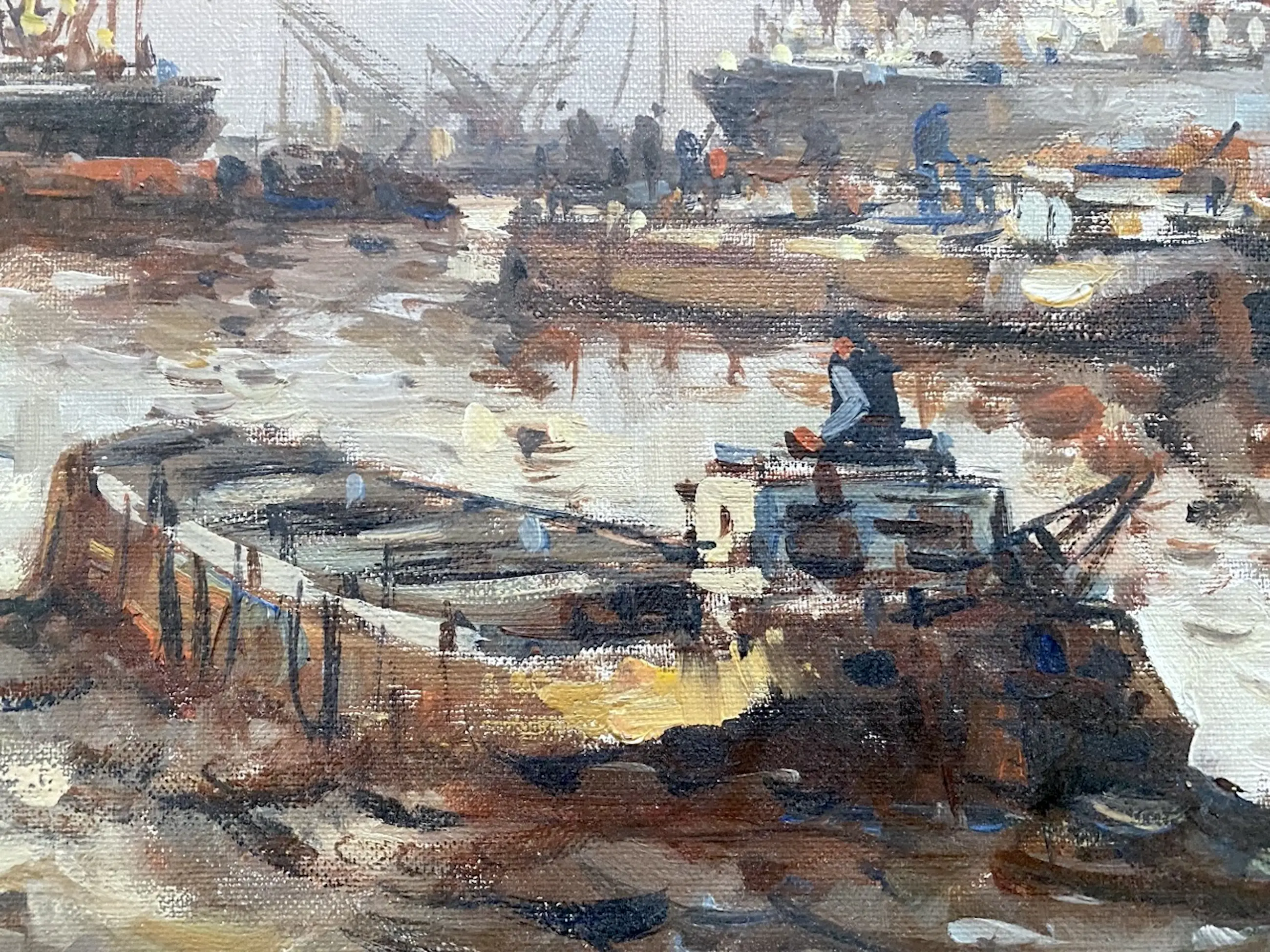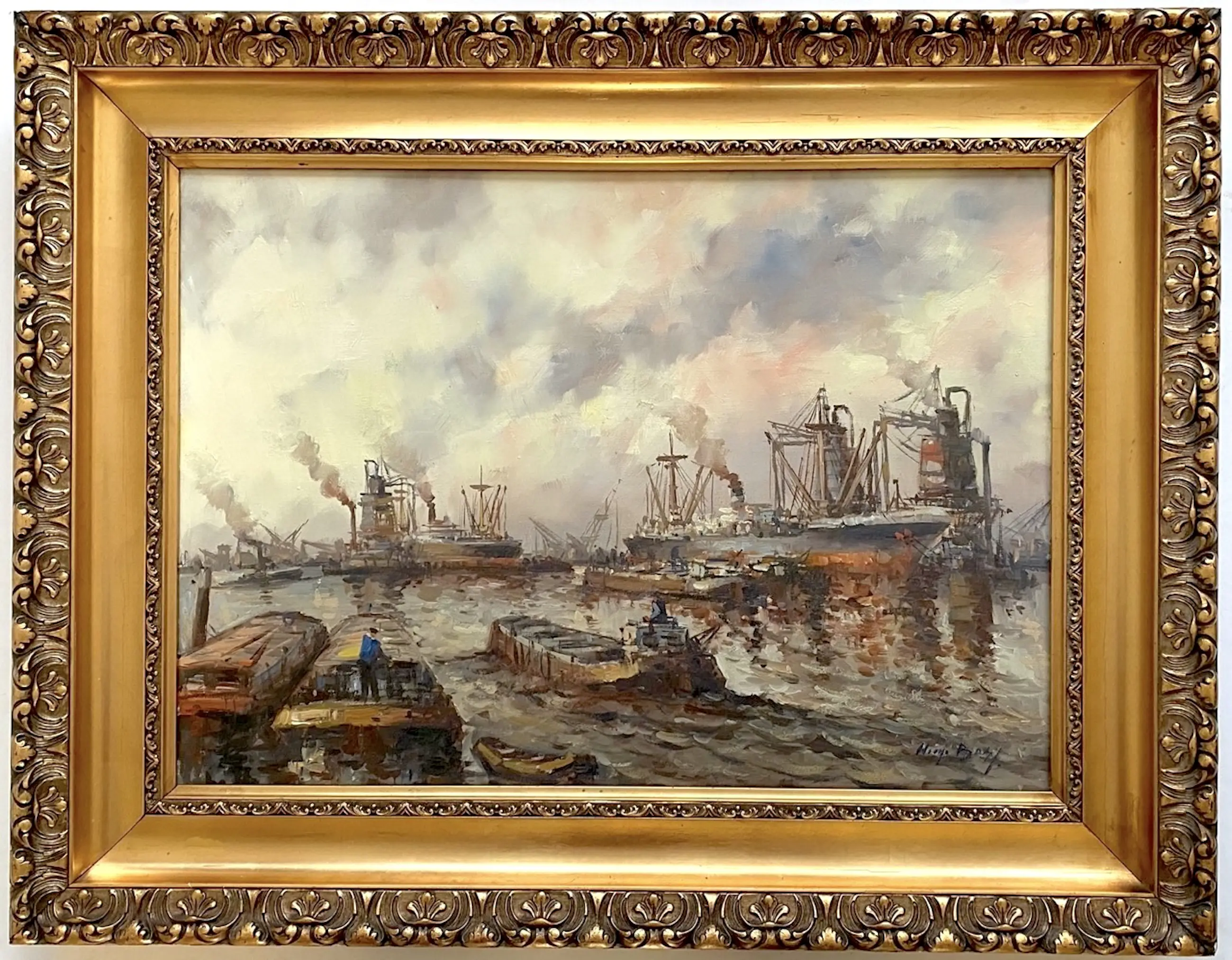 Wim Bos ontwikkelde hierbij een eigen impressionistische stijl, die dicht tegen die van Marinus de Jongere aanlag. Hij schilderde, tekende en aquarelleerde naast havengezichten ook plasgezichten. Zijn havengezichten ademen die typische sfeer van de vooroorlogse haven, met kolenstook, gillende stoomfluiten, rammelende ankerkettingen in het kluisgat, en piepende en krakende kranen en laadbomen. Nog steeds leeft de haven heftig in het Rotterdamse stadshart. Schepen kijken aan de kade is een Rotterdams tijdverdrijf en iedere Rotterdammer krijgt kippenvel wanneer op oudejaarsavond de scheepshoorns klinken. Deze emotie bracht Wim Bos over op zijn olieverfschilderijen. Des te opvallender was het dan ook dat Wim Bos zelden zijn doeken in de haven maakte, terwijl deze toch zo nabij was. Hij werkte doorgaans aan de hand van ansichtkaarten en van reproducties, waaronder foto’s van zijn eigen schilderijen. Na zijn dood werden deze modellen aangetroffen rond om Wim Bos zijn schildersezel, geconserveerd door regenbuien van olieverf en terpentijn, die de schilder tijdens het werk in de loop der jaren had geproduceerd. Als je er lang naar keek dan ging je de haven ruiken.