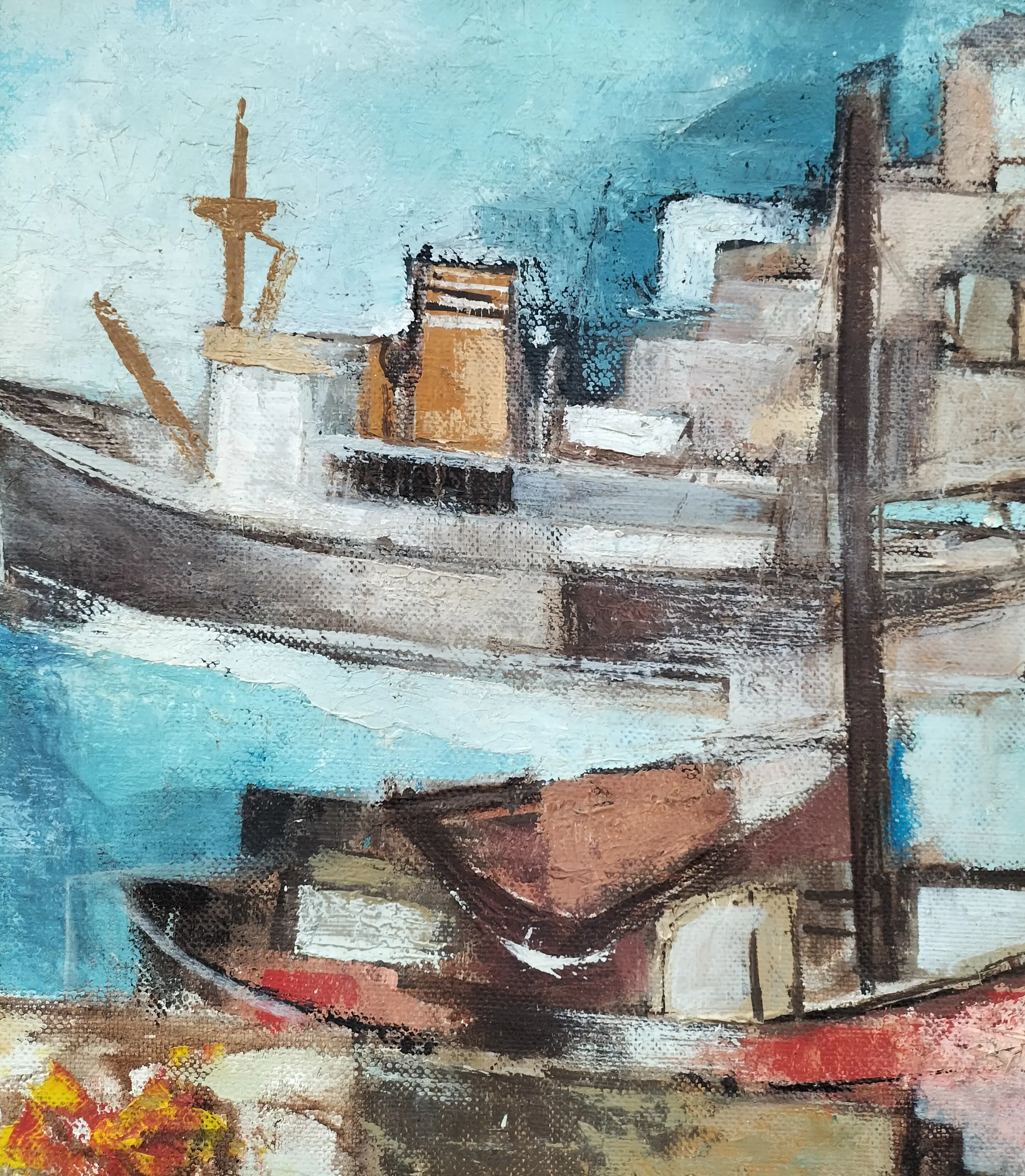 Sprekend werk, nieuwe zakelijkheid. Mooi en passende lijst uit de tijd. Verso gesigneerd ,alle prive info van de kunstenaars en getiteld.
