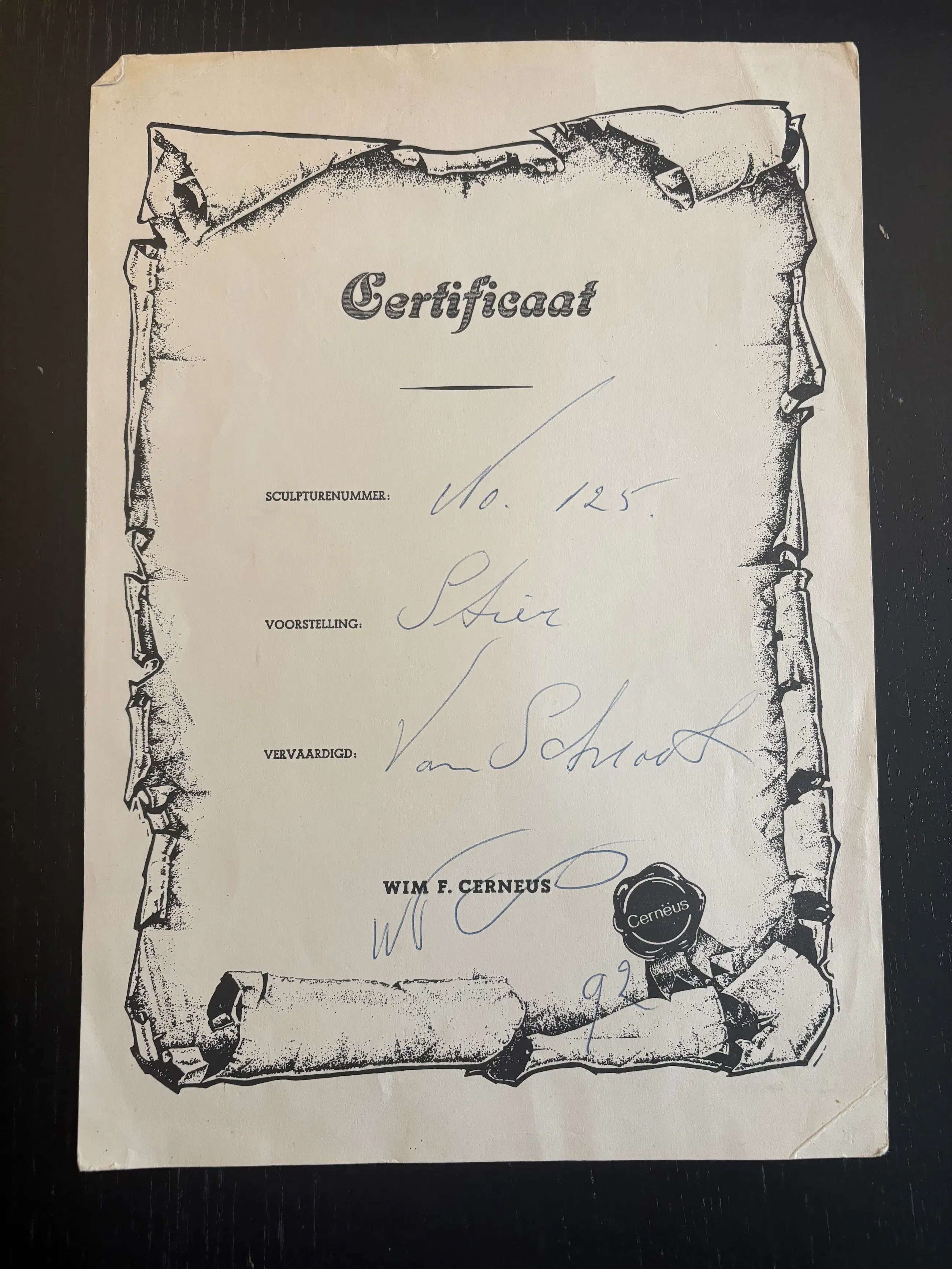 Het beeld verkeert in goede staat en wordt geleverd met certificaat van echtheid.