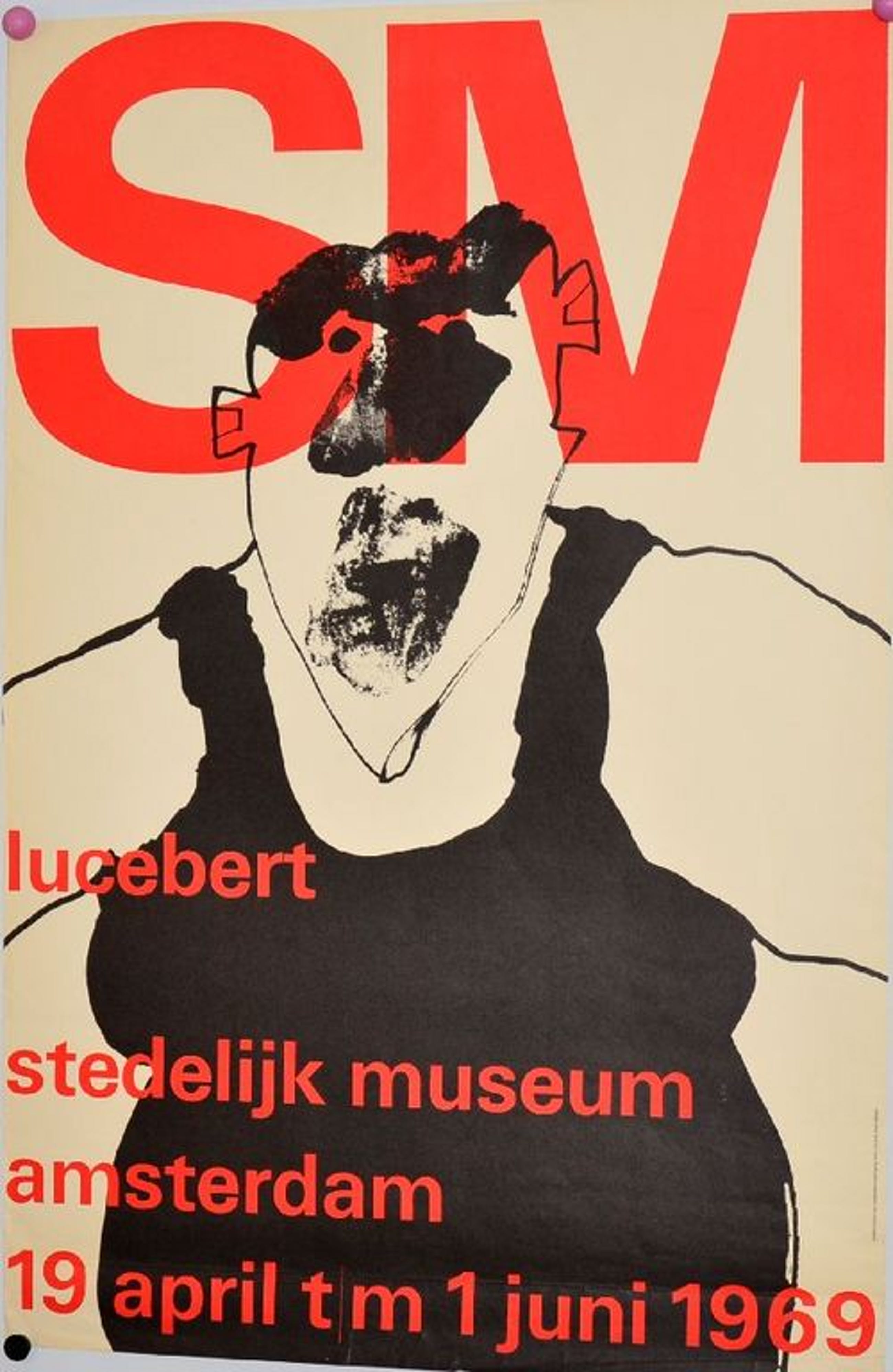 Groot lithografisch affiche door Wim Crouwel, voor Stedelijk Museum
