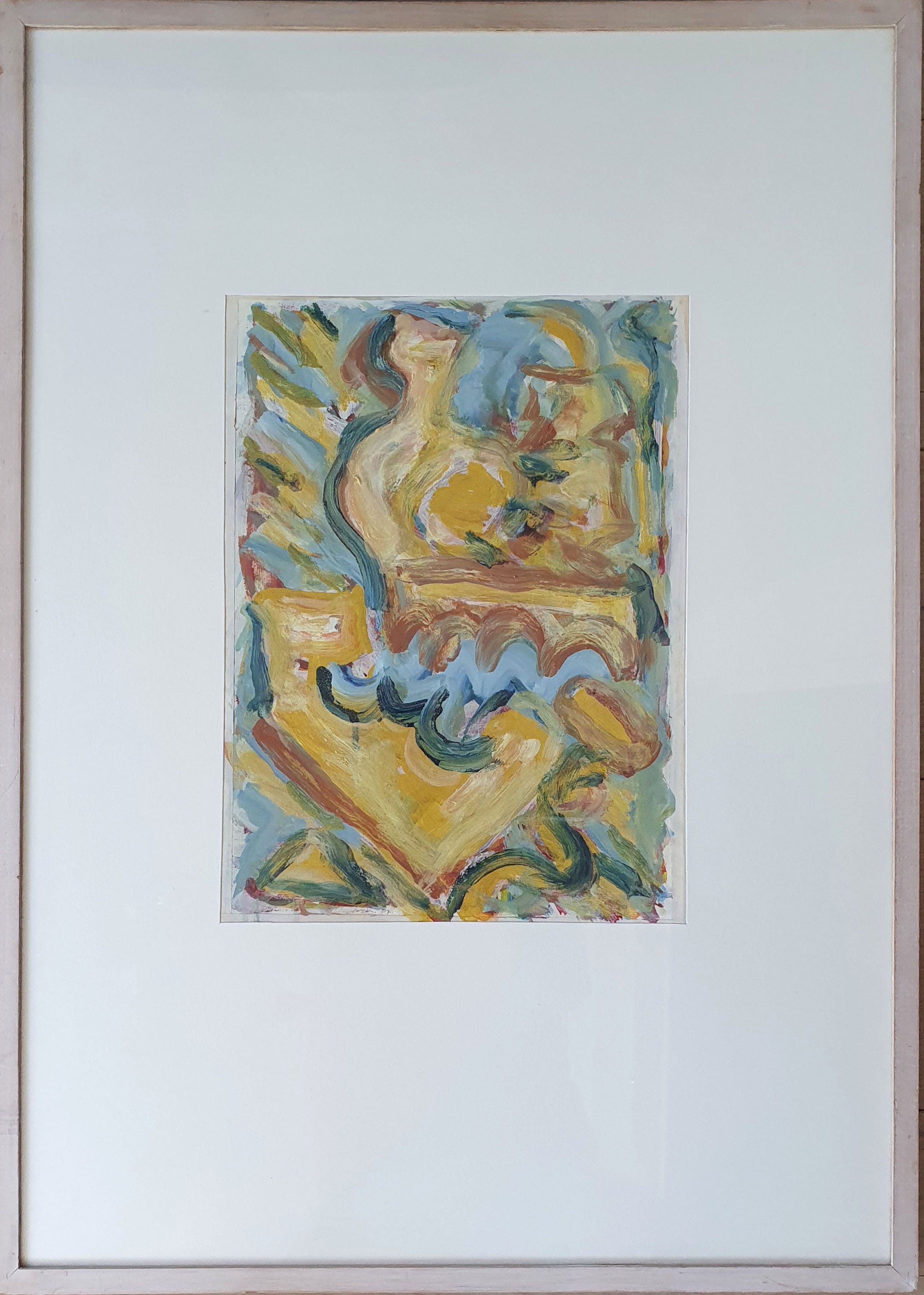 Mooi werk van Wim Drion. Acryl op papier in een fraaie houten lijst. Het werk is midden onder door de kunstenaar gesigneerd.