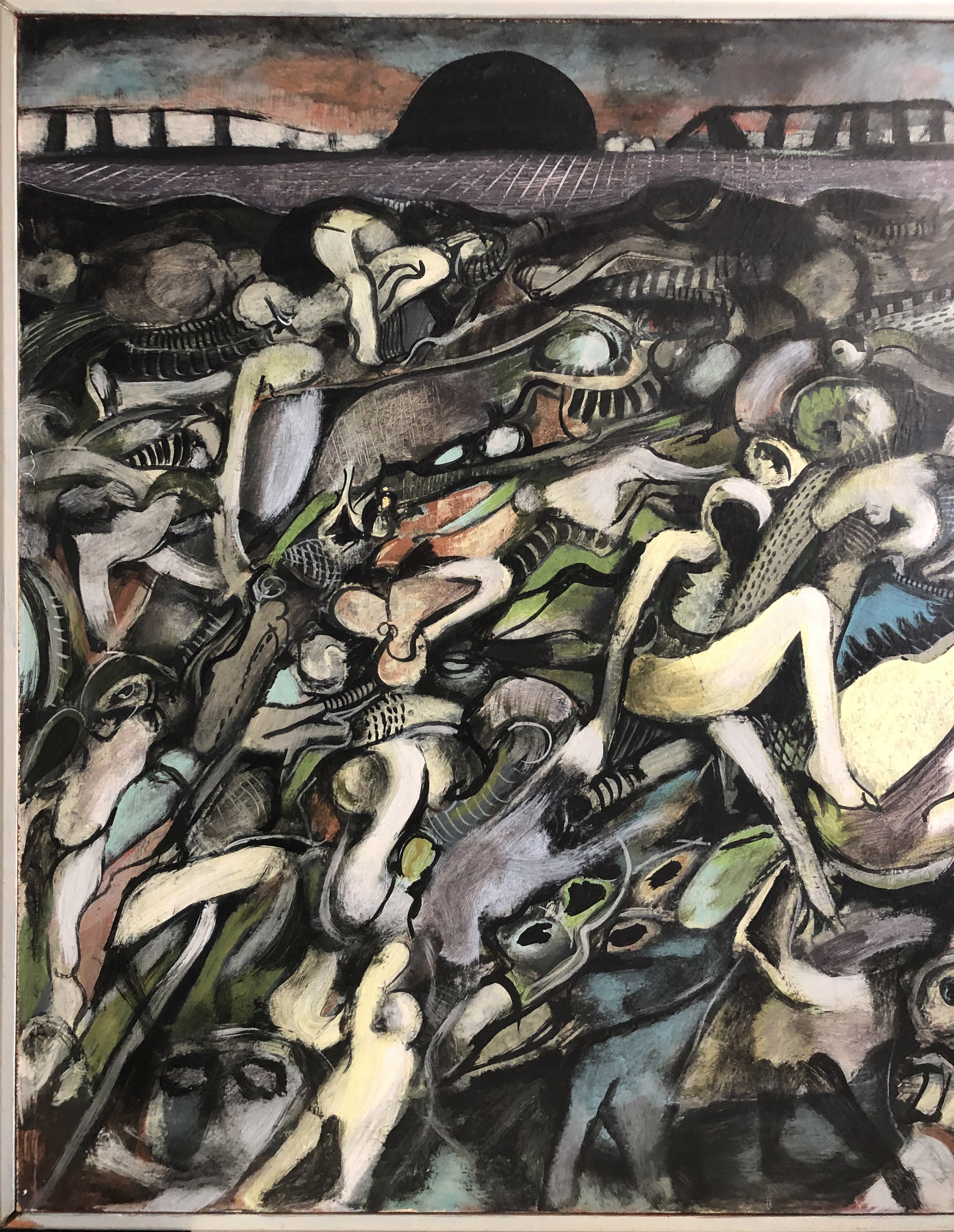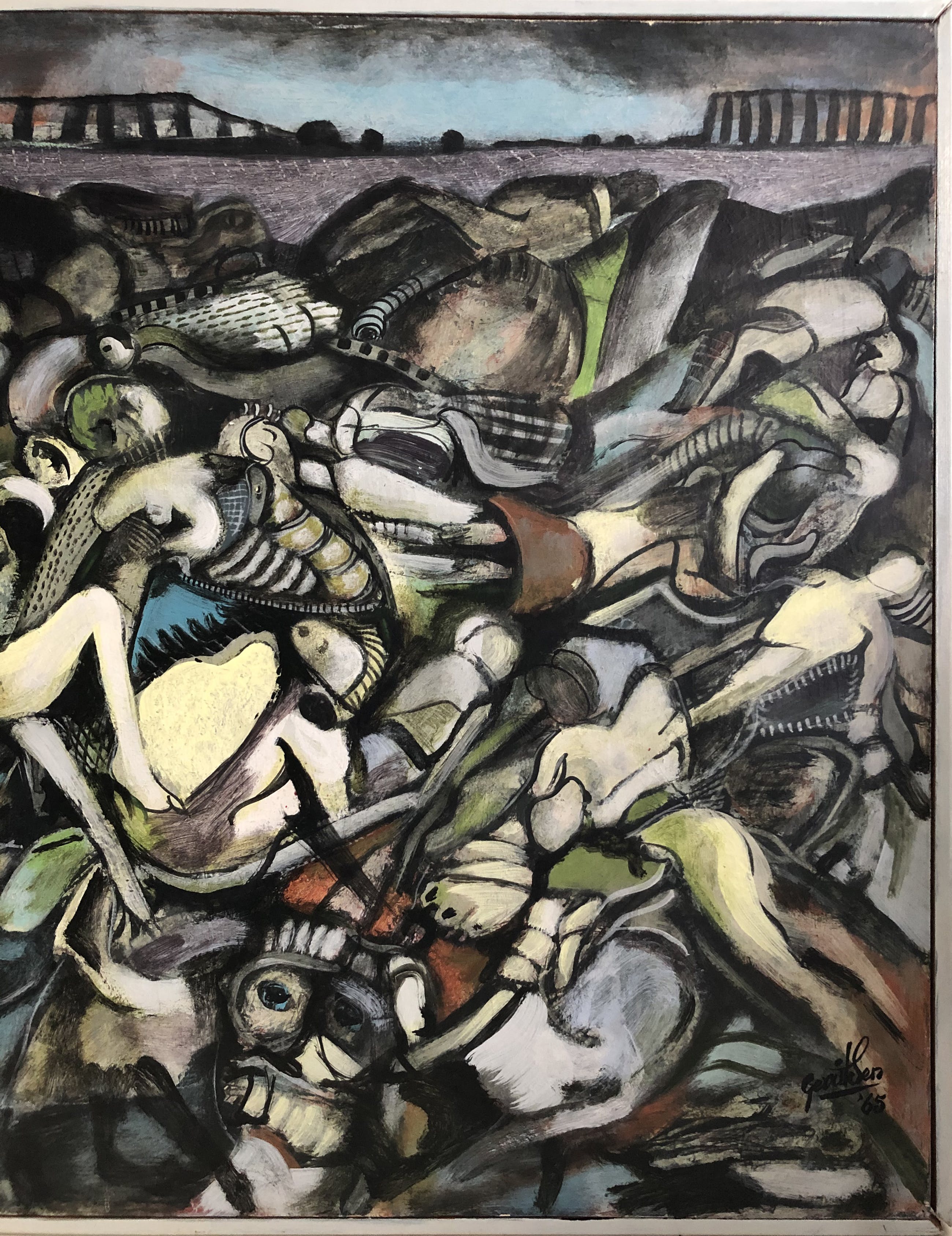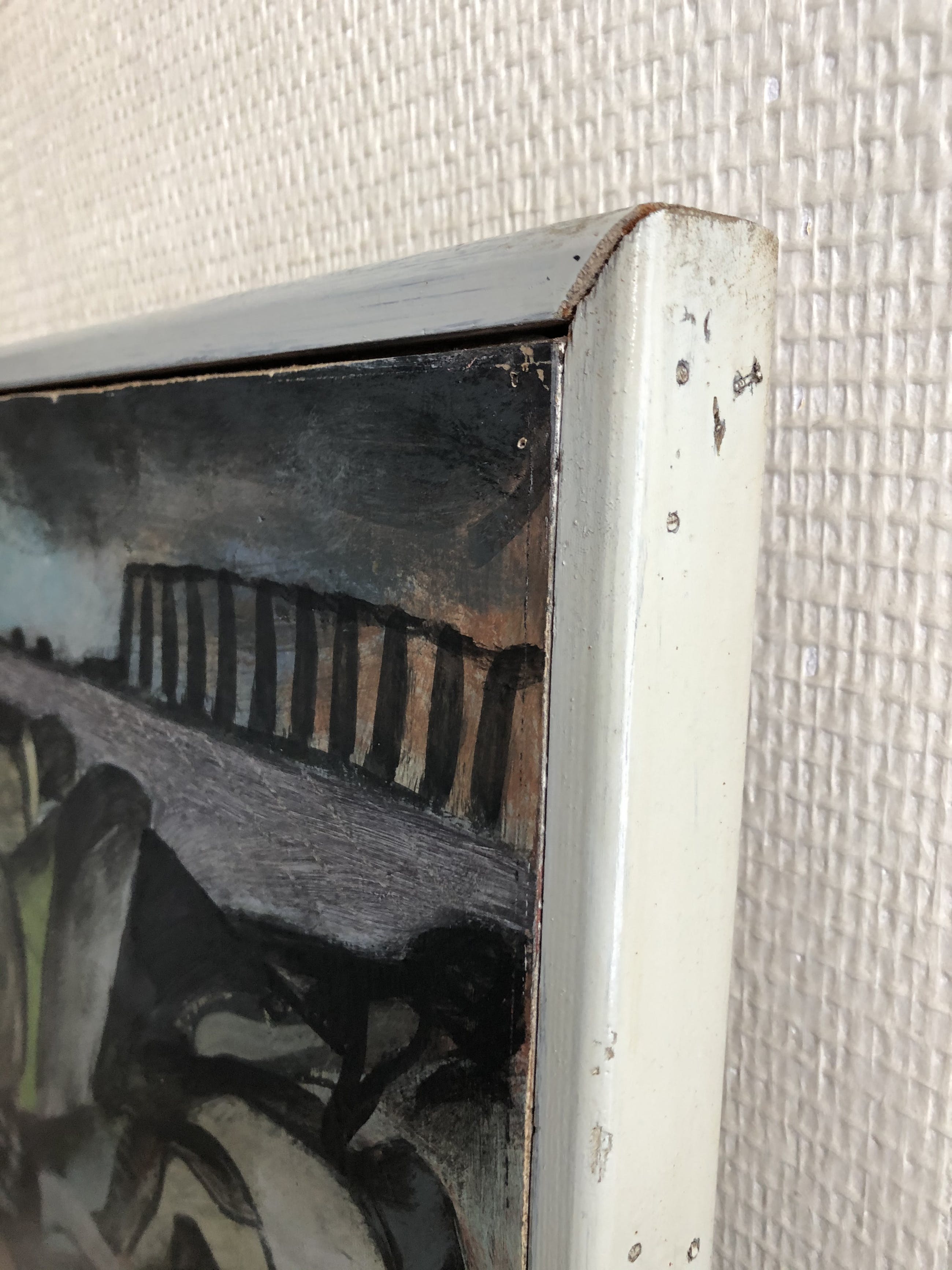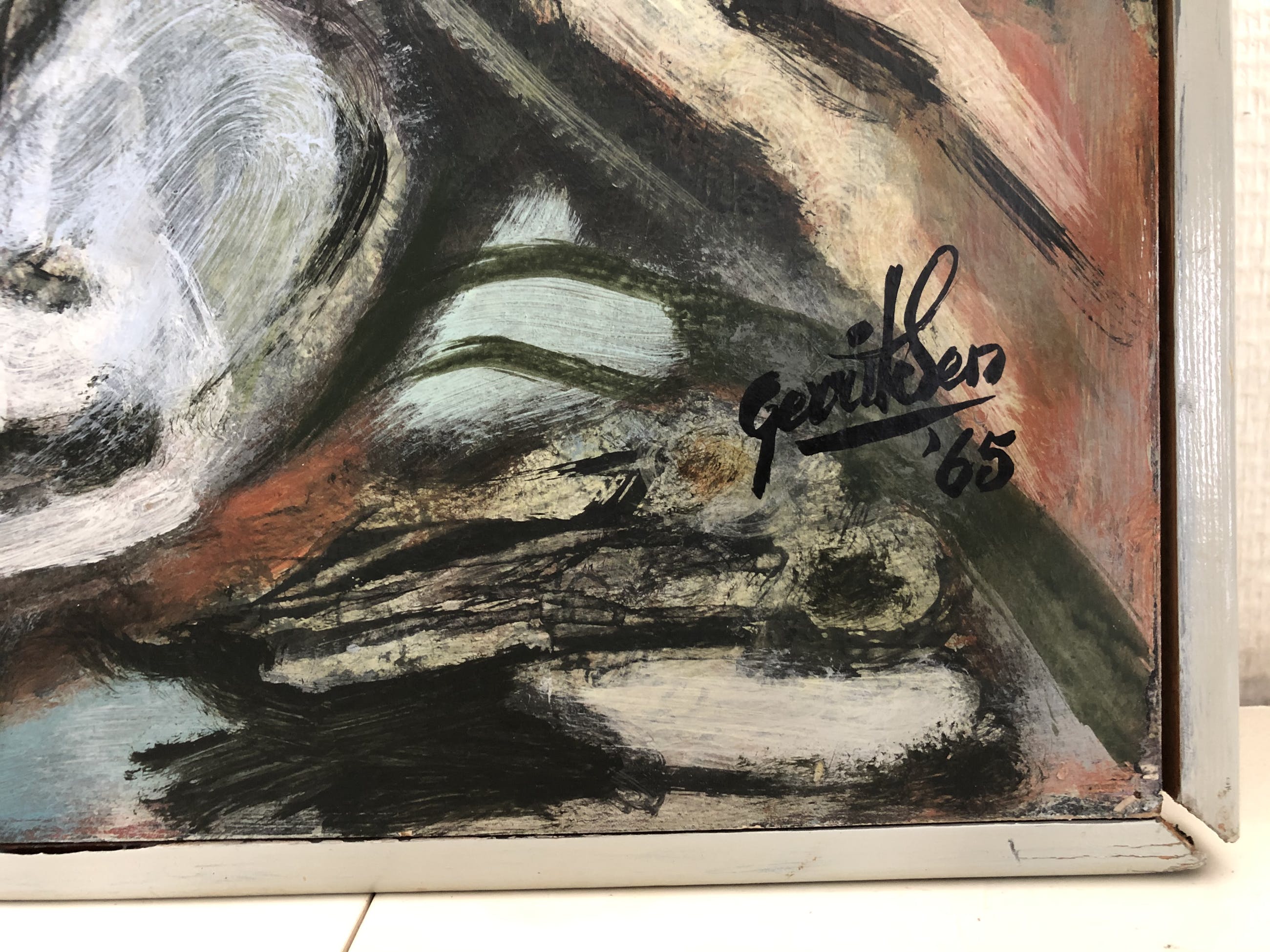 En daar bij die club kwam nou juist Wim Gerritsen in beeld. In de avonddienst kwam ik op een goede dag op het kantoor voor het eerst Wim tegen. Een leuke zware man met een enorme grijze baard. Wim had een enorme hekel aan onrecht en aan alles en iedereen wat met “het kapitaal” te maken had. In die tijd was zijn werk bijzonder graag gewild. Hij had vet kunnen leven van zijn schilderkunst, maar dat deed hij niet. Hij woonde in een eenvoudig flatje in de Alexanderpolder en men noemde hem een politiek kunstarbeider. Of zijn werk nu nog iets oplevert zou ik niet weten.
