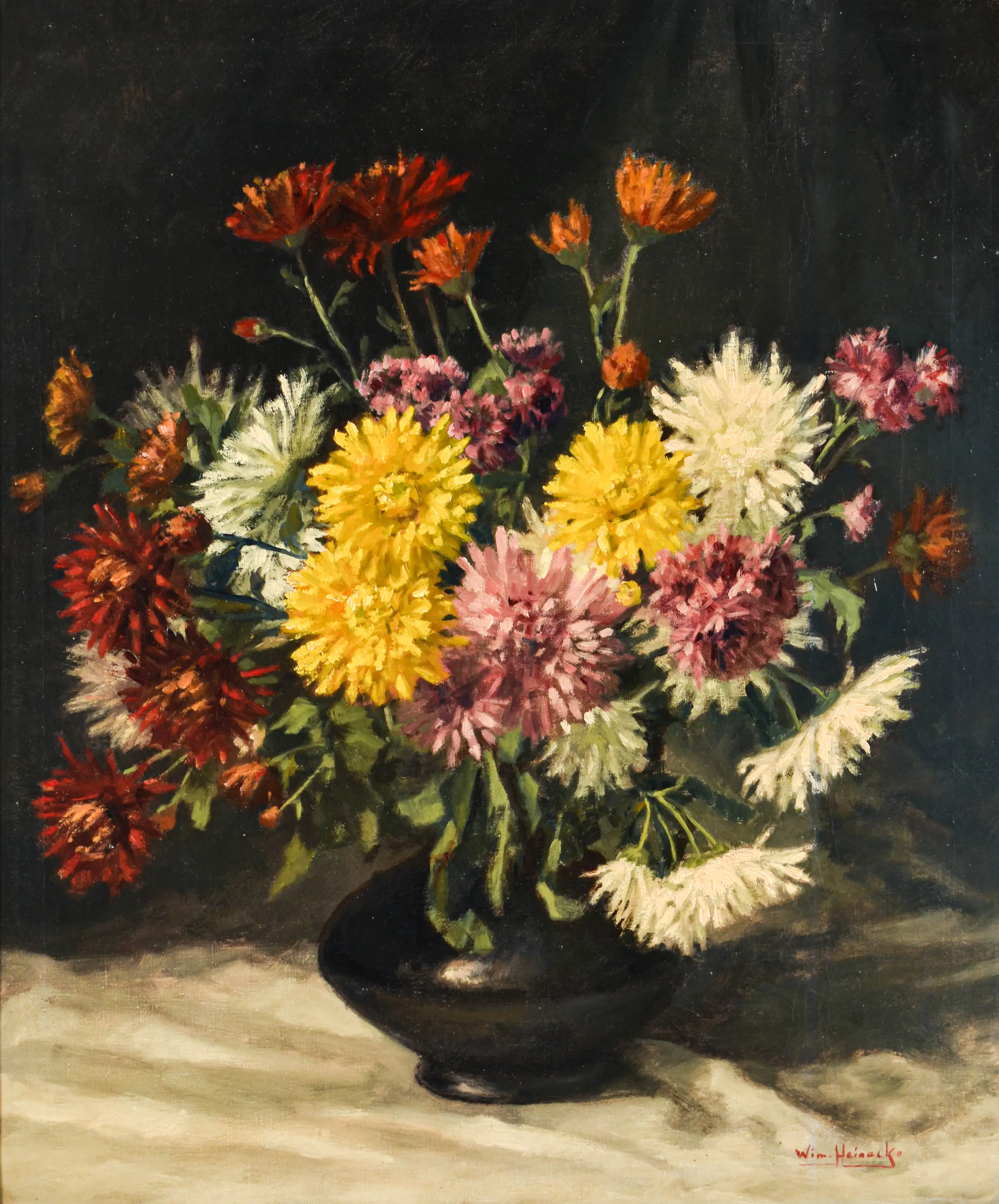 Wim Heinecke schilderde al op jonge leeftijd als reclame- en decoratieschilder. In de avonduren bezocht hij de Rotterdamse Academie van Beeldende kunsten, waar hij o.a. les kreeg van J.G. Heijberg en David Bautz. Heinecke schilderde vooral Rotterdam: het water, schepen in de havens, sleperswagens en zandkarren, de rommelmarkt op het Noordplein, straatjes in zomer of winter. Maar ook de Laurenskerk en de havens na het bombardement van mei 1940. Daarnaast schilderde hij landschappen en stillevens met bloemen. De schilder was een van de drijvende krachten achter de Kunstenaarssociëteit ‘De Eendracht’ en 21 jaar bestuurslid van de Beroepsvereniging voor Beeldende Kunstenaars.