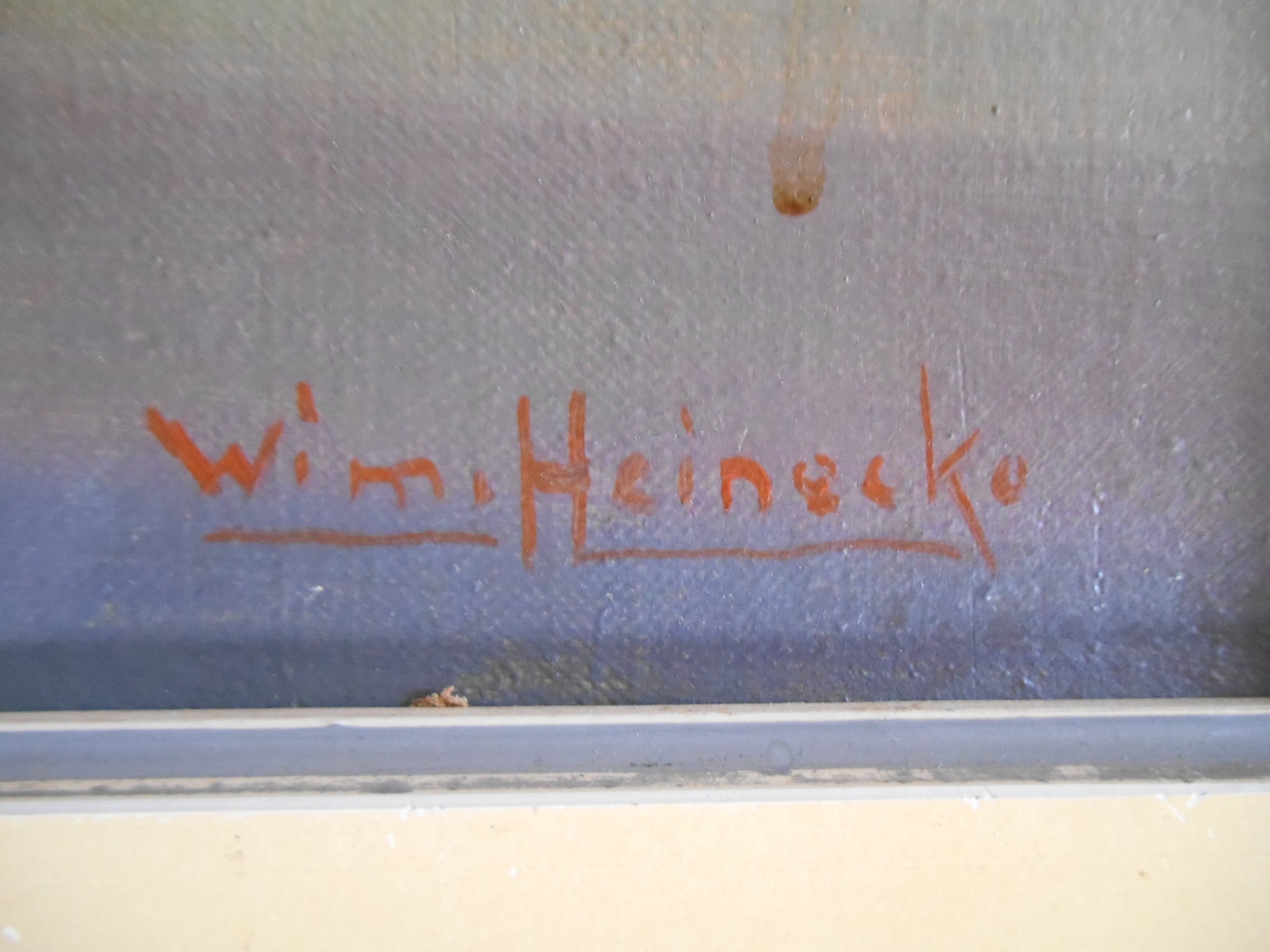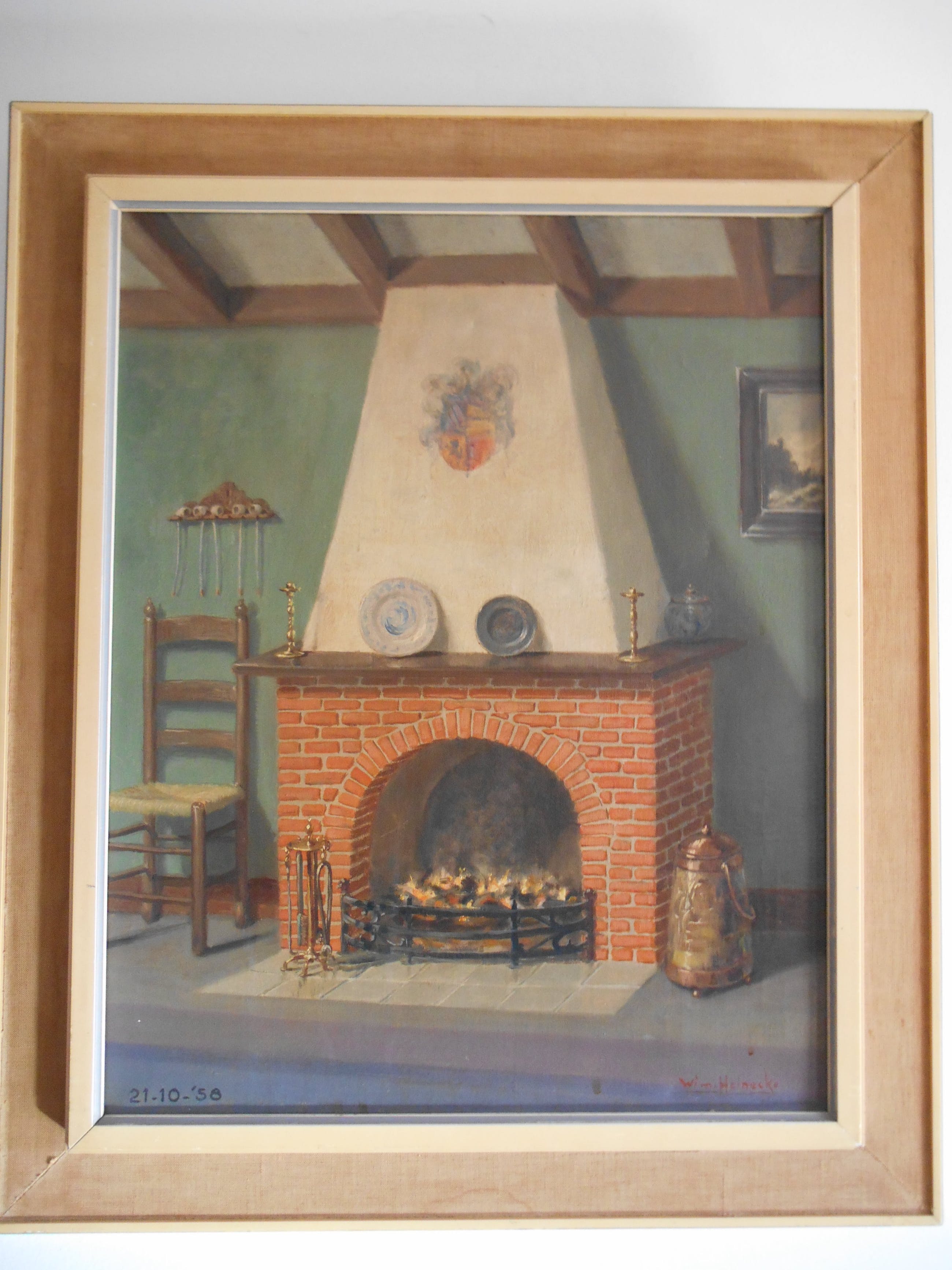 Sfeervolle interieurschildering van de Rotterdamse schilder Wim Heinecke ( 1895 - 1978 ). Hij kreeg zijn opleiding aan de academie voor beeldende kunsten (Rotterdam). Zijn onderwerpen gaan van stadsgezichten en stillevens tot portretten, interieurs en landschappen.