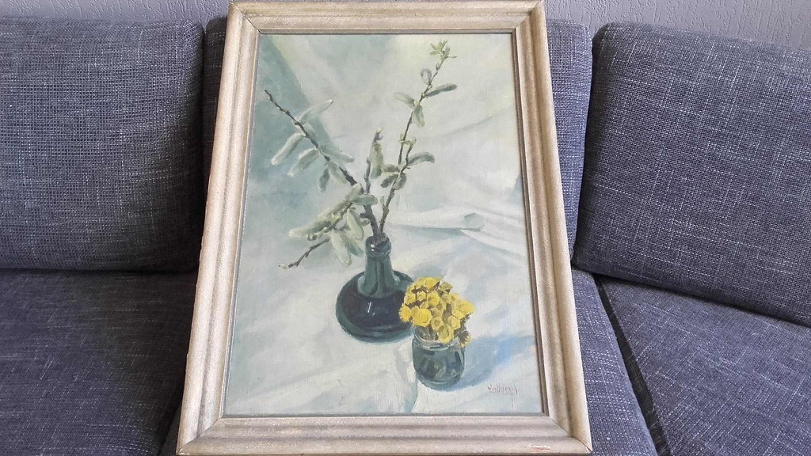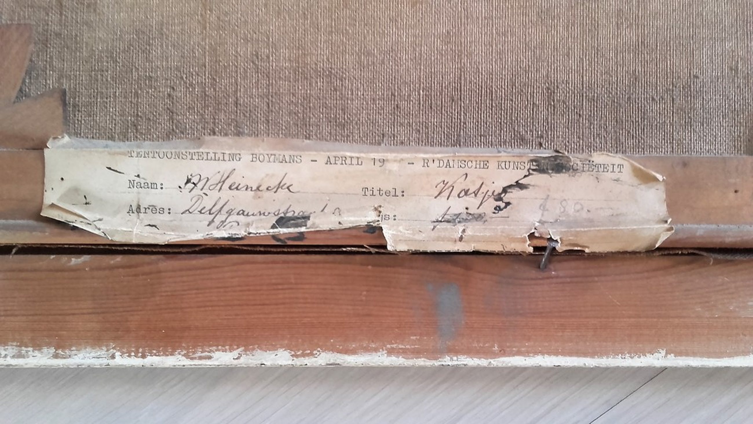 Wim Heinecke. (Rotterdam 1895-1978 Rotterdam) Gesigneerd, rechtsonder. Titel: Katjes. Afm totaal: 69 cm bij 49 cm. Afm doek: 59.5 cm bij 39 cm. Conditie: De lijst moet wat bijgewerkt worden, doek in perfecte staat. Wordt extra ingepakt in noppenplastic, inclusief doos.