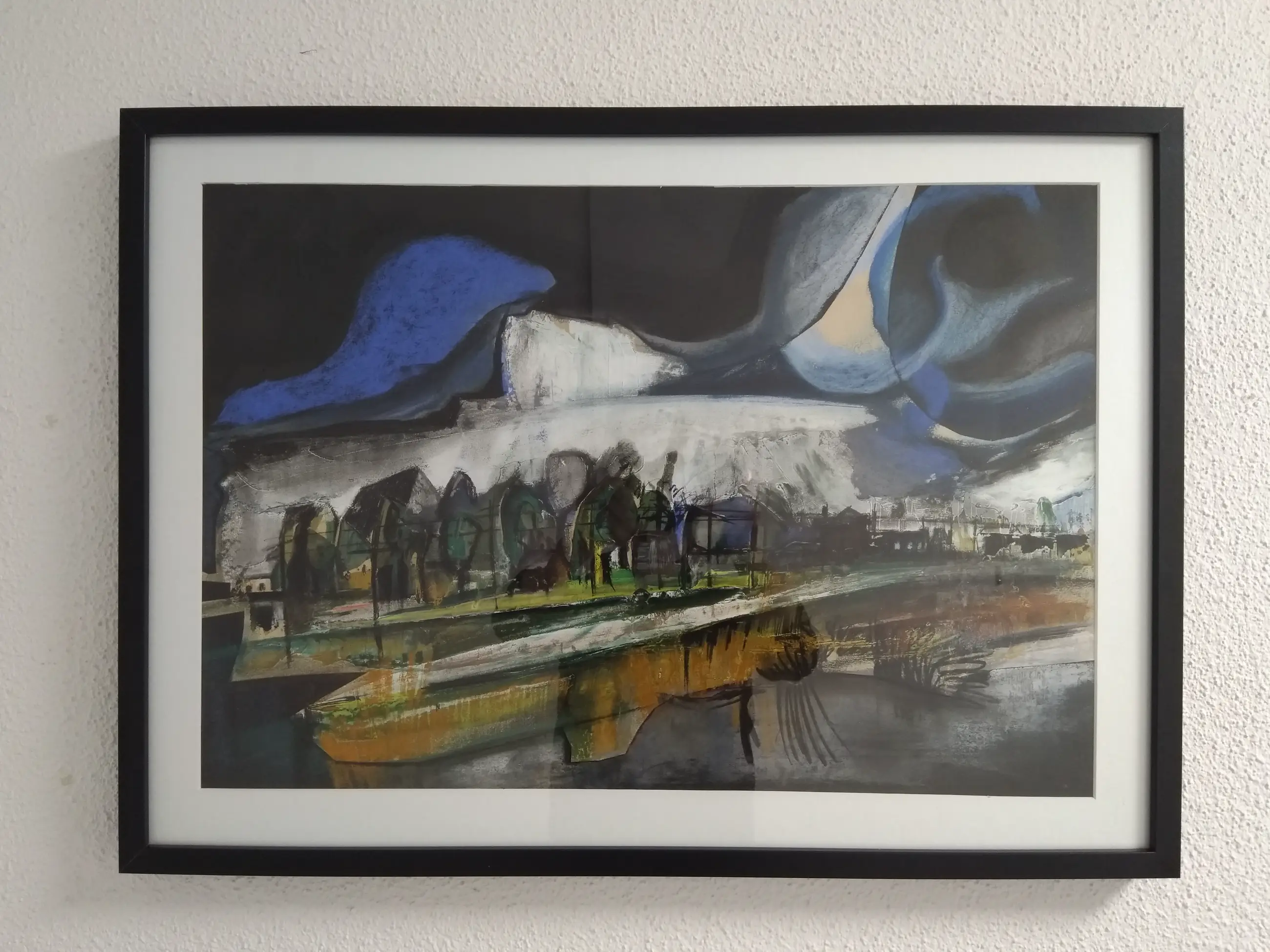 Werk in goede staat. Lijst en passe-partout heeft lichte gebruiksporen.