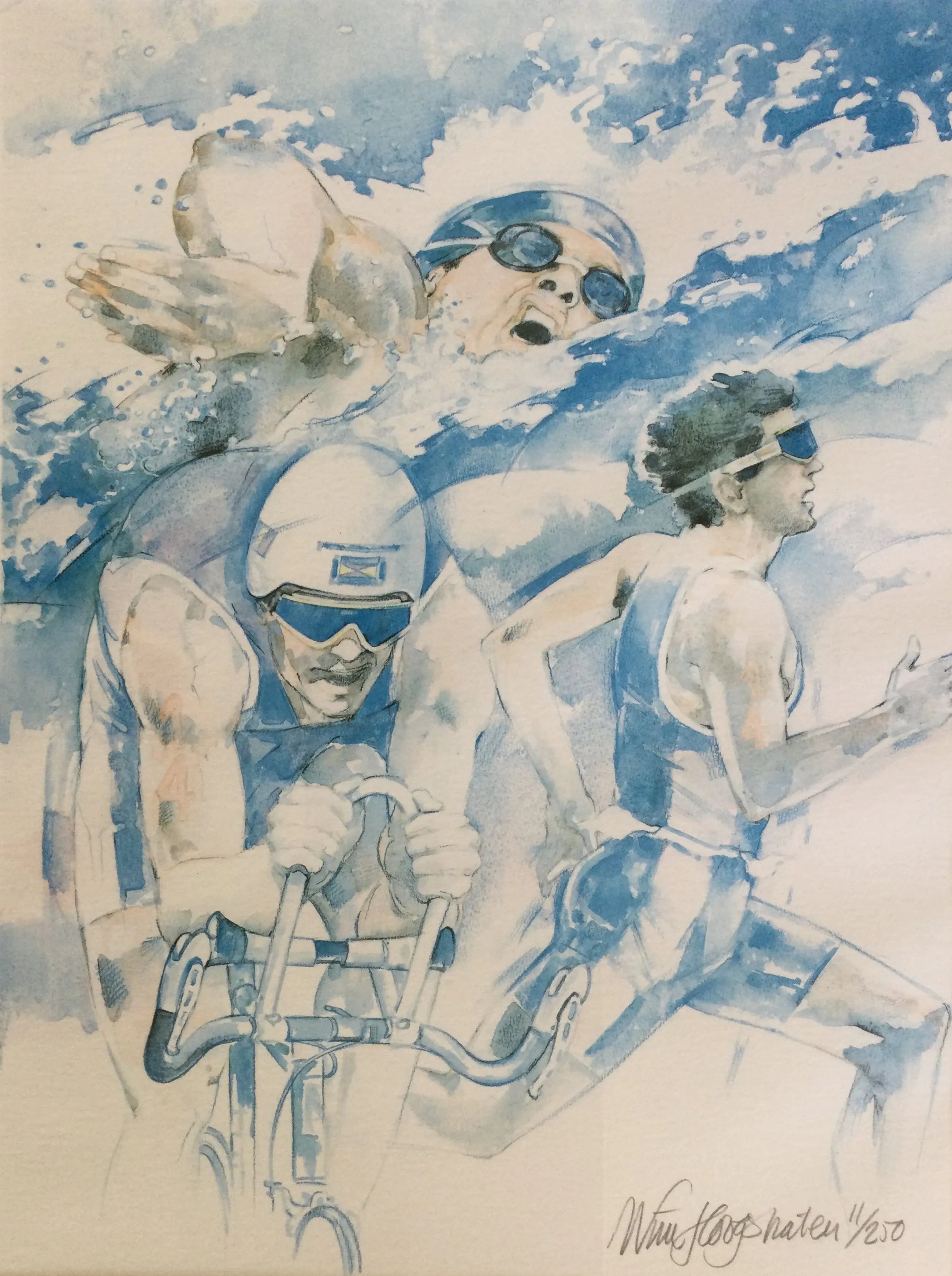 Prachtige sportlitho van Wim Hoogstraten (1943, Leiden) die met dit genre eind vorige eeuw bekendheid genoot.