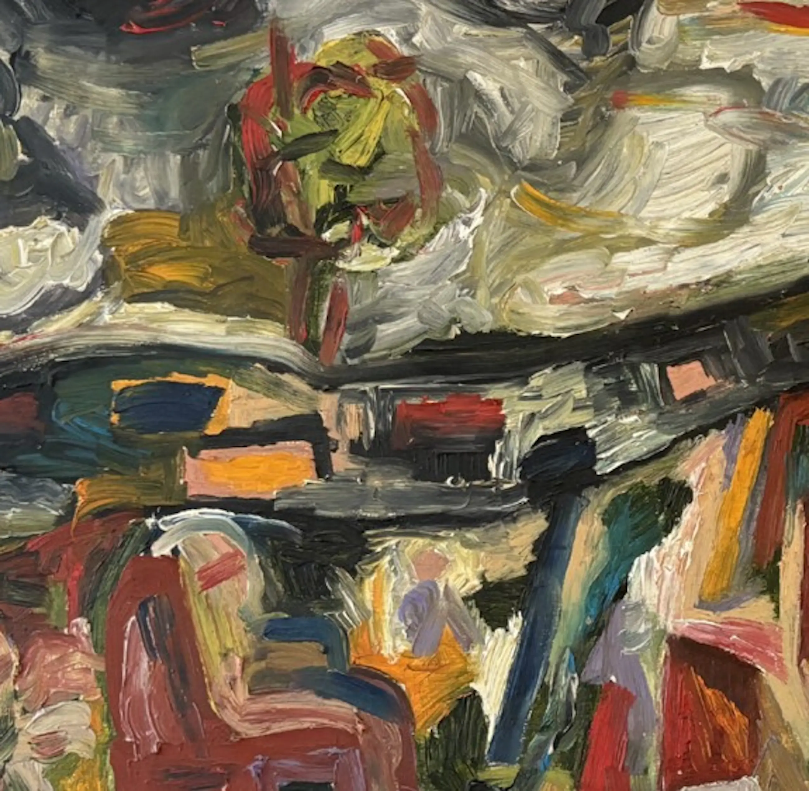 Het werk is olieverf op paneel en komt uit 1988. Het werk is gesigneerd op de achterkant en in goede staat. Het werk is mooi ingelijst.
