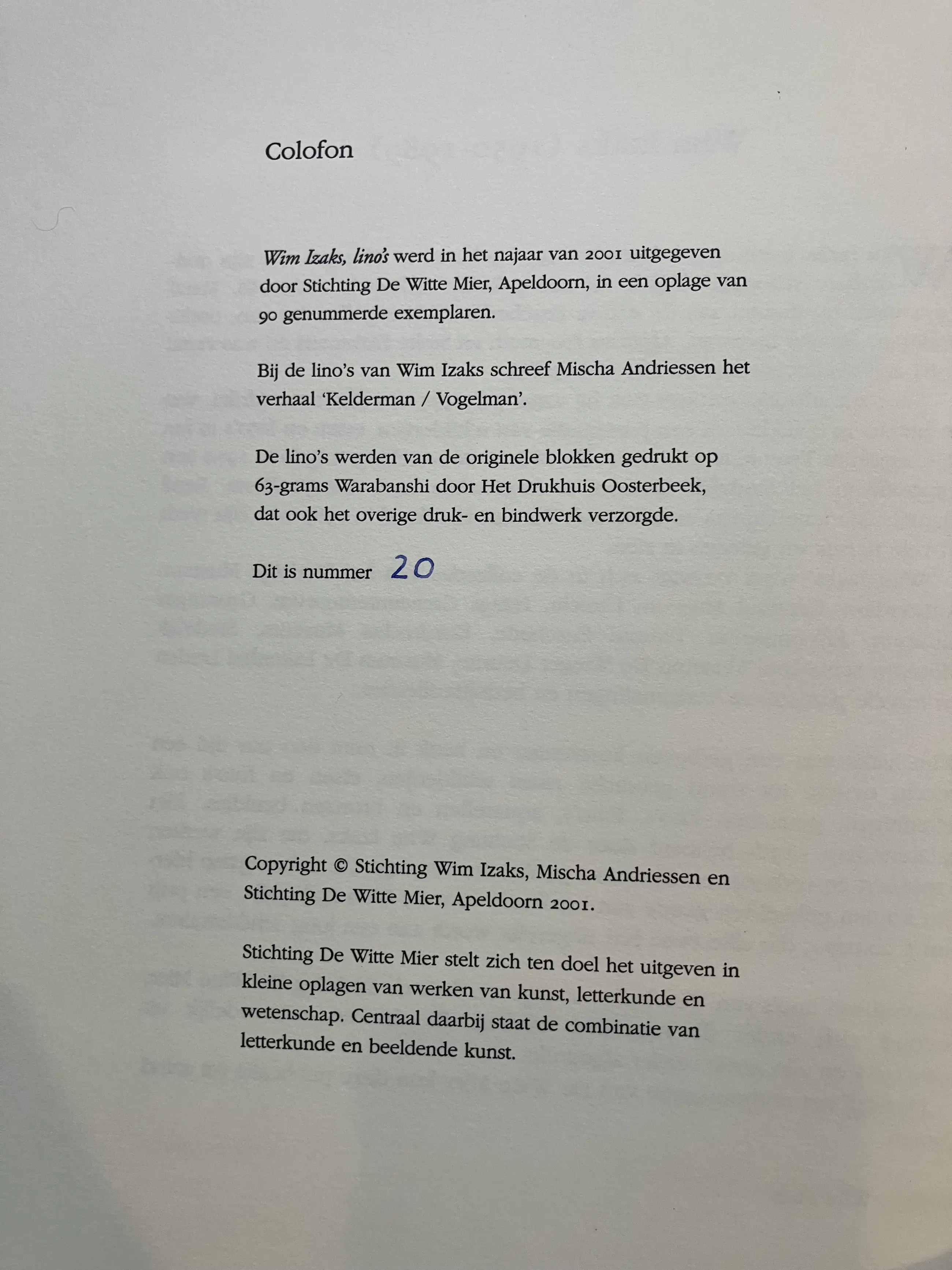 Omslag heeft wat verkleuring en foxing. Lino’s zelf in goede staat.