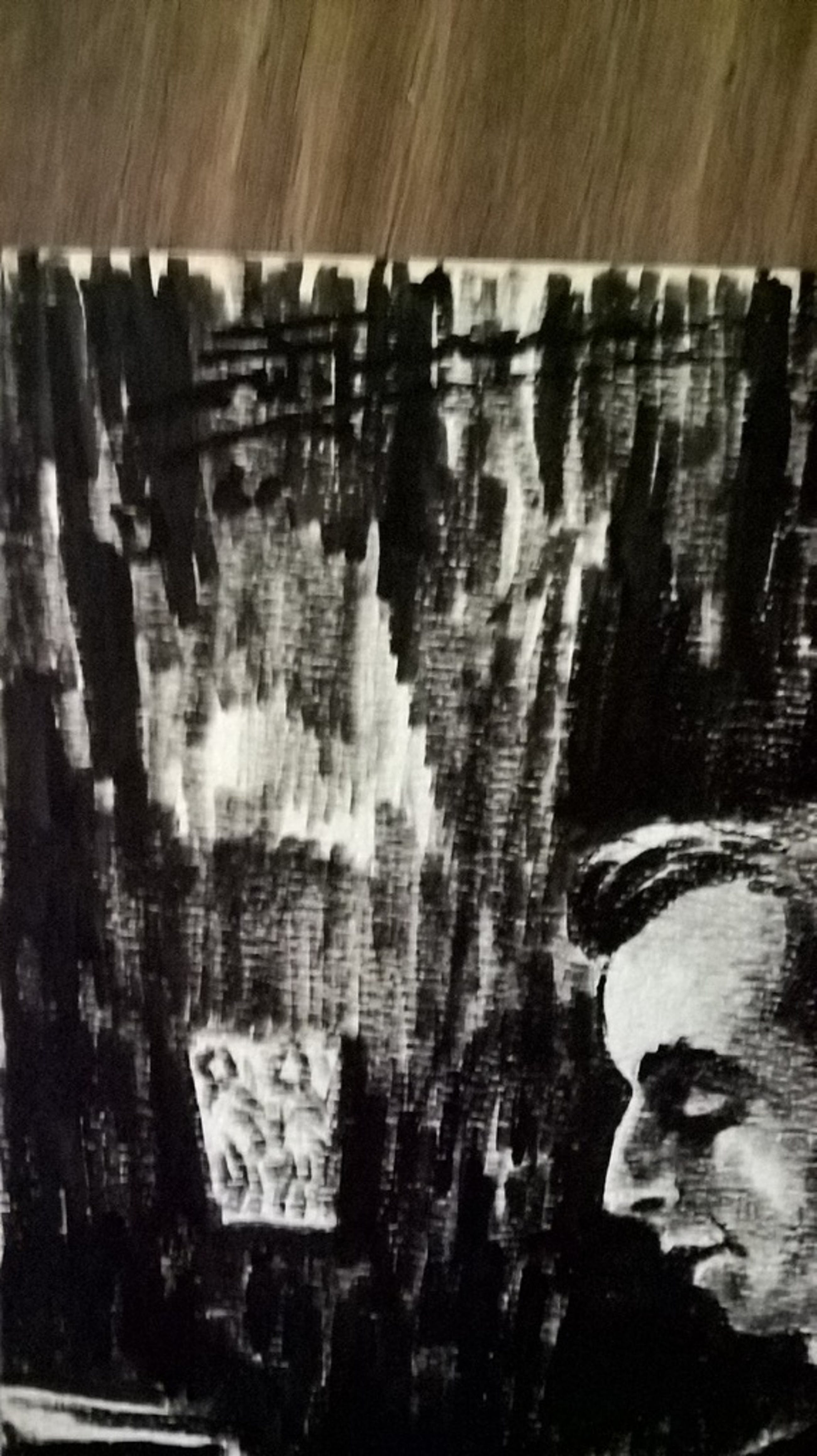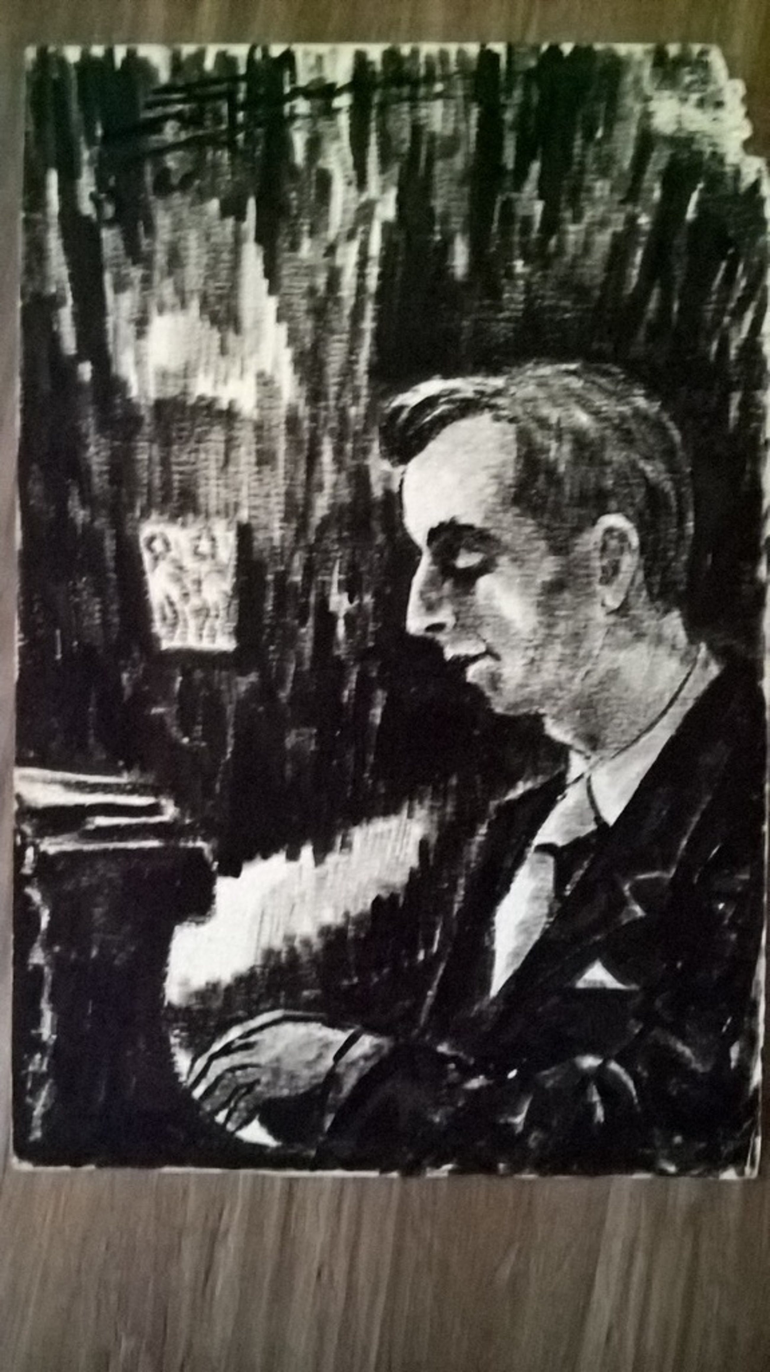 Piano speler. Een tekening door Willem Jurcka. Rechtsboven stukje uit papier. Gesigneerd.