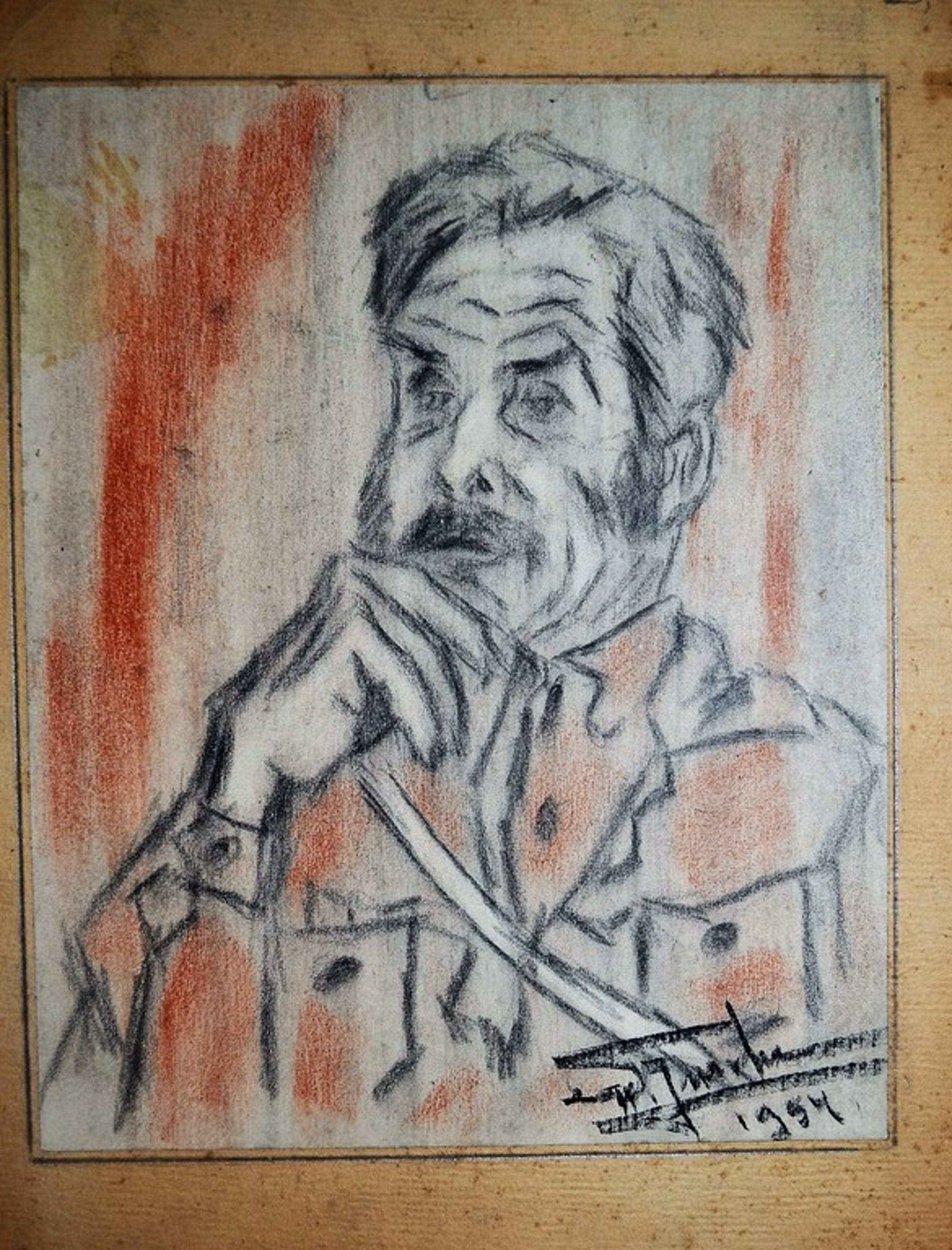 Potloodtekening door Wim Jurcka. Gesigneerd en gedateerd 1954. Afmeting van de tekening is 23 bij 28 cm.