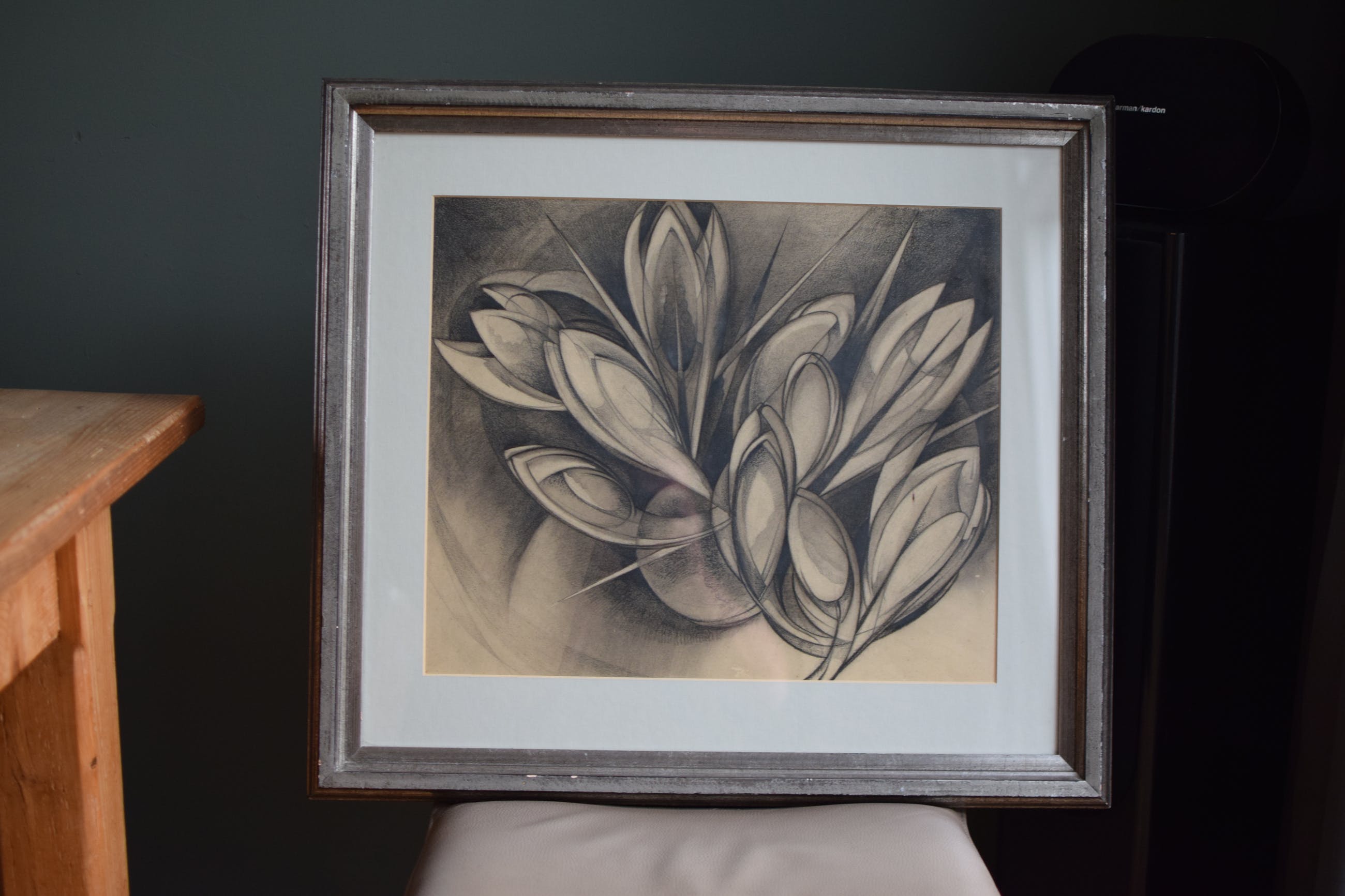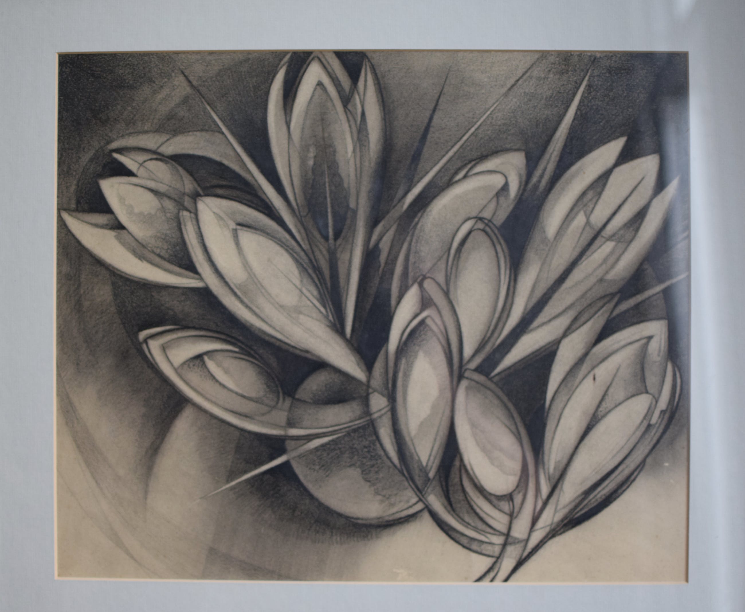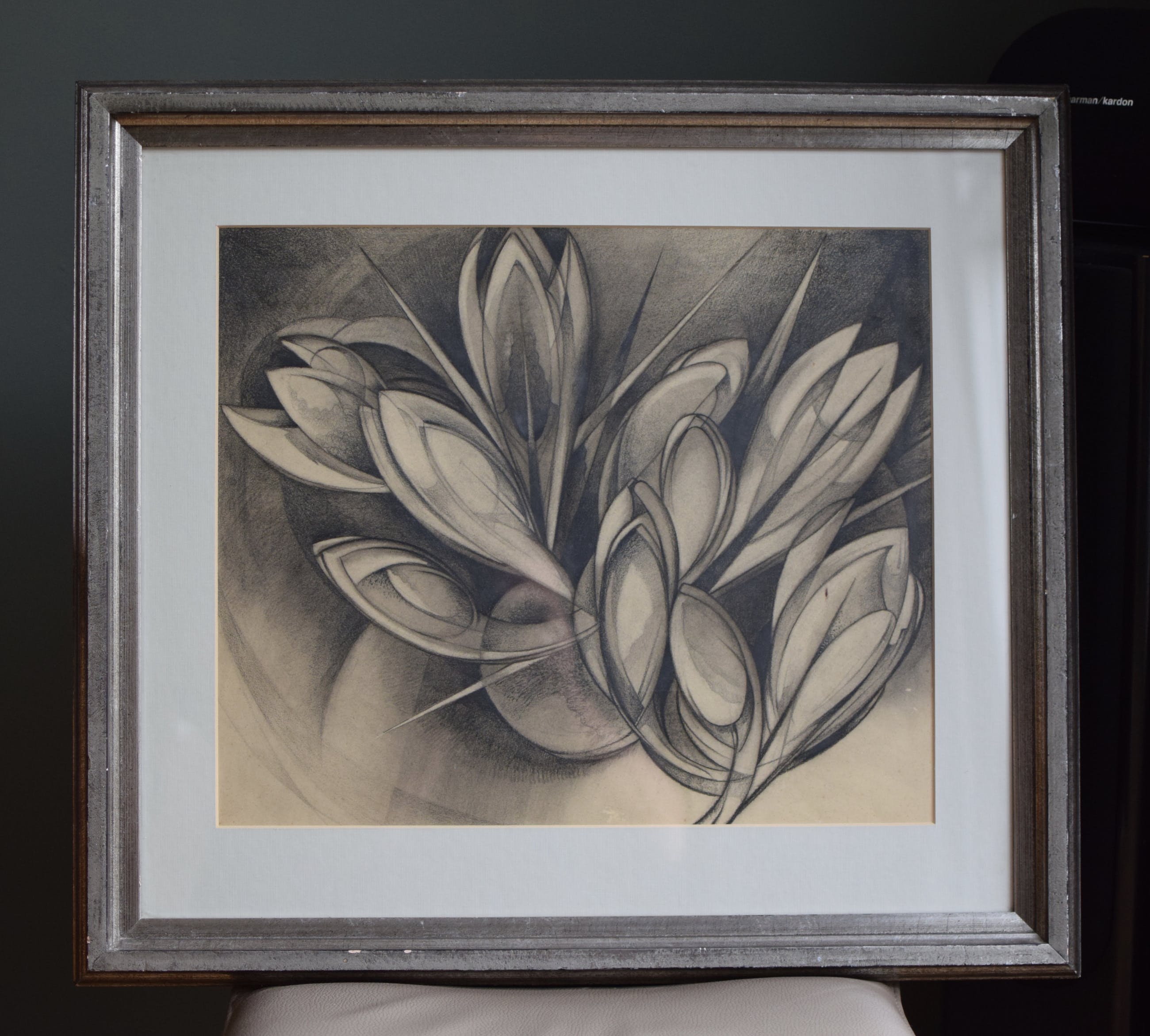 Mooi werk in zijn kenmerkende stijl.Krokussen getekend in grijstinten.