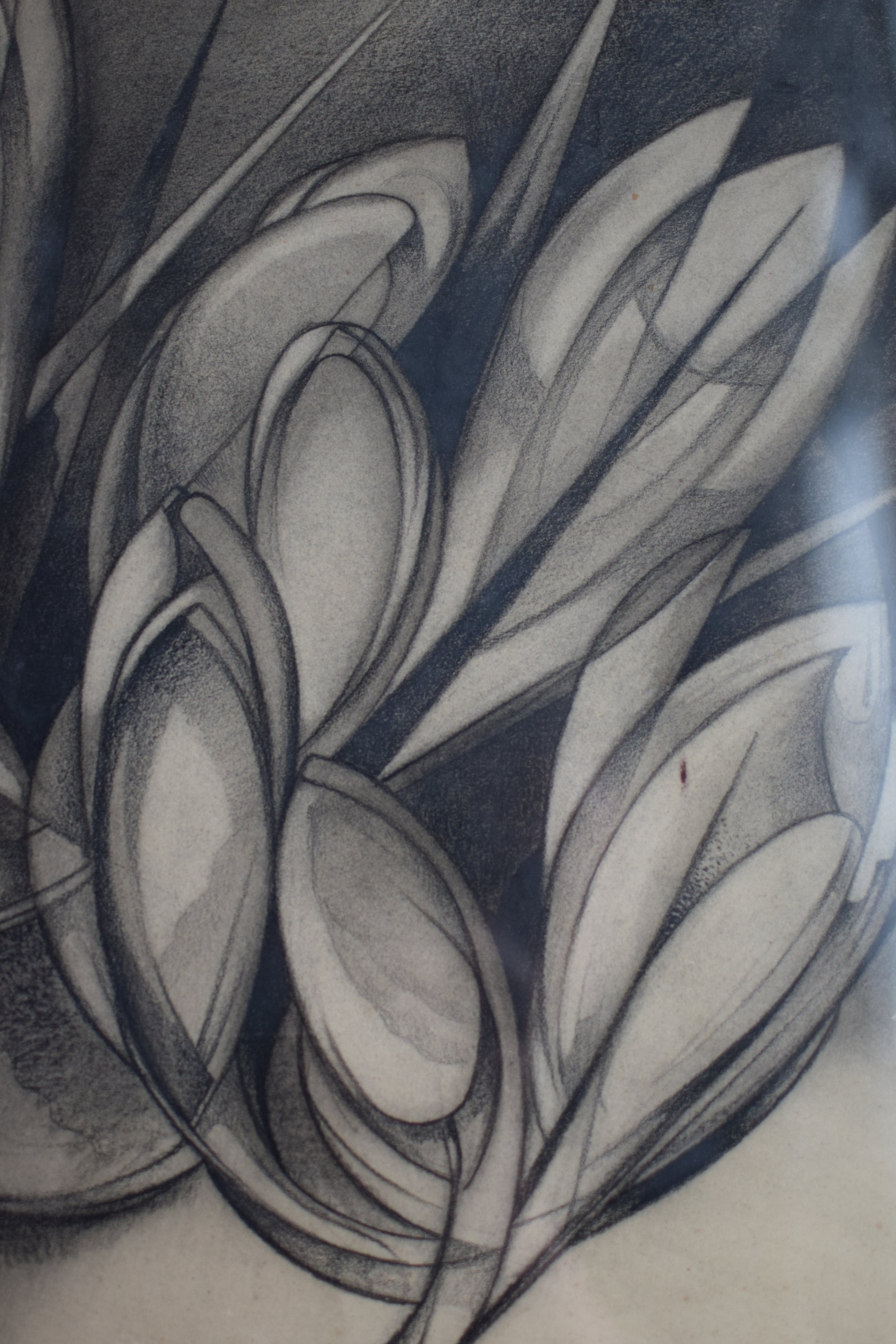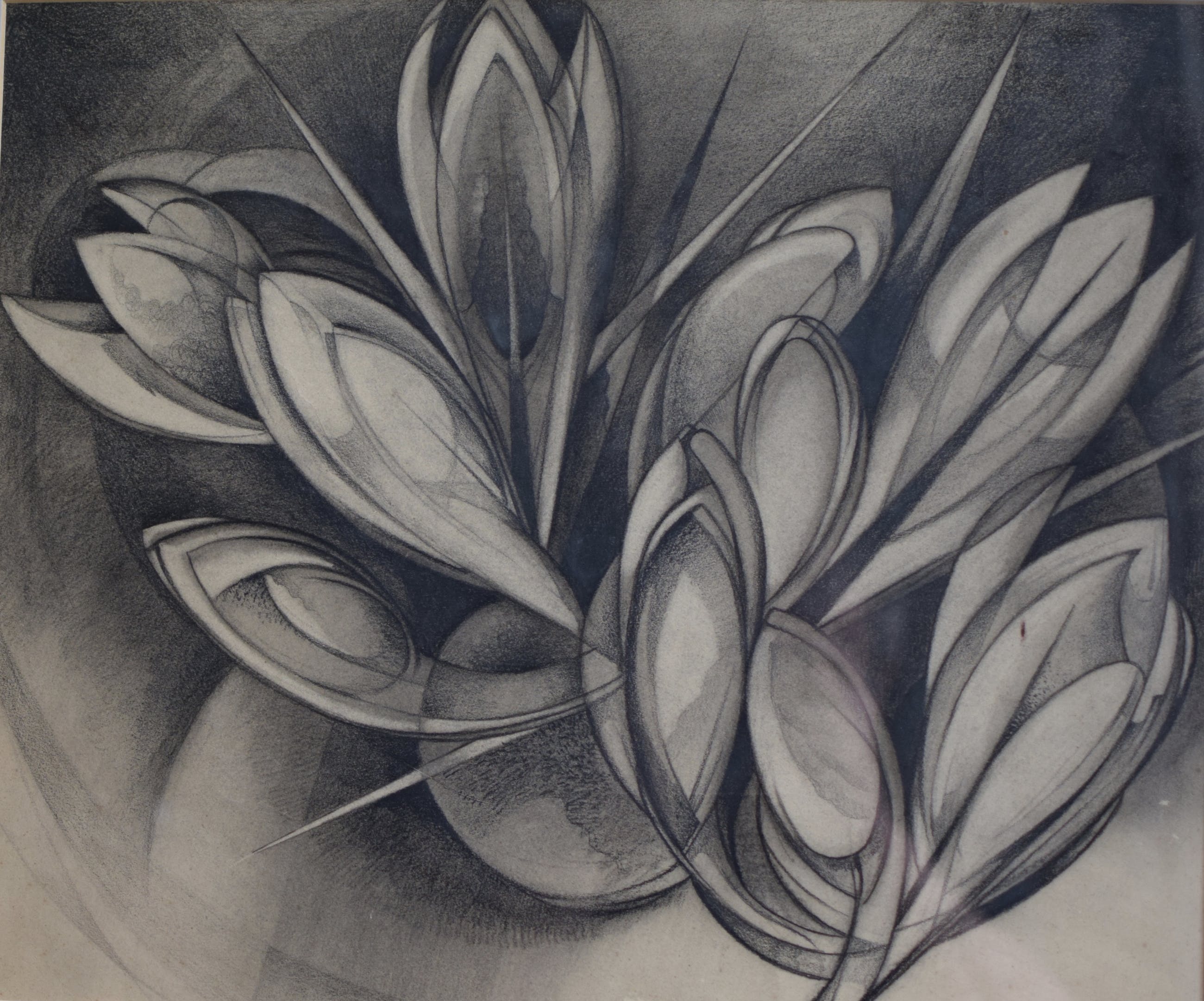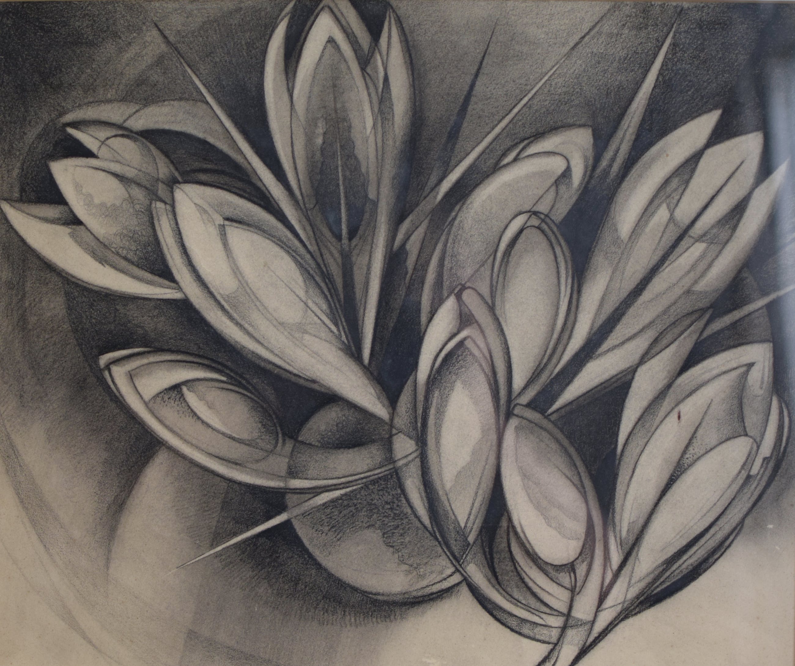Mooi werk in zijn kenmerkende stijl.Krokussen getekend in grijstinten.