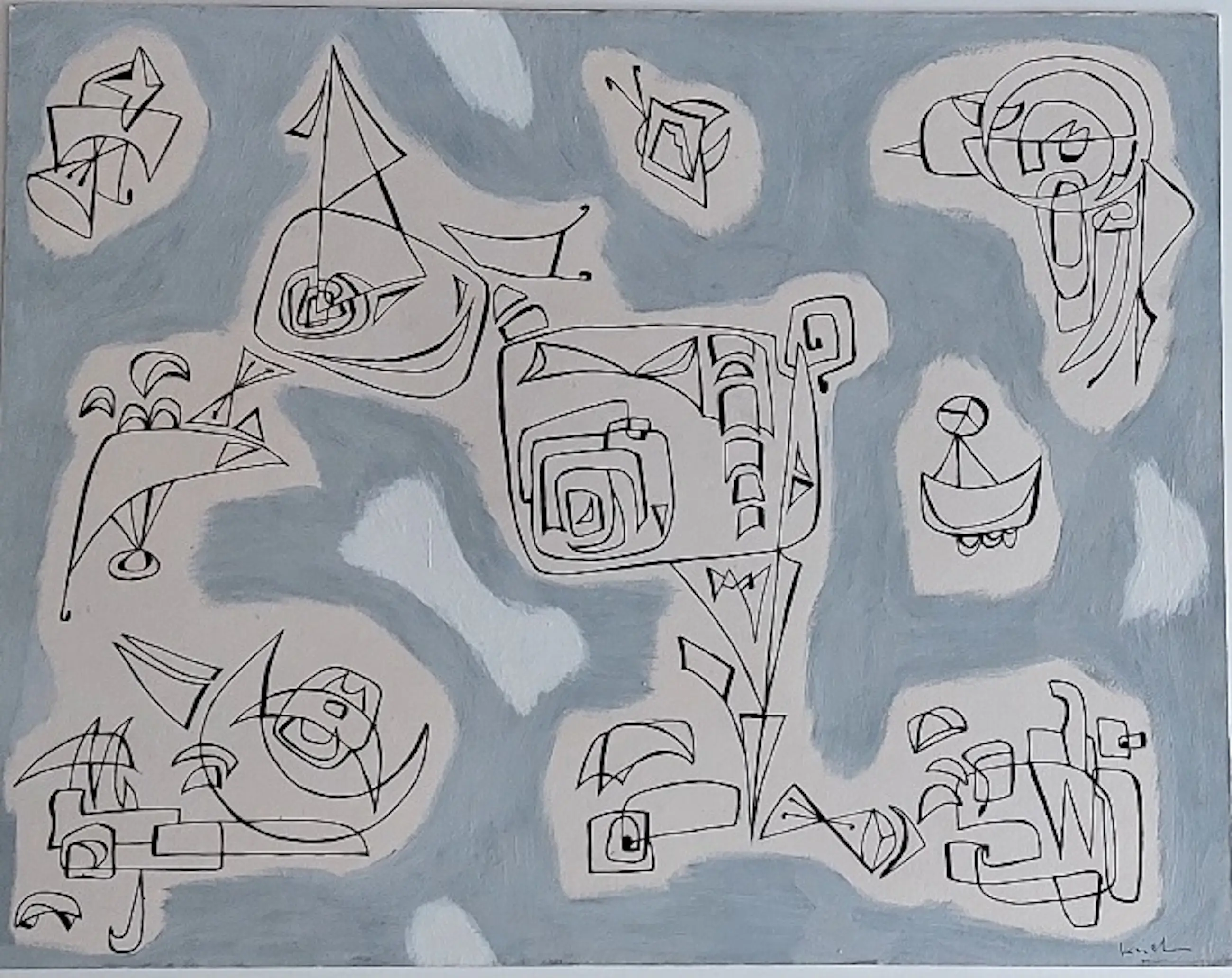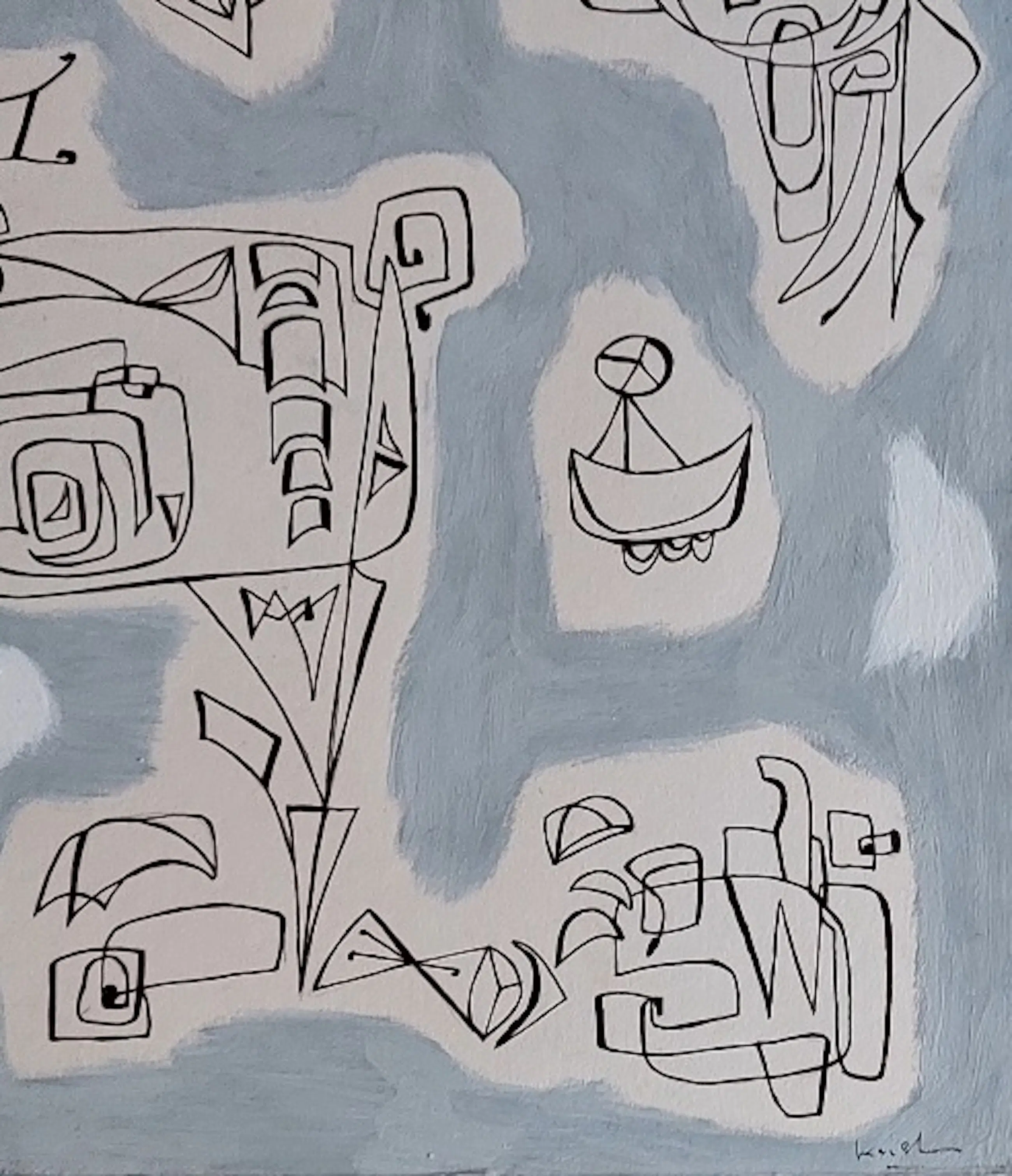 Mooi werk van deze bijzondere kunstenaar. Olieverf en aquarel op karton. Gesigneerd rechts onder en nogmaals aan de achterzijde.