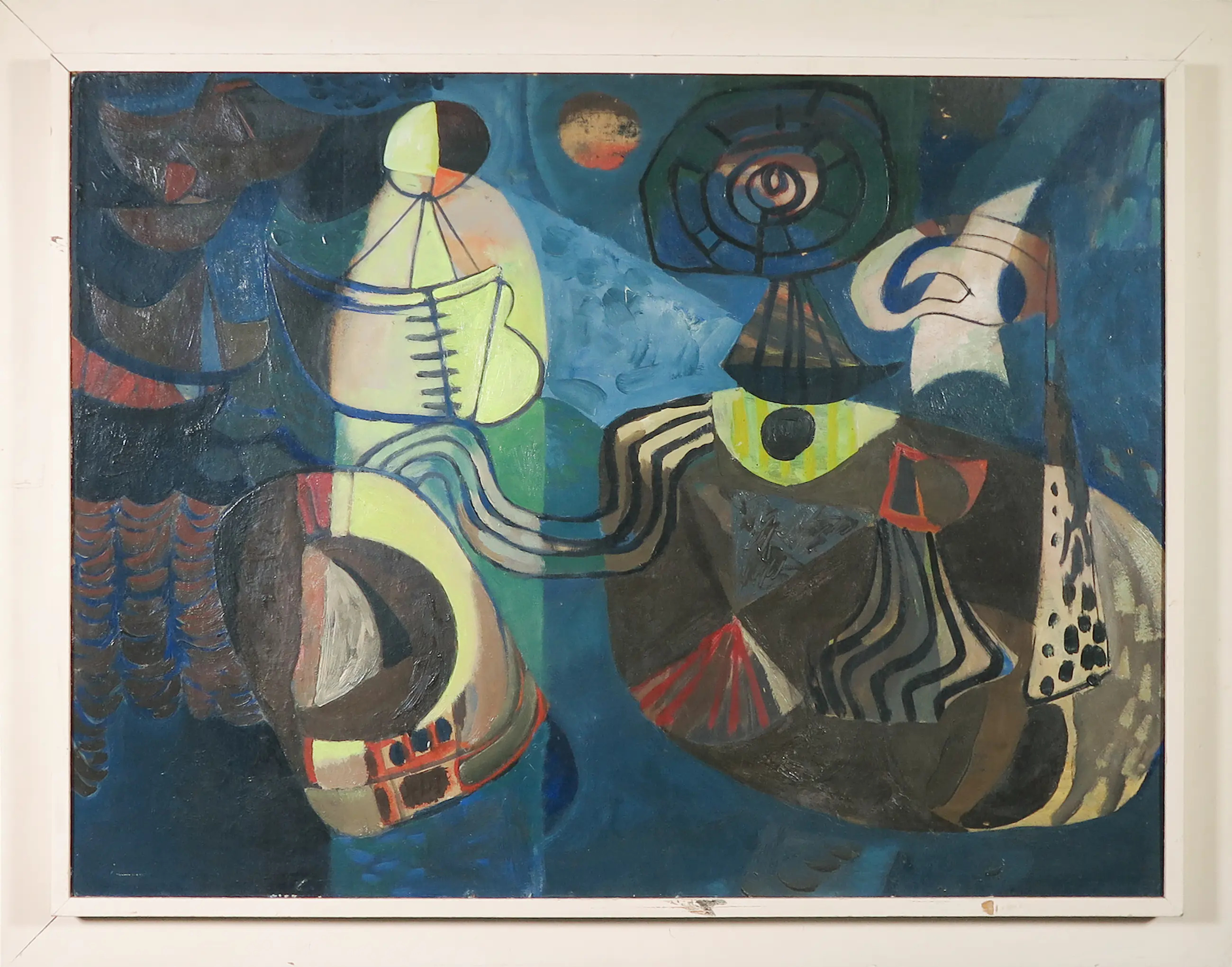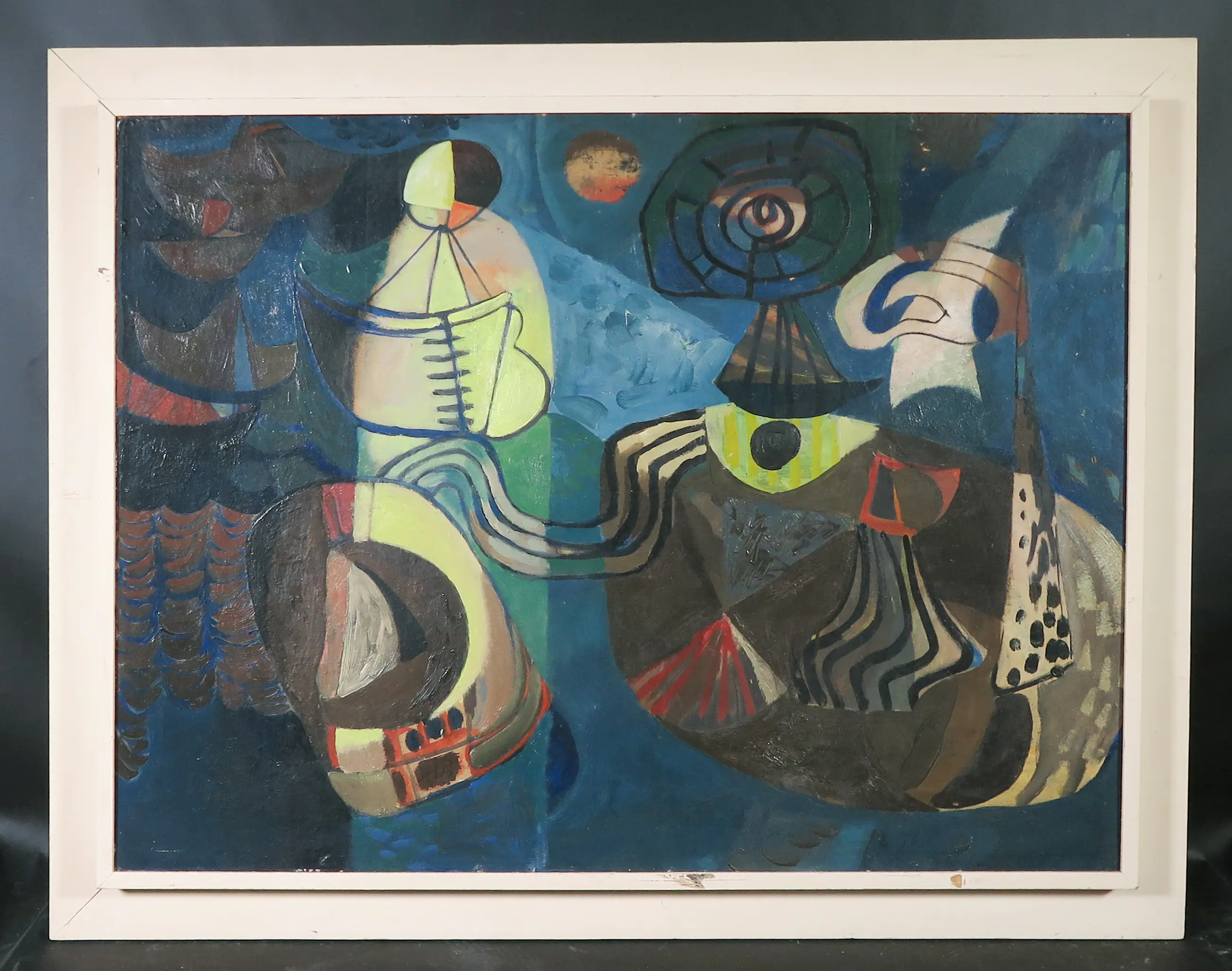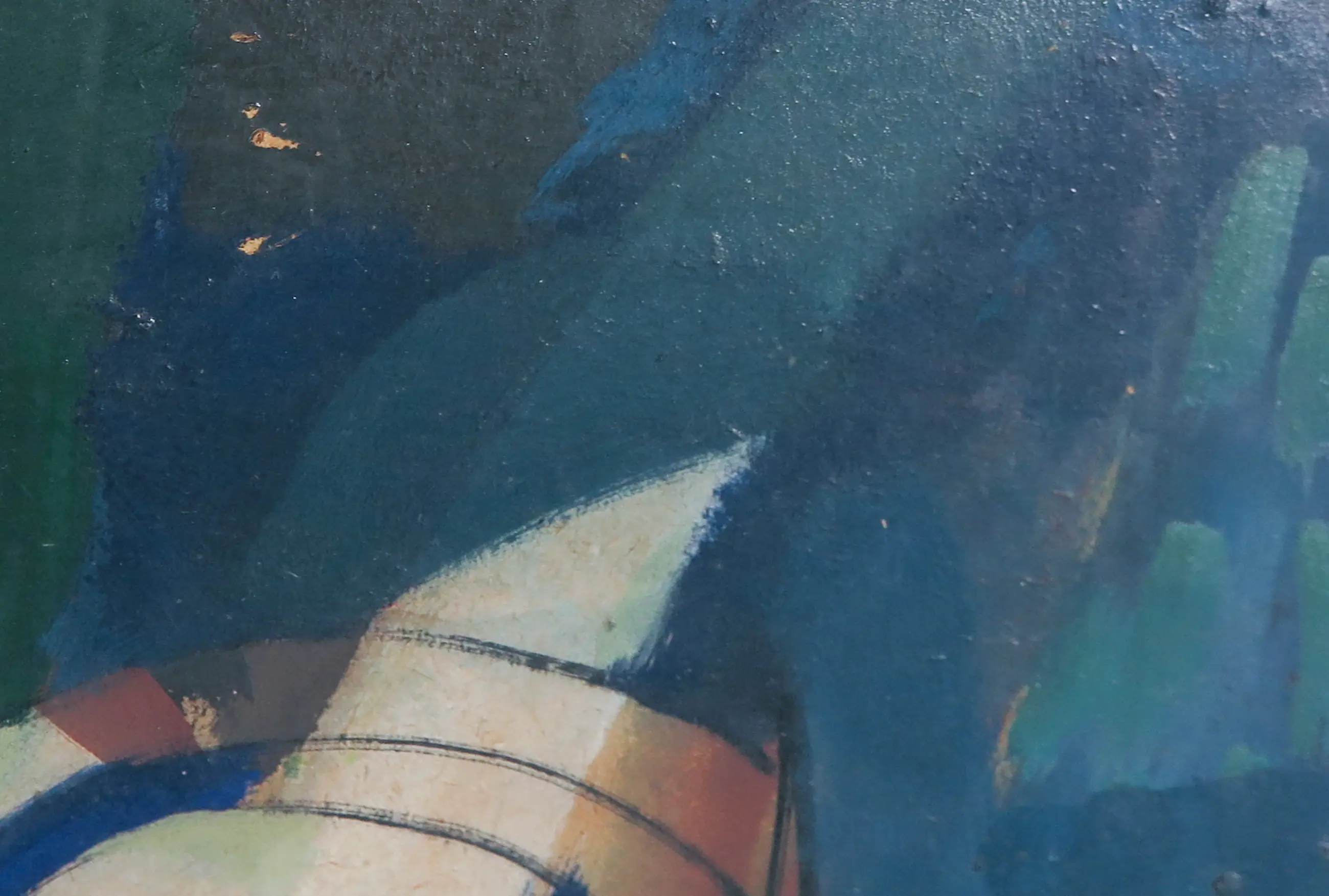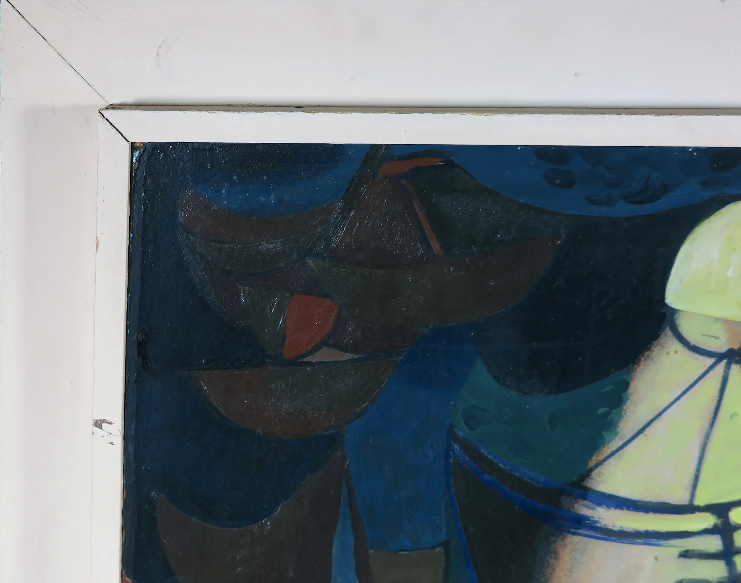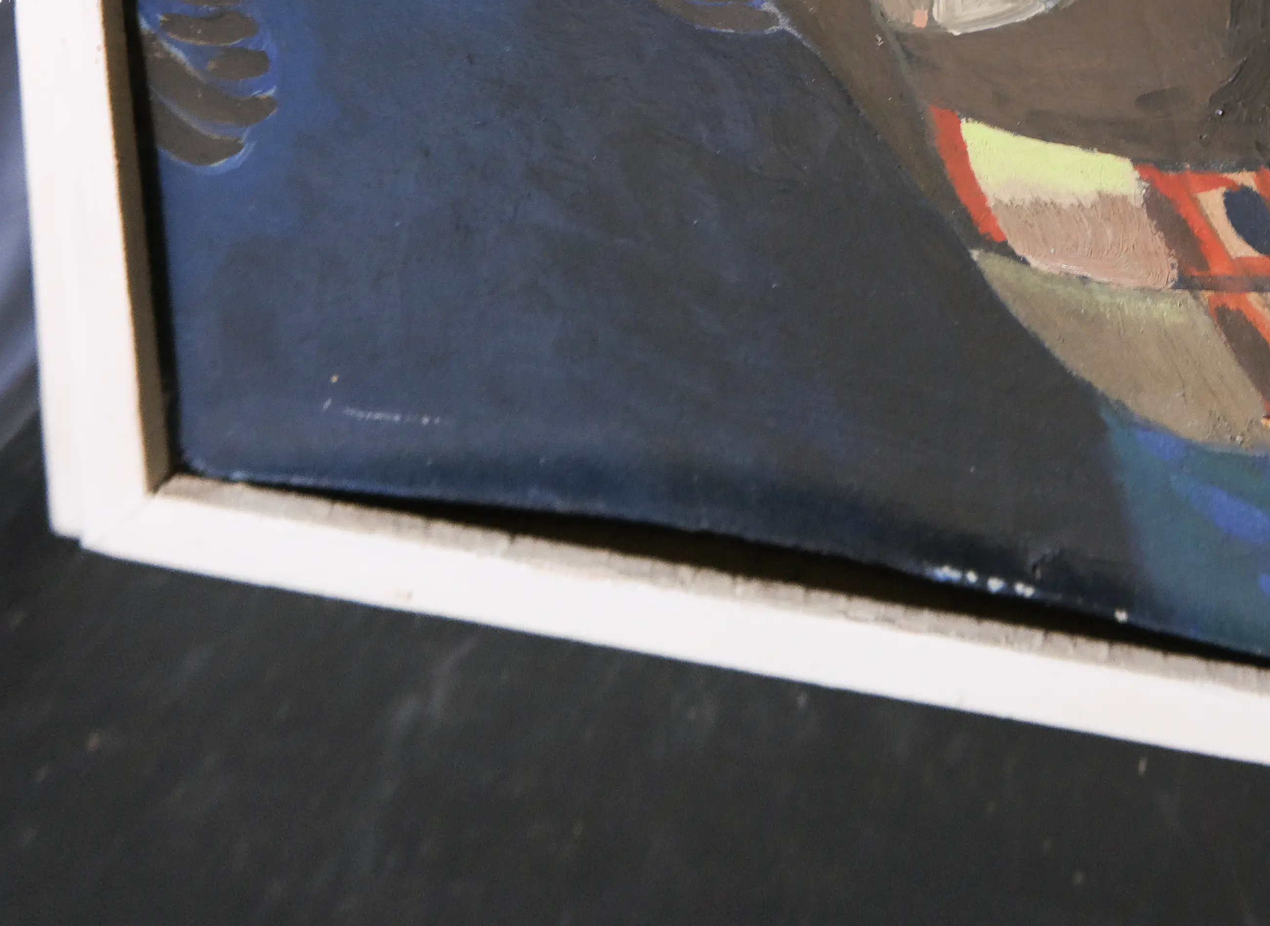 | Het werk heeft op enkele plekken wat oppervlakteschade in de vorm van gaatjes en deukjes, met name aan de rechterzijde en aan de onderzijde van het board. Daarnaast is het board wat kromgetrokken in de linker benedenhoek. | |