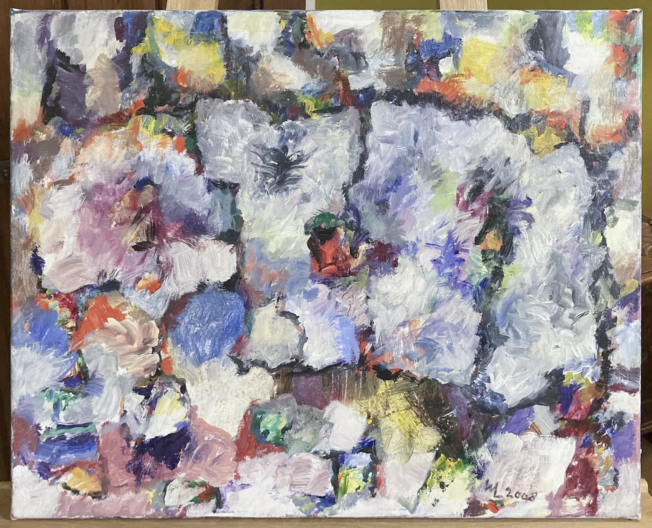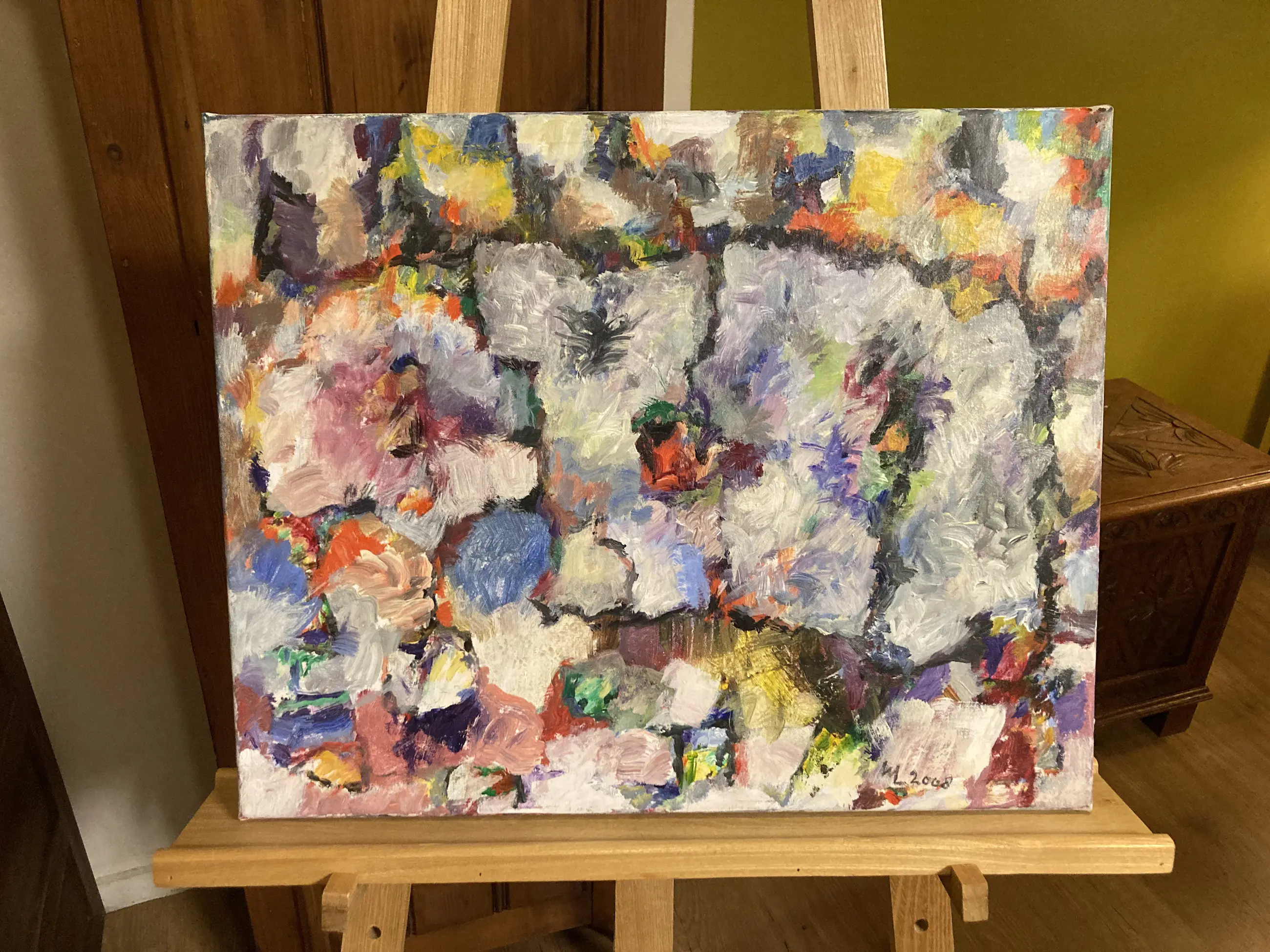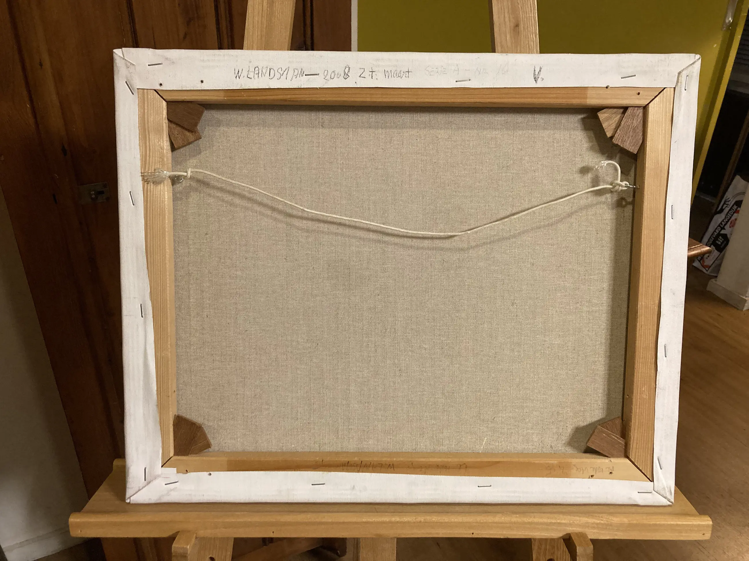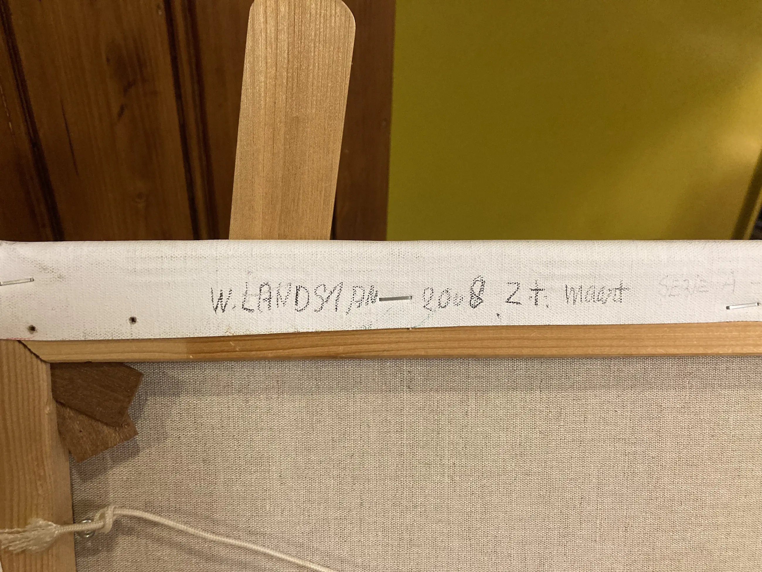 Klein schilderij door Wim Landsman uit 2008. Het betreft een abstracte, kleurrijke voorstelling gesigneerd rechtsonder. Ook achterzijde voorzien van naam, jaartal en serie nummer 16. Verkeert in zeer goede staat.