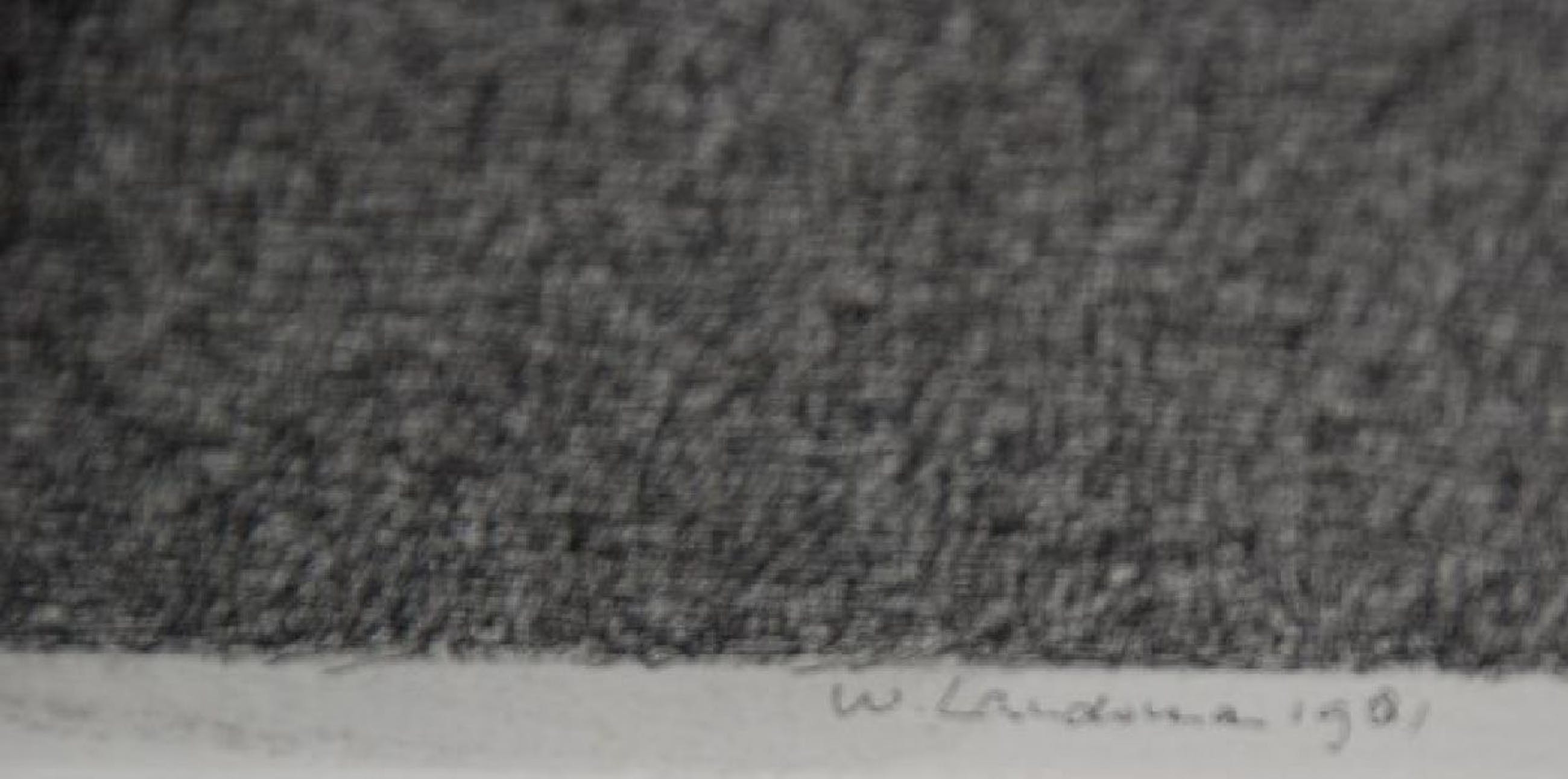 Hele mooie pentekening (inkt) van de Rotterdamse Kunstenaar Wim Landsman. Volledig opgebouwd uit kleine streepjes. In passepartout (eenvoudig te verwijderen eventueel).