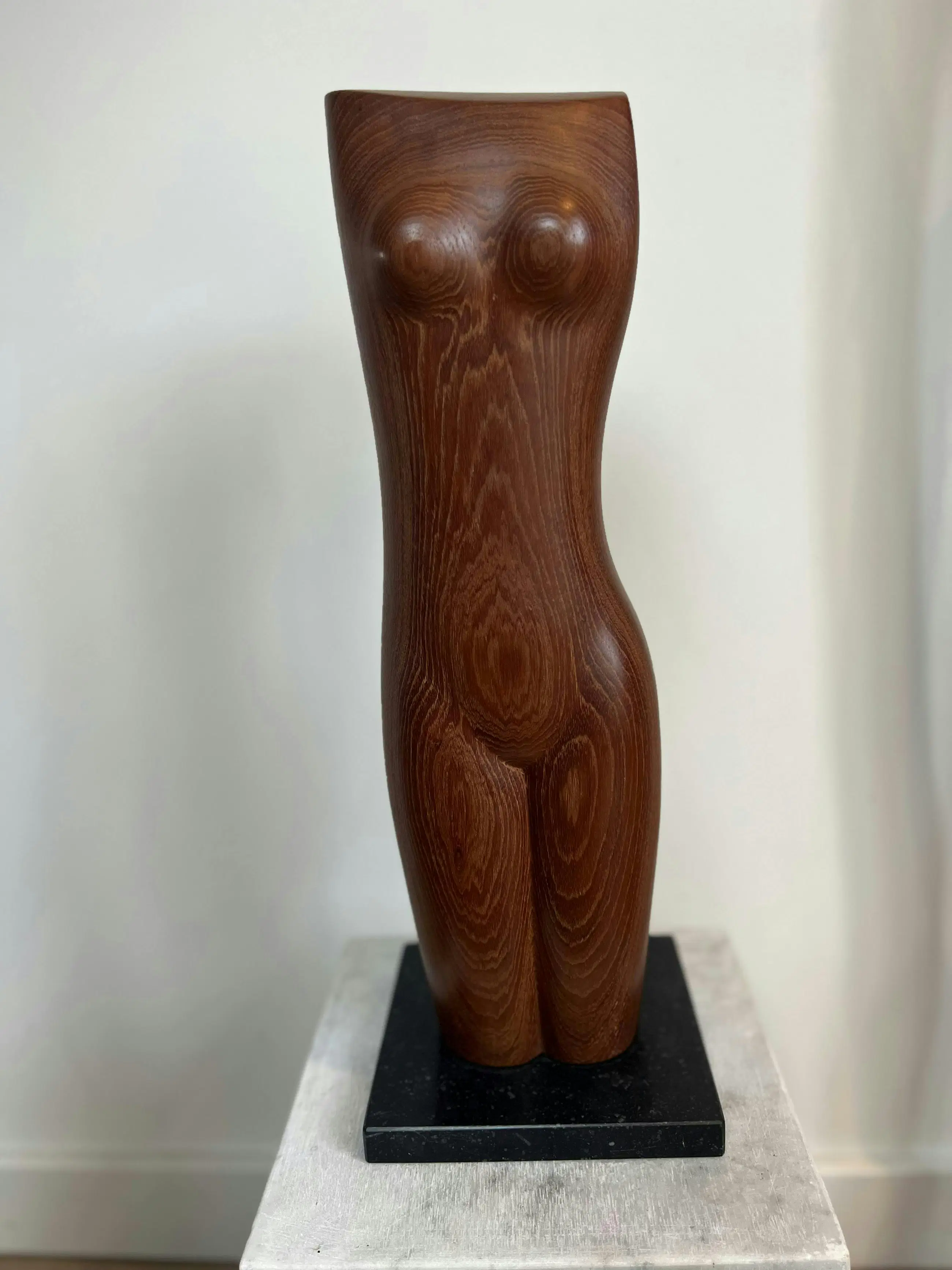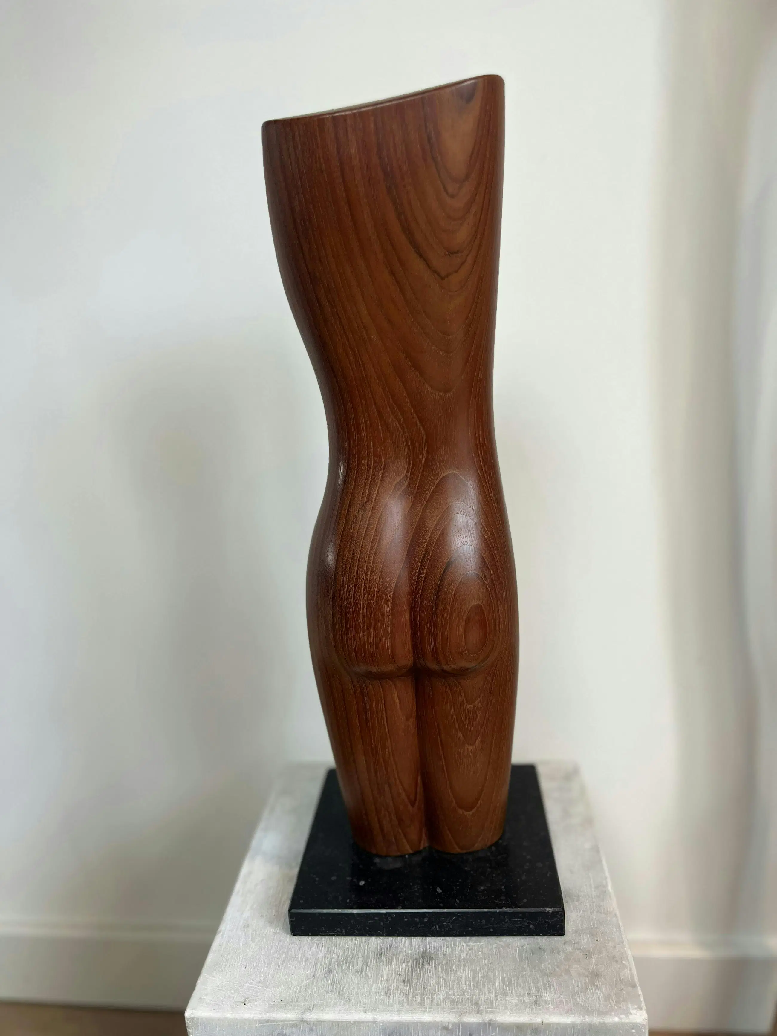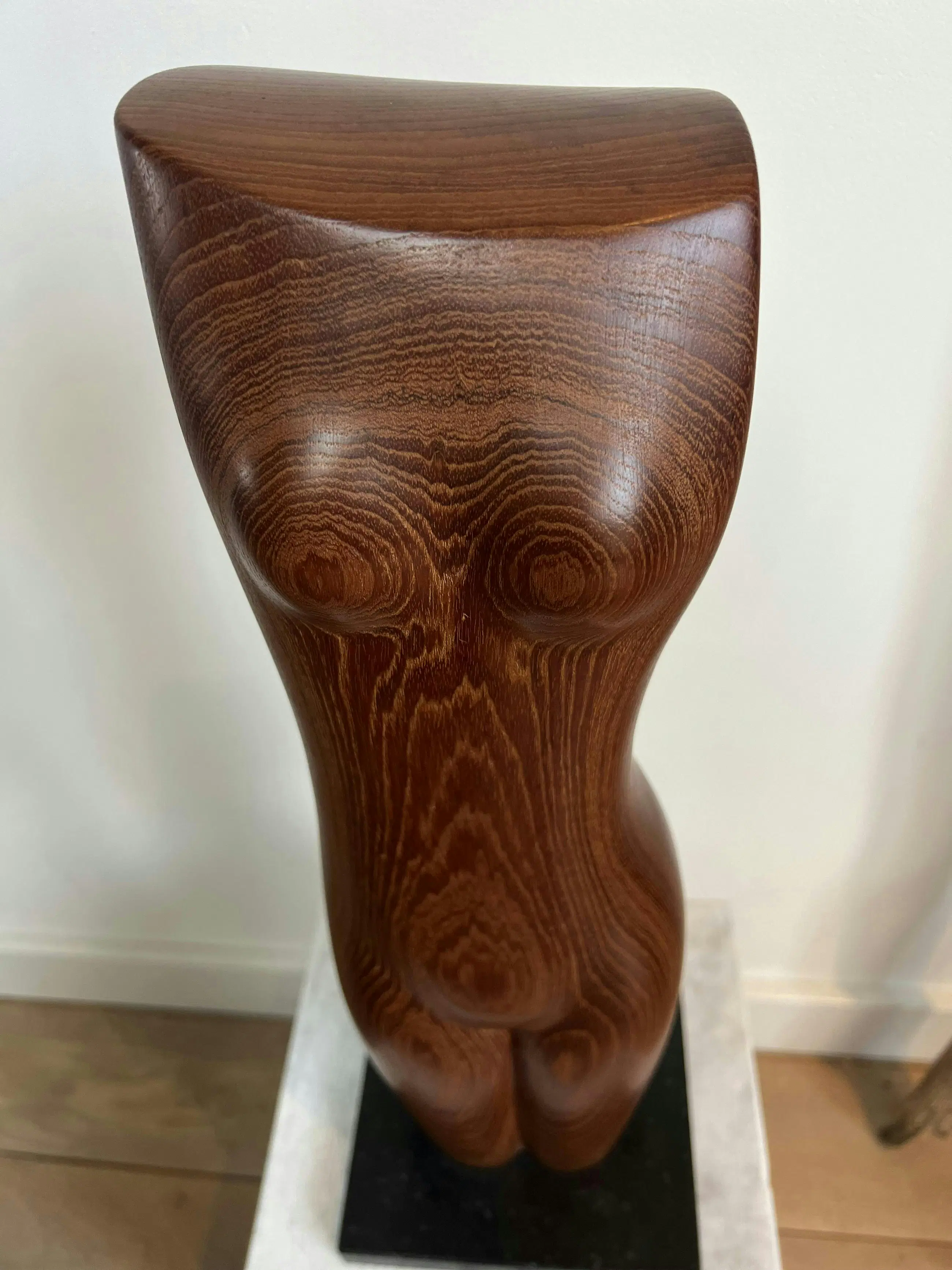 Tors uit Teakhout op hardstenen sokkel Kunstenaar Wim Mors Gewicht :4. 5 kg 46 x14x11 zonder sokkel