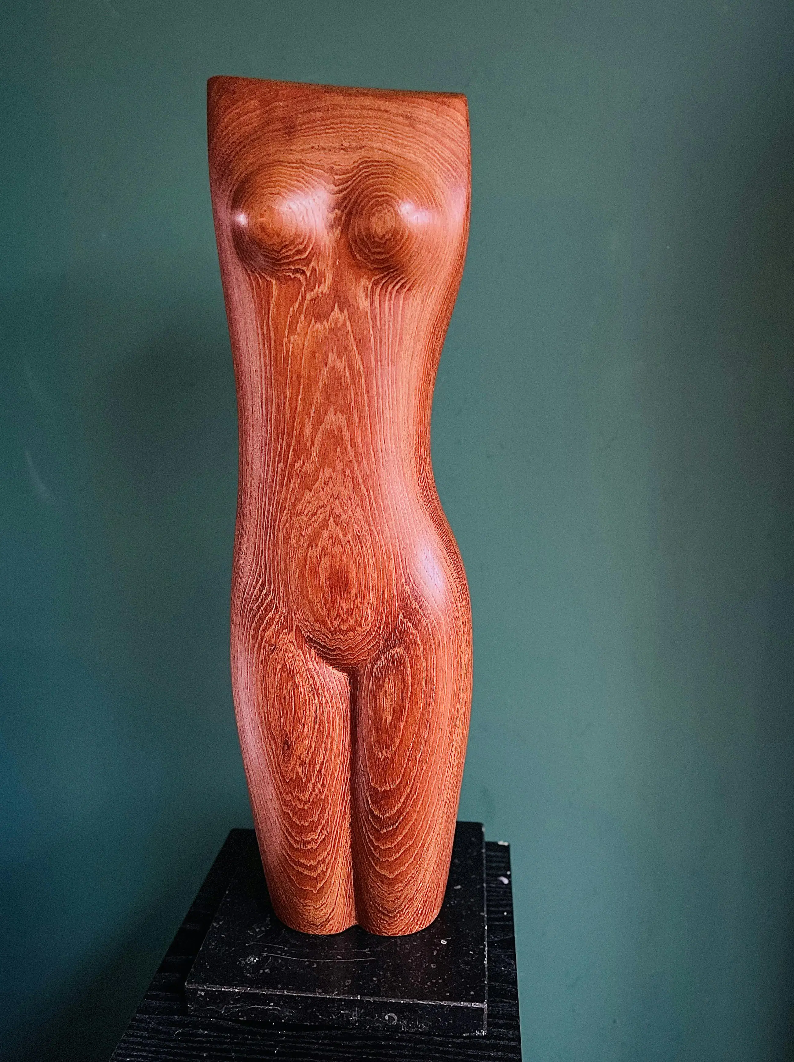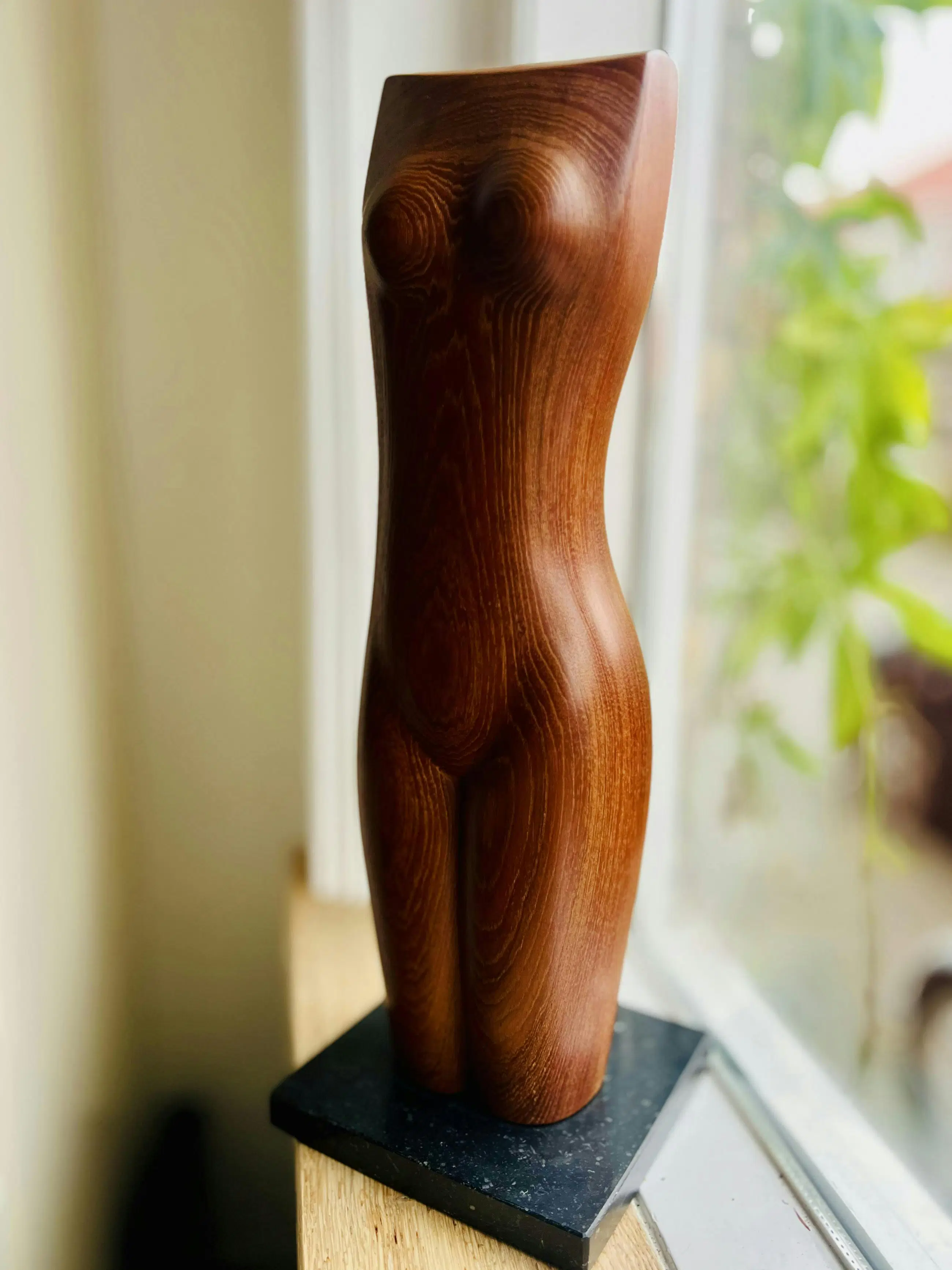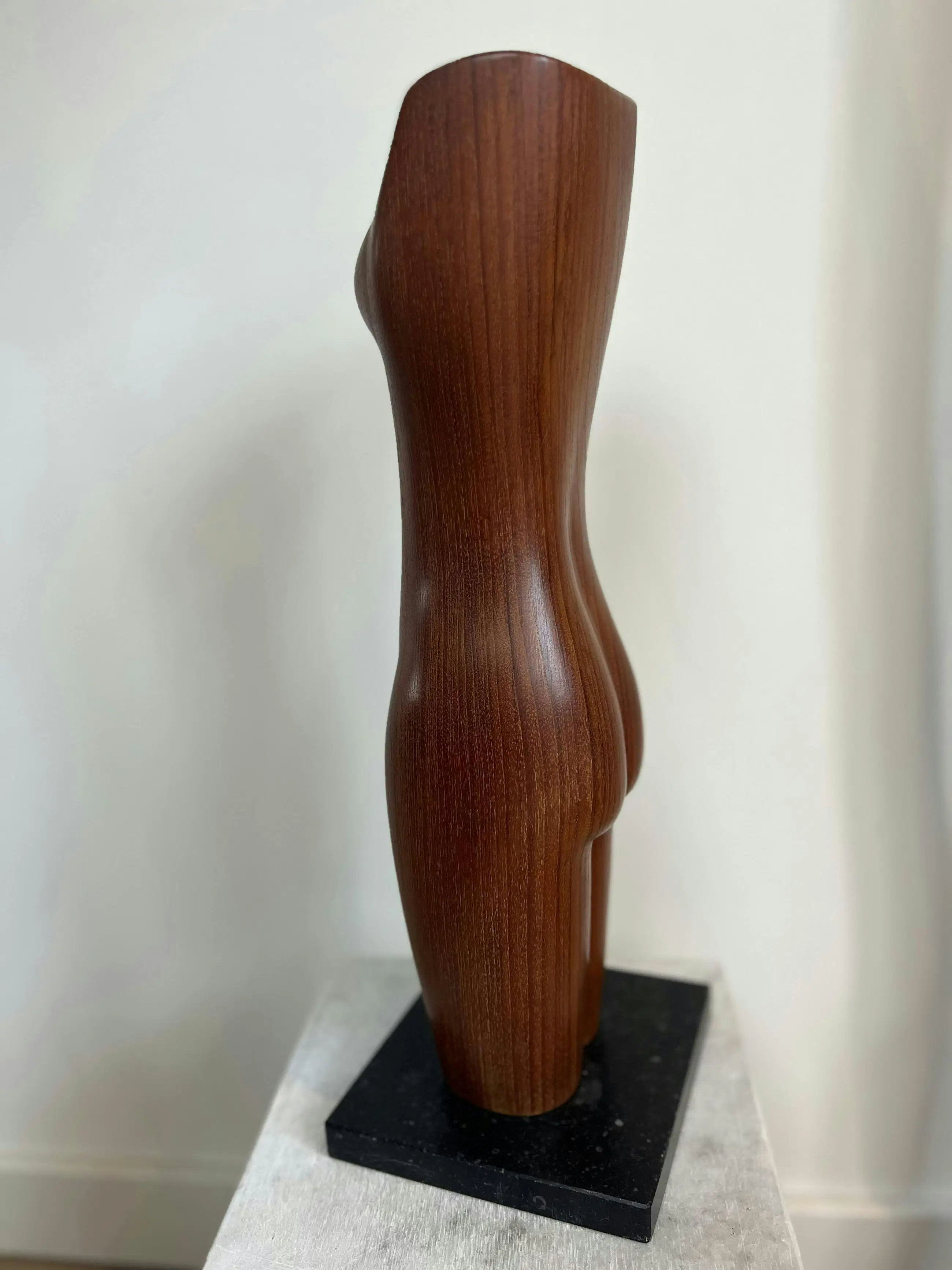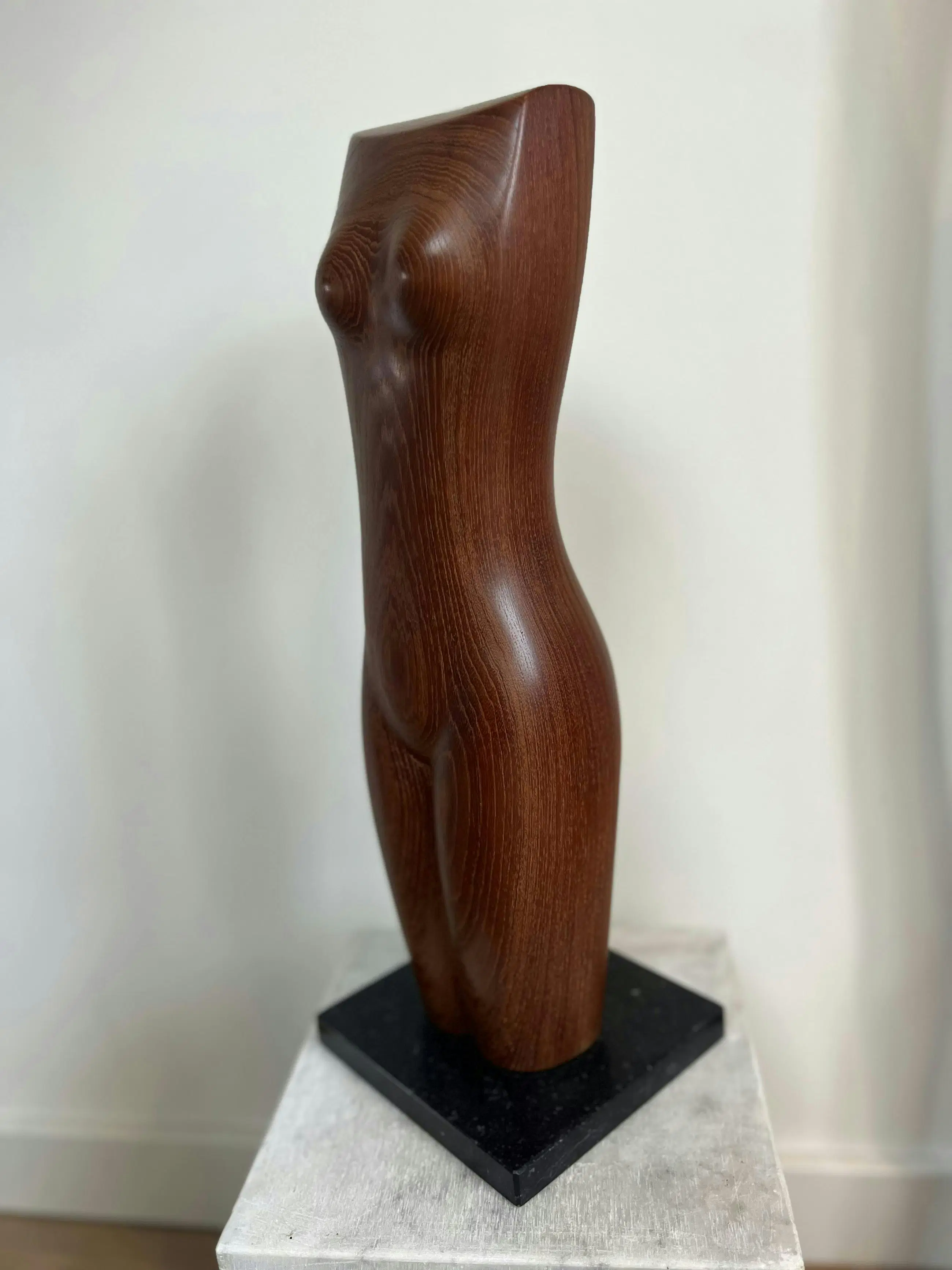 Tors uit Teakhout op hardstenen sokkel Kunstenaar Wim Mors Gewicht :4. 5 kg 46 x14x11 zonder sokkel