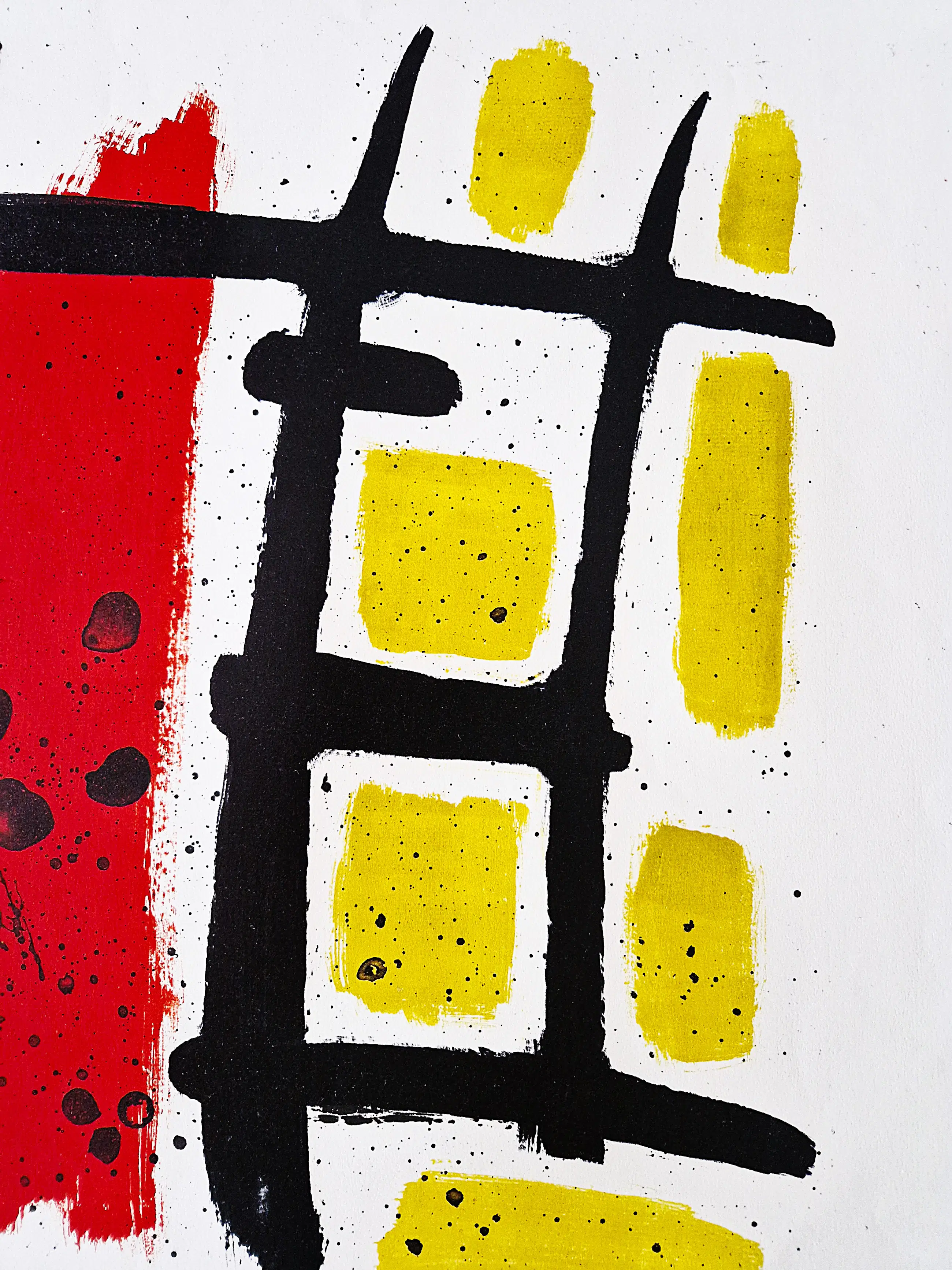 "Als ik schilder ben ik gelukkig." Wim Motz legde tijdens zijn leven een enorme productiviteit aan de dag. Zijn werkdrift leidde hem van het impressionisme naar het expressionisme, van pure abstractie weer terug naar de herkenbare werkelijkheid. Zijn opstandige aard laat zich verraden in zijn werkwijze. Wim Motz, naast schilder ook graficus, zette zijn onderwerpen vol dynamiek en hartstocht op het doek en papier.Pas op 37-jarige leeftijd begon Motz, geboren Rotterdammer, zijn loopbaan als kunstenaar. Hij volgde tekenlessen bij Jan van Straten. In Motz trof Van Straten een dankbare leerling, die een enorme inhaalslag probeerde te maken. Zijn opleiding bestond tot dan toe alleen uit de lagere school. Daarna volgden ettelijke banen. "Ik werkte in een tuinderij, als kermisreiziger, maar ook in de mijnen van Belgi. Ik stond als koopman op de markt en ging later behangen en schilderen." Zijn nimmer aflatende drang om zich te uiten in de beeldende kunst, leidde hem naar een nieuw bestaan, dat van kunstenaar. En niet zonder succes. Hij exposeerde in Amerika, Canada, Itali, Zwitserland, Oostenrijk, Belgi_ en Nederland.Van Straten leerde hem wat beeldende kunst is. "Ik dacht eerst dat het om naschilderen ging, maar bij hem leerde ik dat je het zelf moet ondergaan.''Aanvankelijk schilderde Motz niet natuurgetrouwe, maar toch makkelijk herkenbare voorstellingen, zoals haven- en industriegezichten. Hij maakte vier jaar lang (1954-1958) onderdeel uit van de groep ?De vier Rotterdammers'. Van het figuratieve en direct-herkenbare stapte hij vervolgens over op totale abstractie. Als lid van de ?Ara-groep', maakte hij zich de techniek van de lithografie eigen. Naast kleurenlitho's maakte hij ook zwart-witte steendrukken. De techniek van linoleumsneden beheerste hij al.Door het loslaten van de figuratie kon Motz zich geheel storten op lijn en kleur, de grondbeginselen van de kunst. Hij ontkiemde zich tot een ware emotionalist. Met veel hartstocht, op een driftige wijze, zette hij zijn onderwerpen op doek en papier neer. Voor zijn schilderijen gebruikte hij een metseltechniek. Net als zijn grote voorbeeld De Sta_l bracht hij de verf met een spatel op het doek aan. ?Schilder van de kleur', werd hij ook wel genoemd.Hoewel Motz tot het abstracte genre gerekend kan worden, vormden toch de indrukken van het landschap, in het bijzonder het waterlandschap, de havens en de rivier de bron van zijn inspiratie. Halverwege de jaren zestig maakte hij binnen zijn werk weer plaats voor de figuratie. "Ik heb weer verlangen naar herkenbare vormen gekregen (....) Ik wil tegemoet komen aan de beschouwer."
