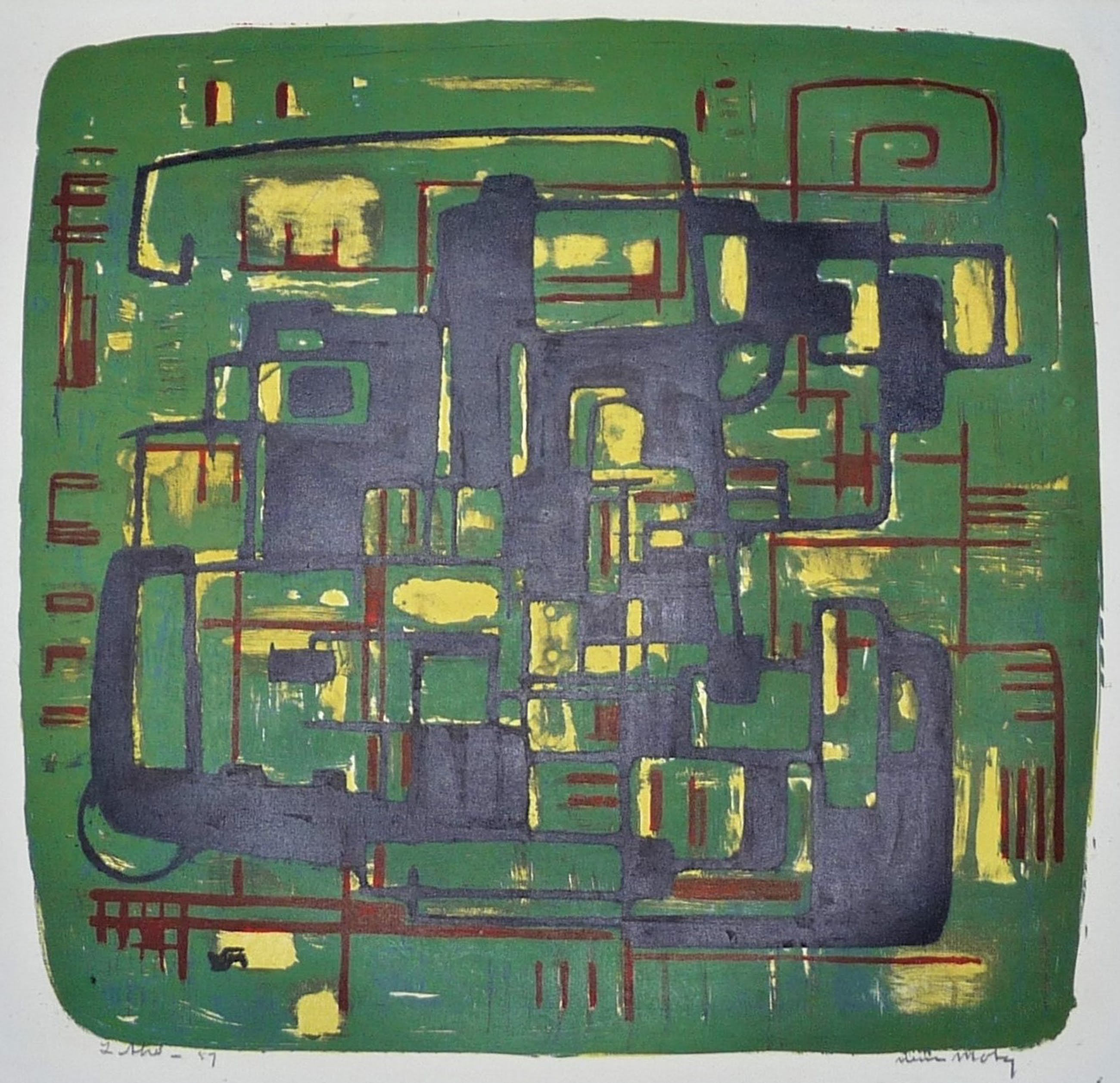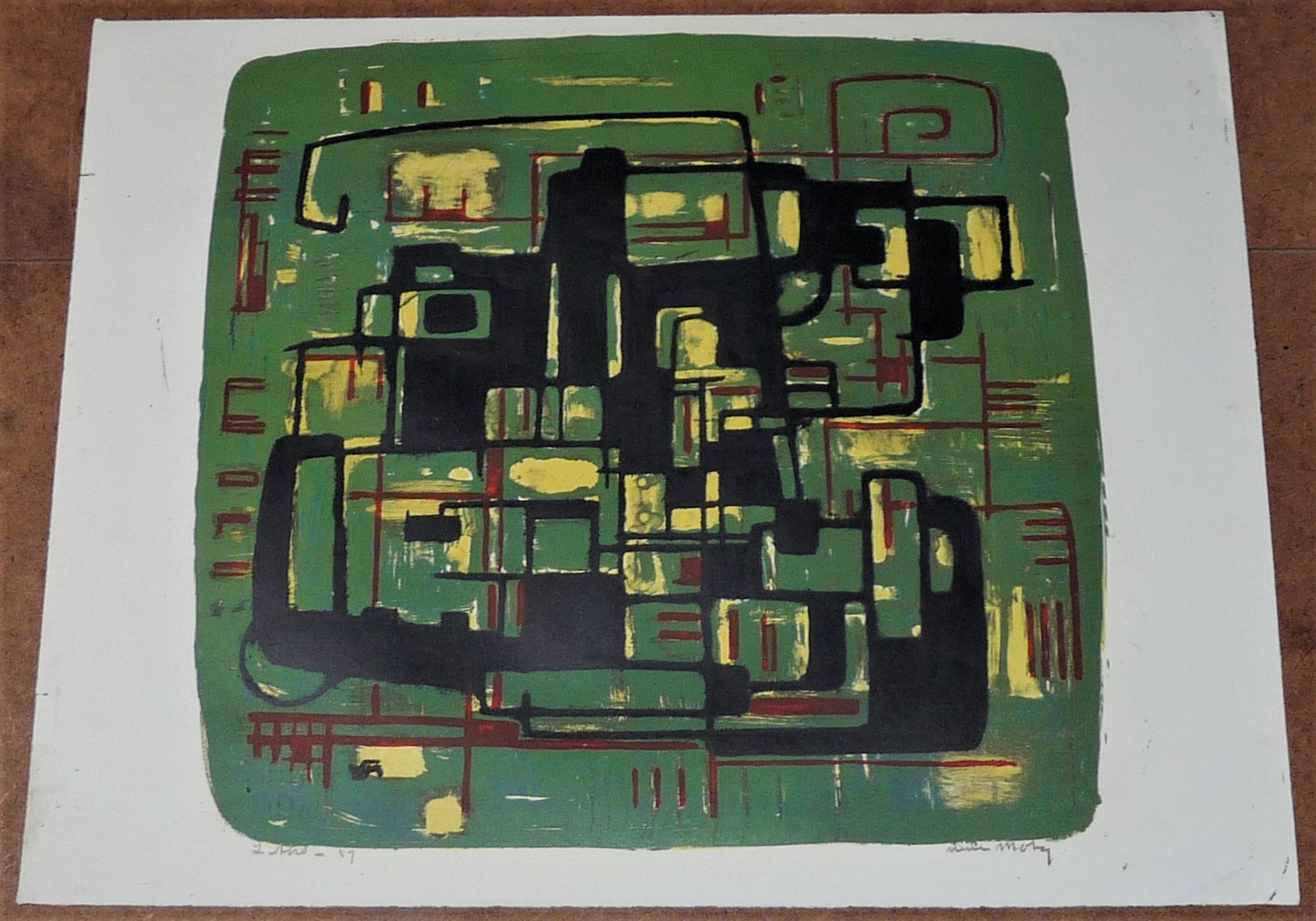 *Kleurig abstract werk van de bekende Rotterdamse kunstenaar Wim Motz. *L.o.in potlood: Litho - 57. R.o. in potlood gesigneerd: Wim Motz *Deze prent komt uit een reeks werken uit nalatenschap van de kunstenaar. Authenticiteit wordt volledig gegarandeerd.
