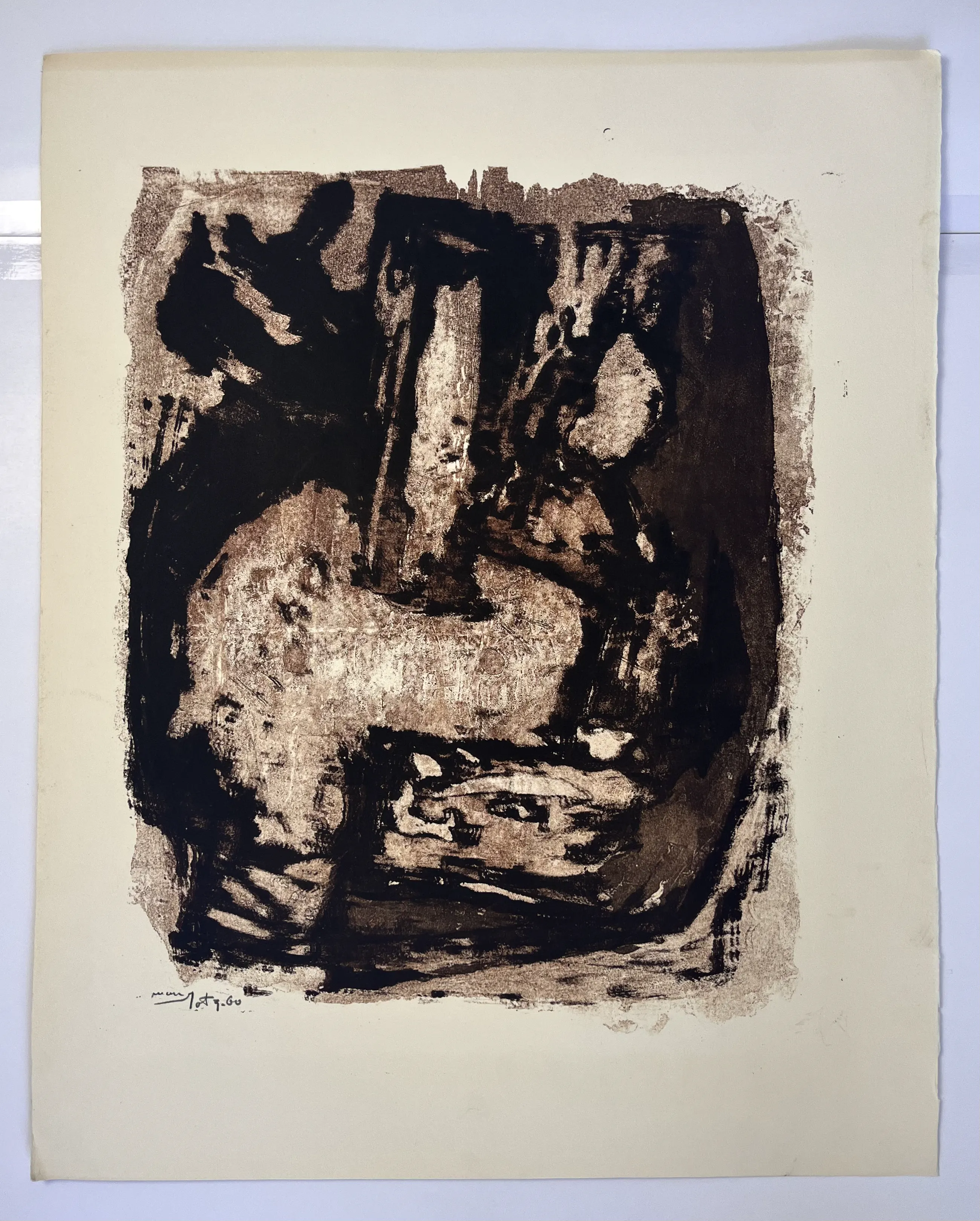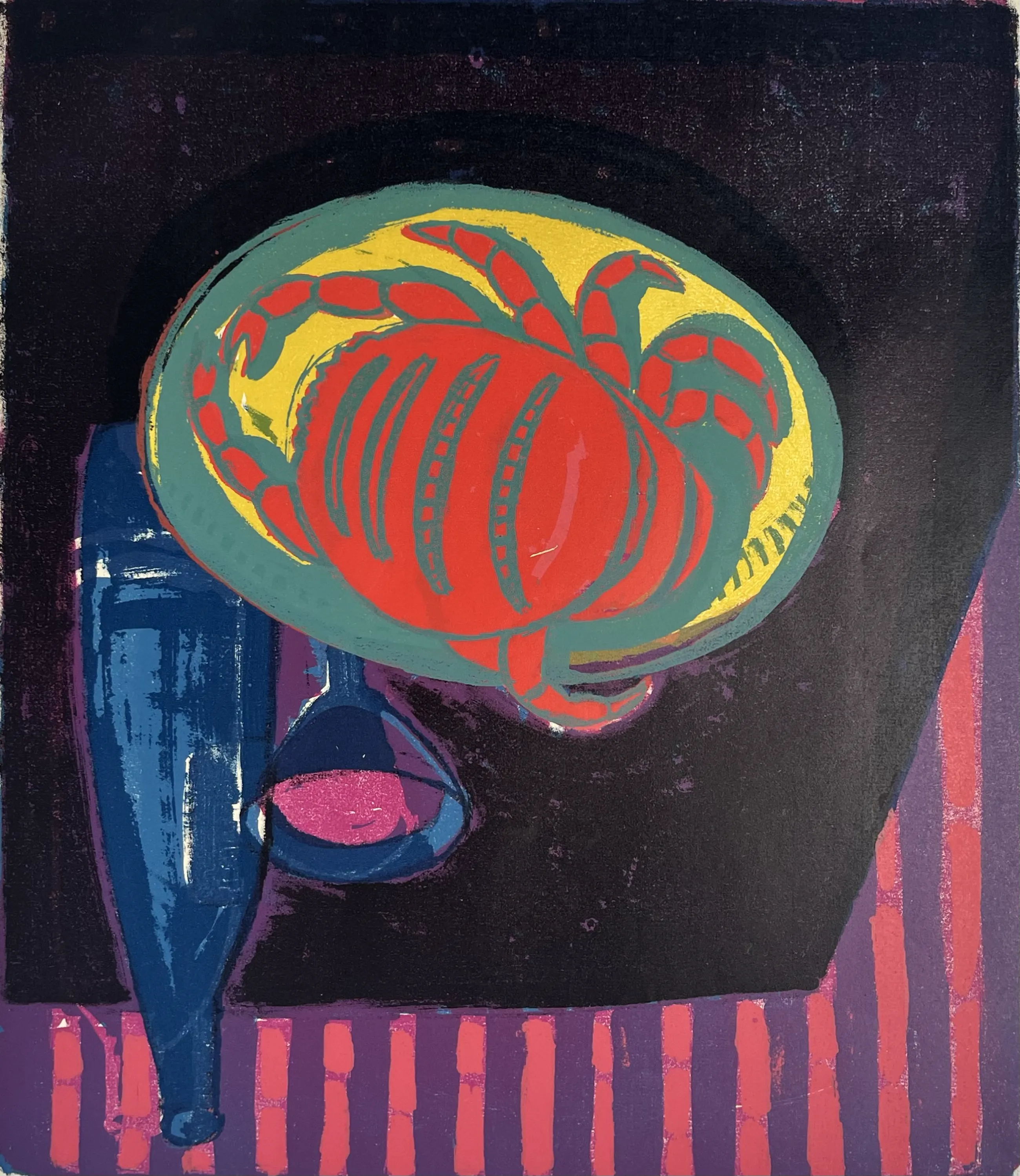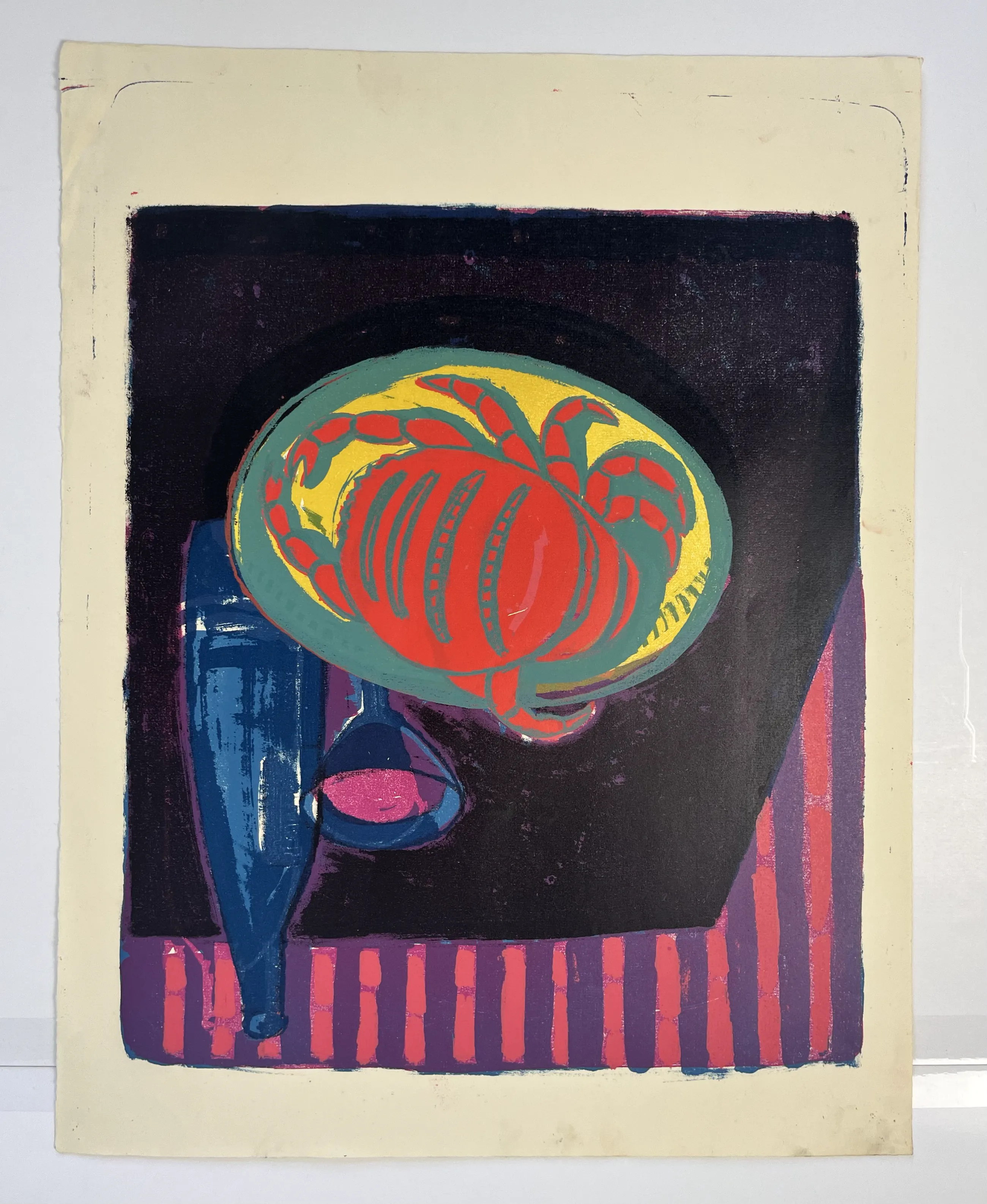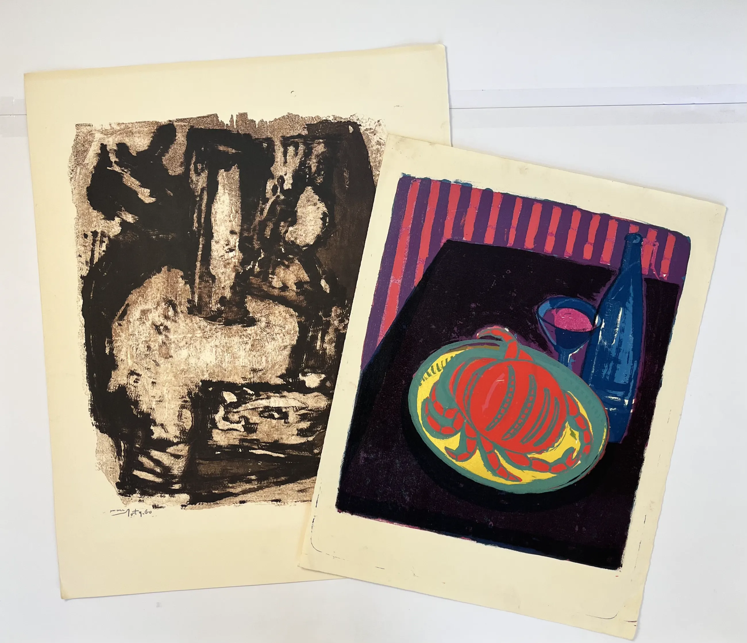 Mooie litho van Motz, gesigneerd en een stilleven met fruitschaal niet gesigneerd. Uit de collectie van Motz.