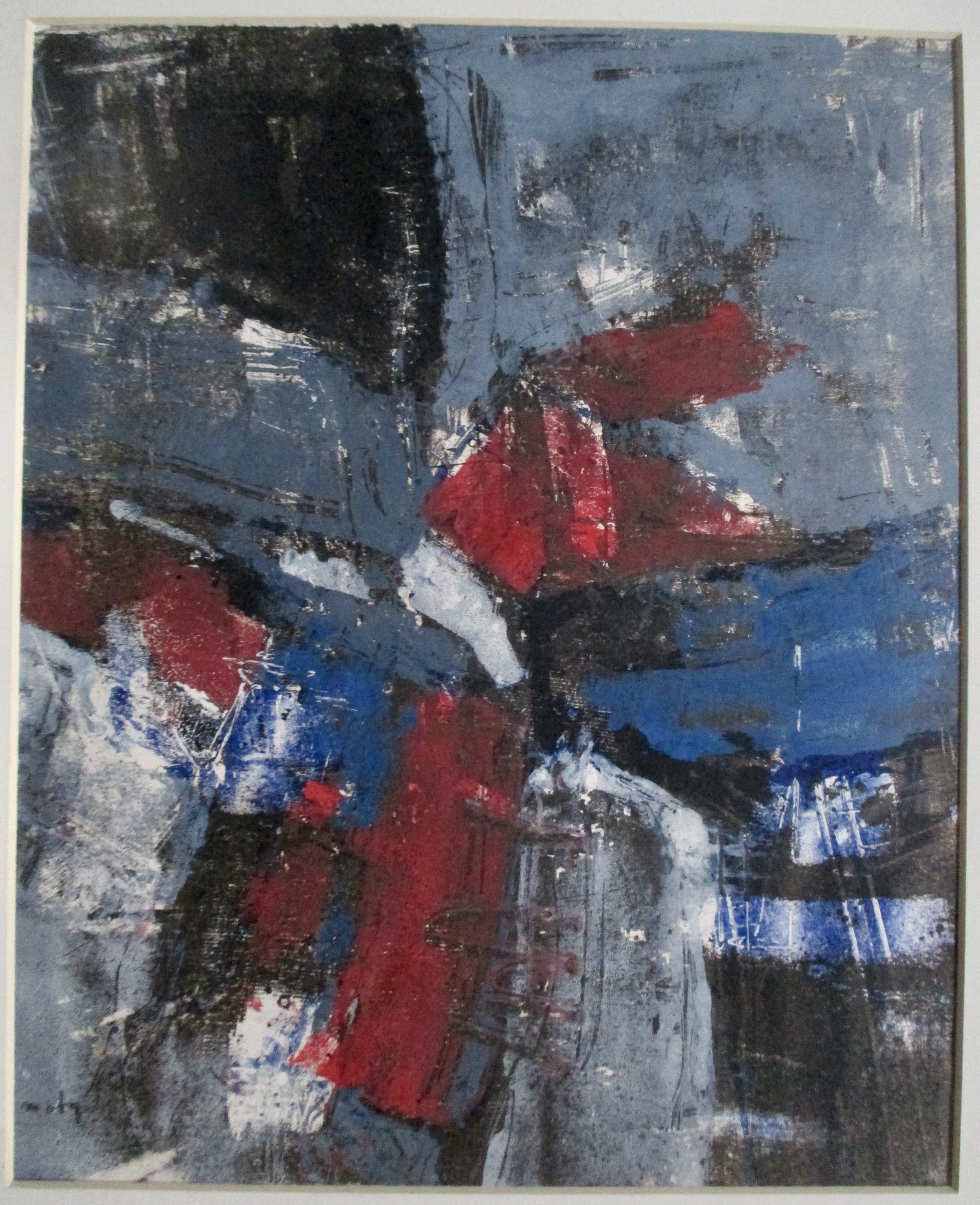 Monotype van Wim Motz, l.o gesigneerd in potlood. Geplaatst (bovenaan getipt) in passe-partout.