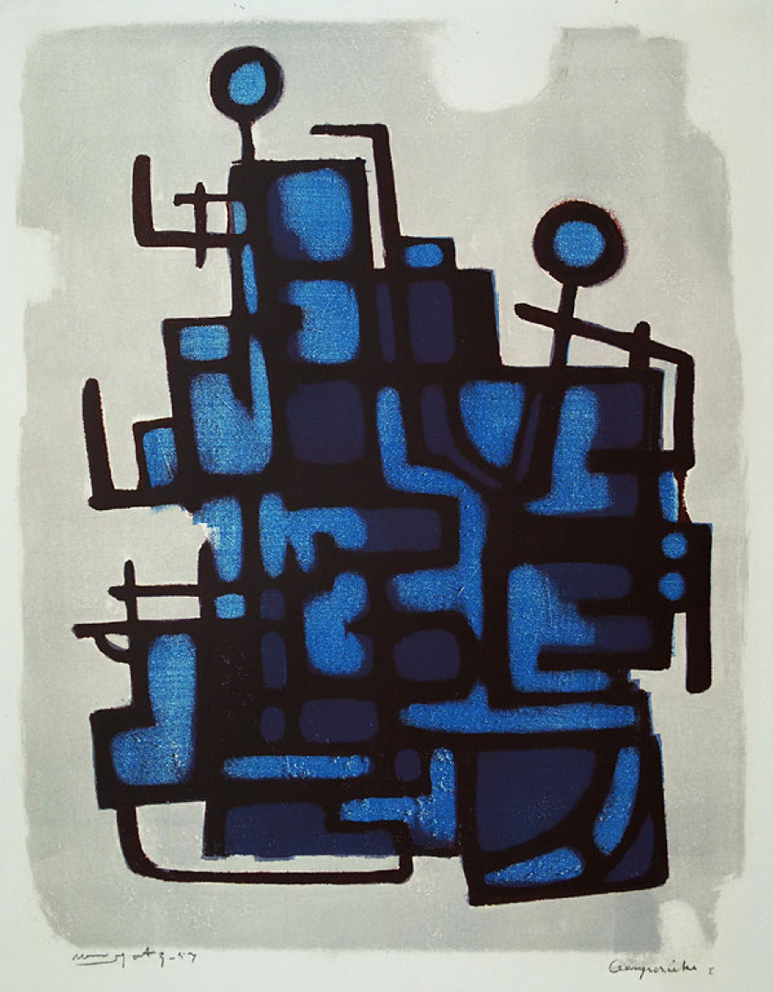 Beeldschoon werk van Wim Motz. Litho op geschept papier, met potlood gesigneerd, getiteld en gedateerd (‘57). Afkomstig uit de kunstcollectie van ABNAMRO, in zeer goede conditie. Beeld is uitstekend maar het werk heeft ingelijst gezeten want aan de achterkant van het blad zitten taperesten en er is een nauwelijk waarneembare verkleuring van het blad binnen een voormalig passe-partout. Ingelijst met nieuw passe-partout is het werk perfect.