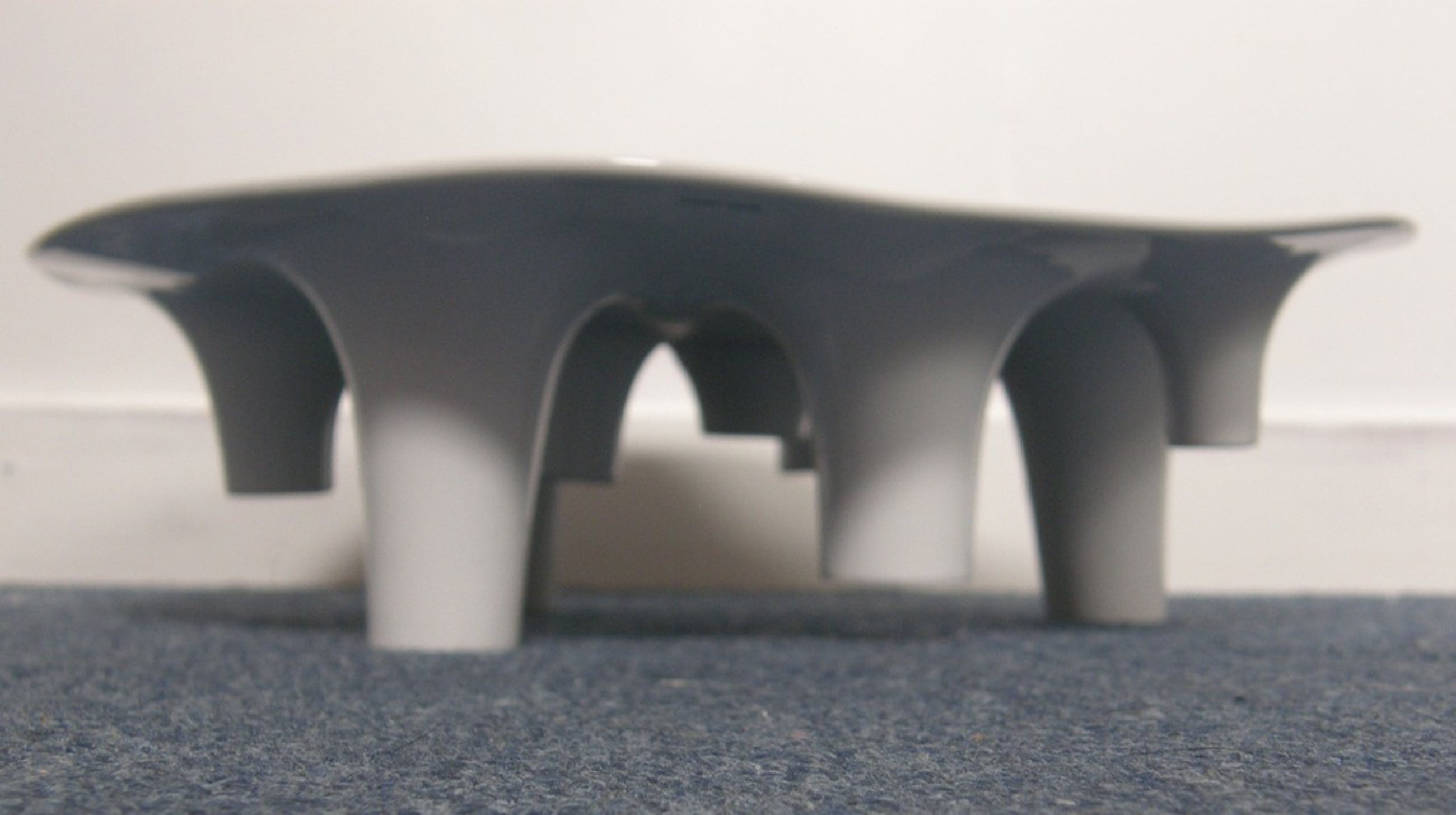 Multifunctionele fruitschaal/kandelaar van Wim Noyons. De ene zijde is een fruitschaal, de andere een kandelaar.