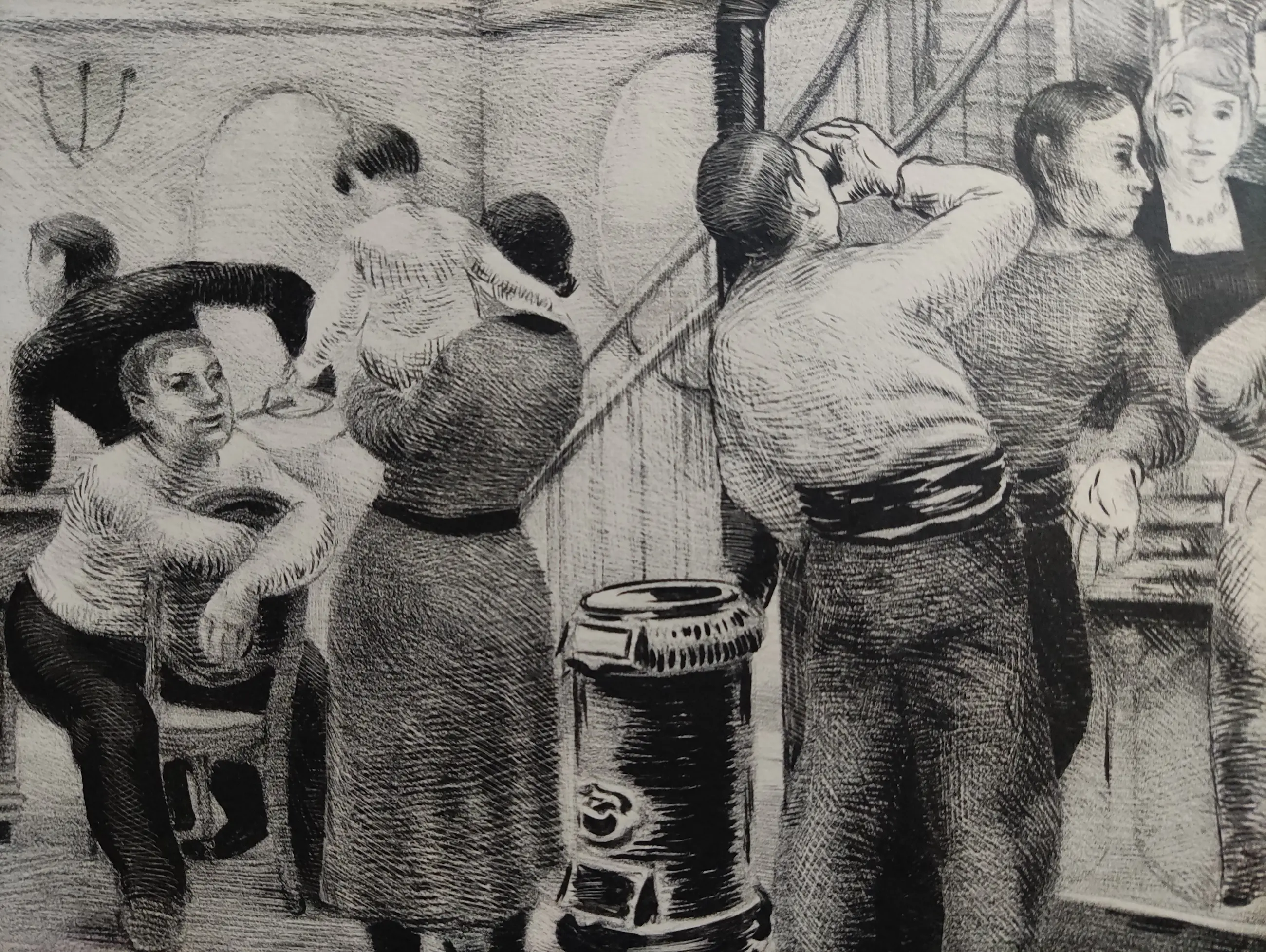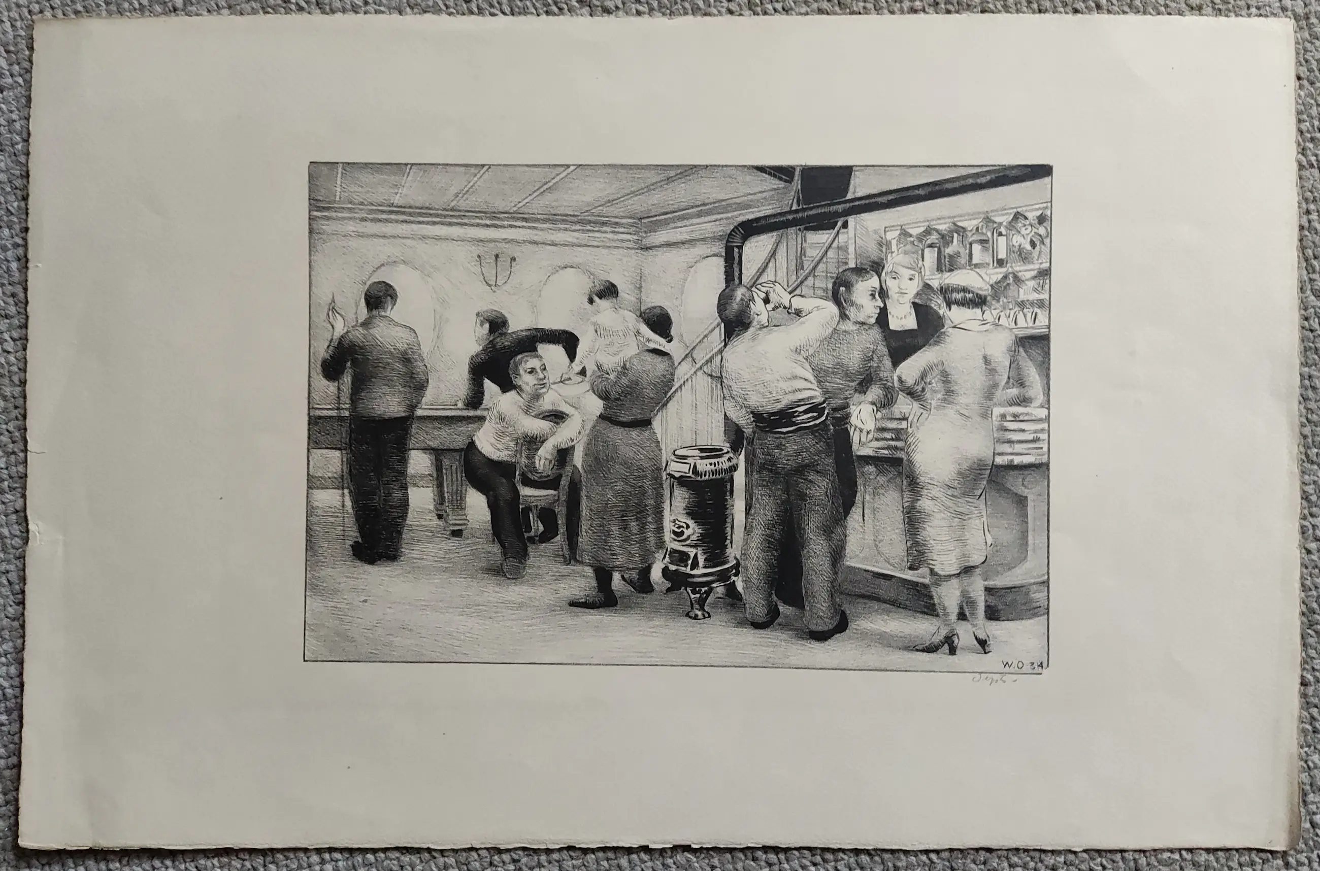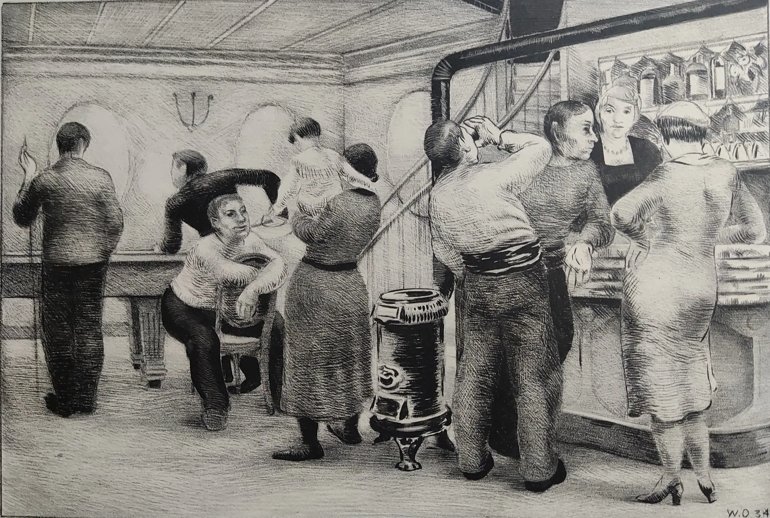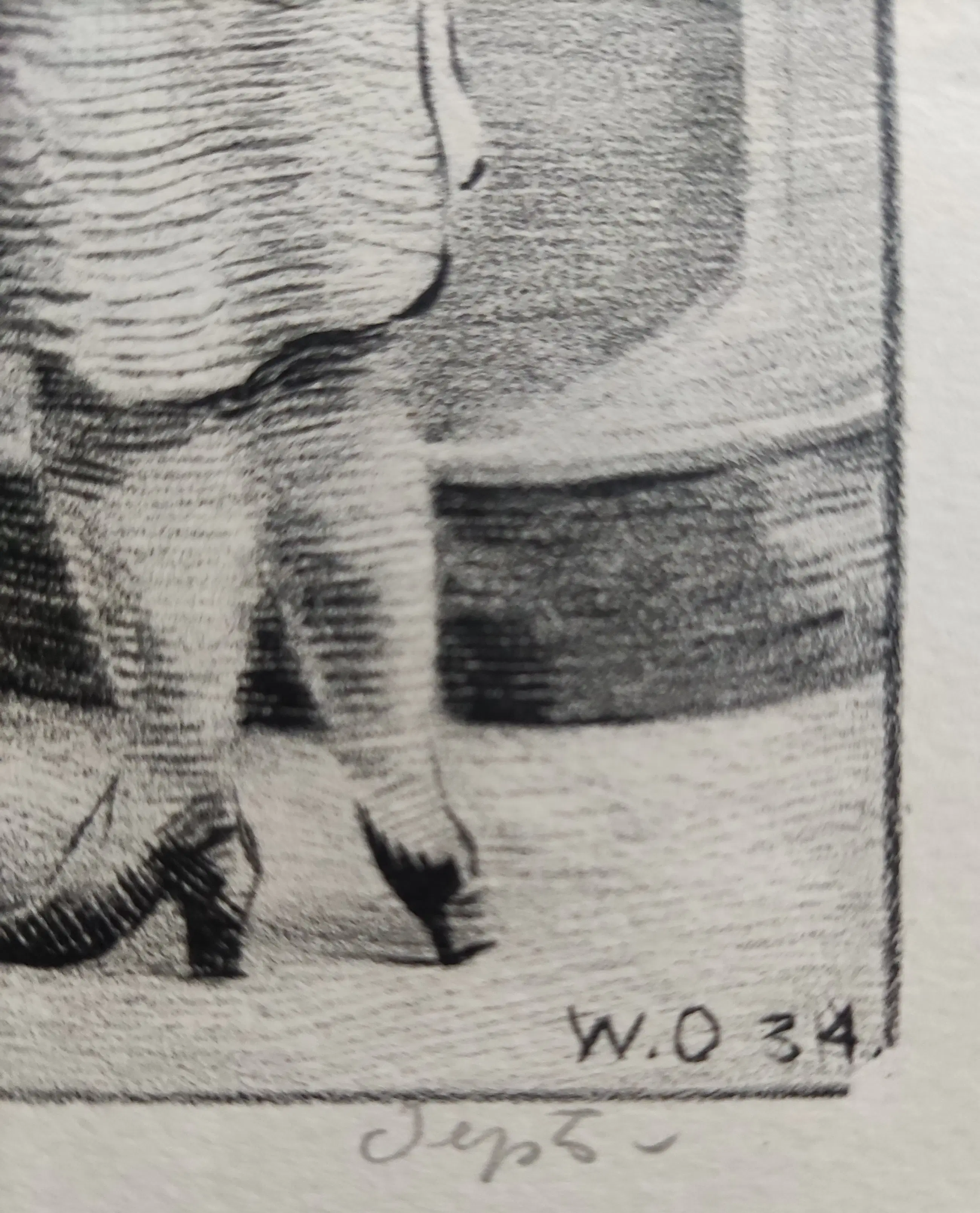 Potlood gesigneerd rechtsonder. Monogram en 34 in de steen rechtsonder. Beeldmaat 19,8x29,5 cm. Bladmaat 33x50 cm. Losbladig. Willem Anthonie (Wim) Oepts werd geboren te Amsterdam op 22 december 1904 en overleed te Parijs op 22 maart 1988. Opleiding aan de Académie Libre te Parijs van 1934-1936. Verder autodidact. Beeldhouwer, graficus, schilder en tekenaar. Lid van De Socialistischen Kunstenaarskring en De Groep te Haarlem.