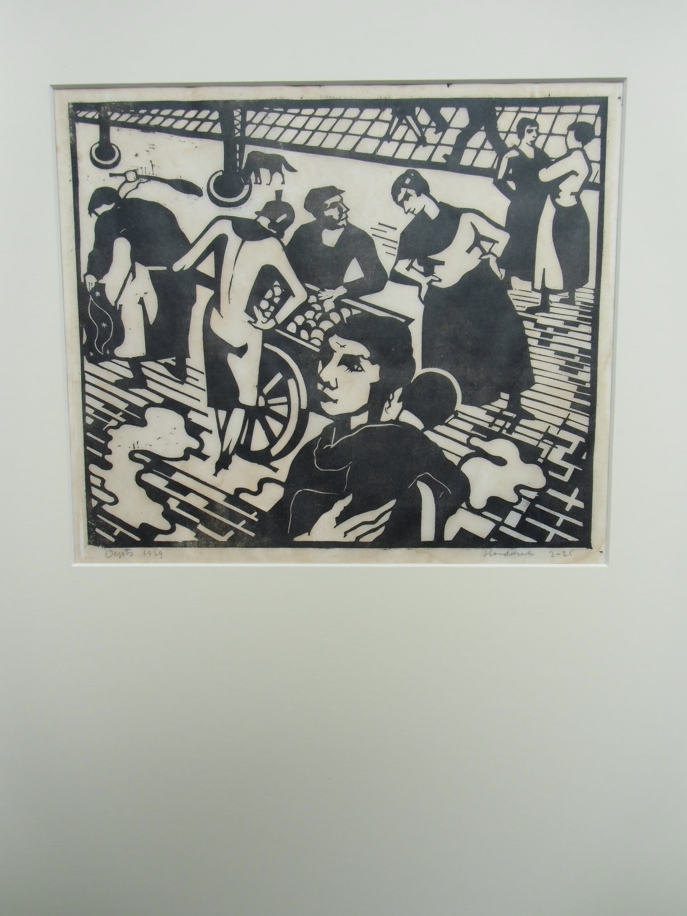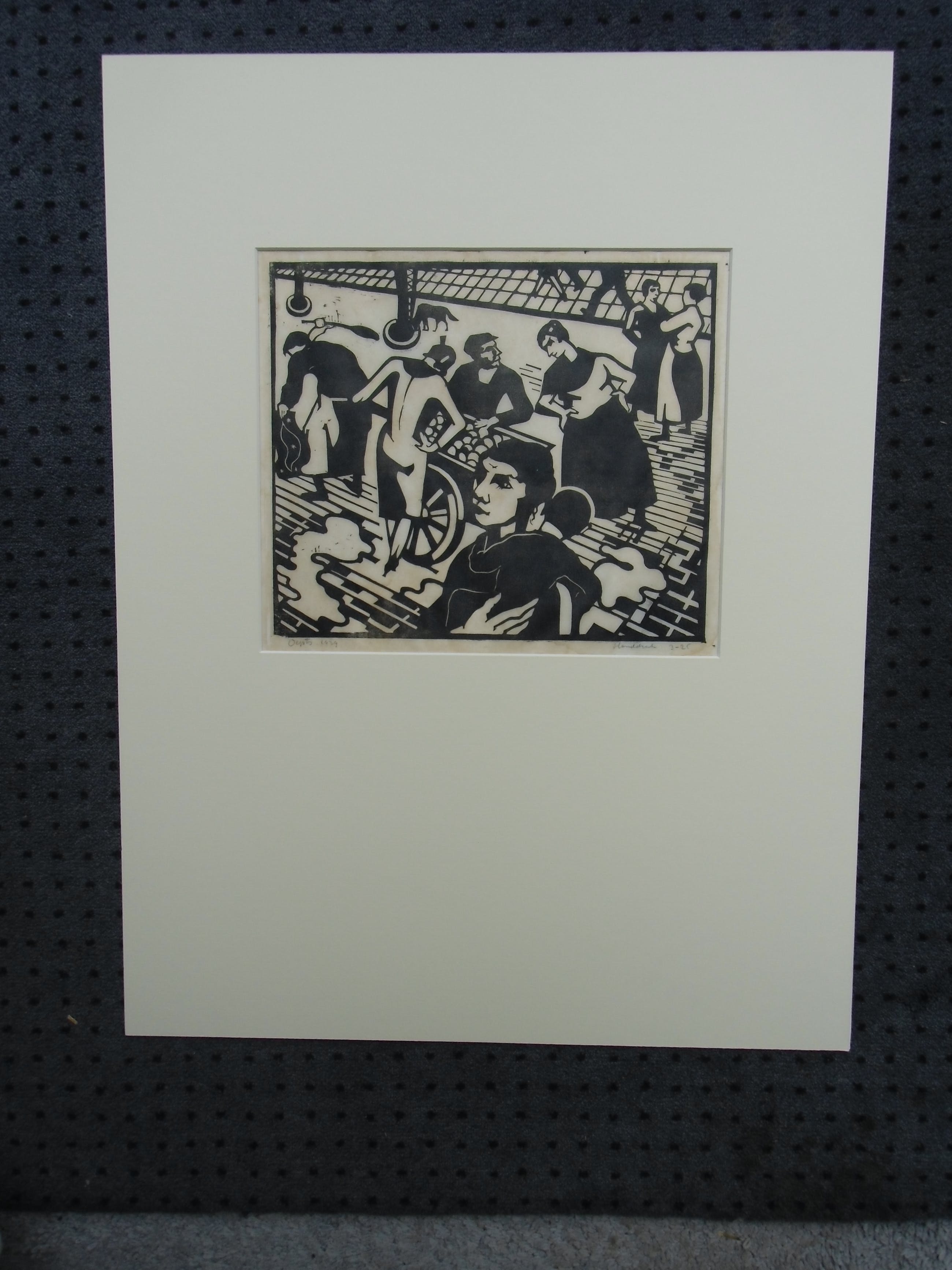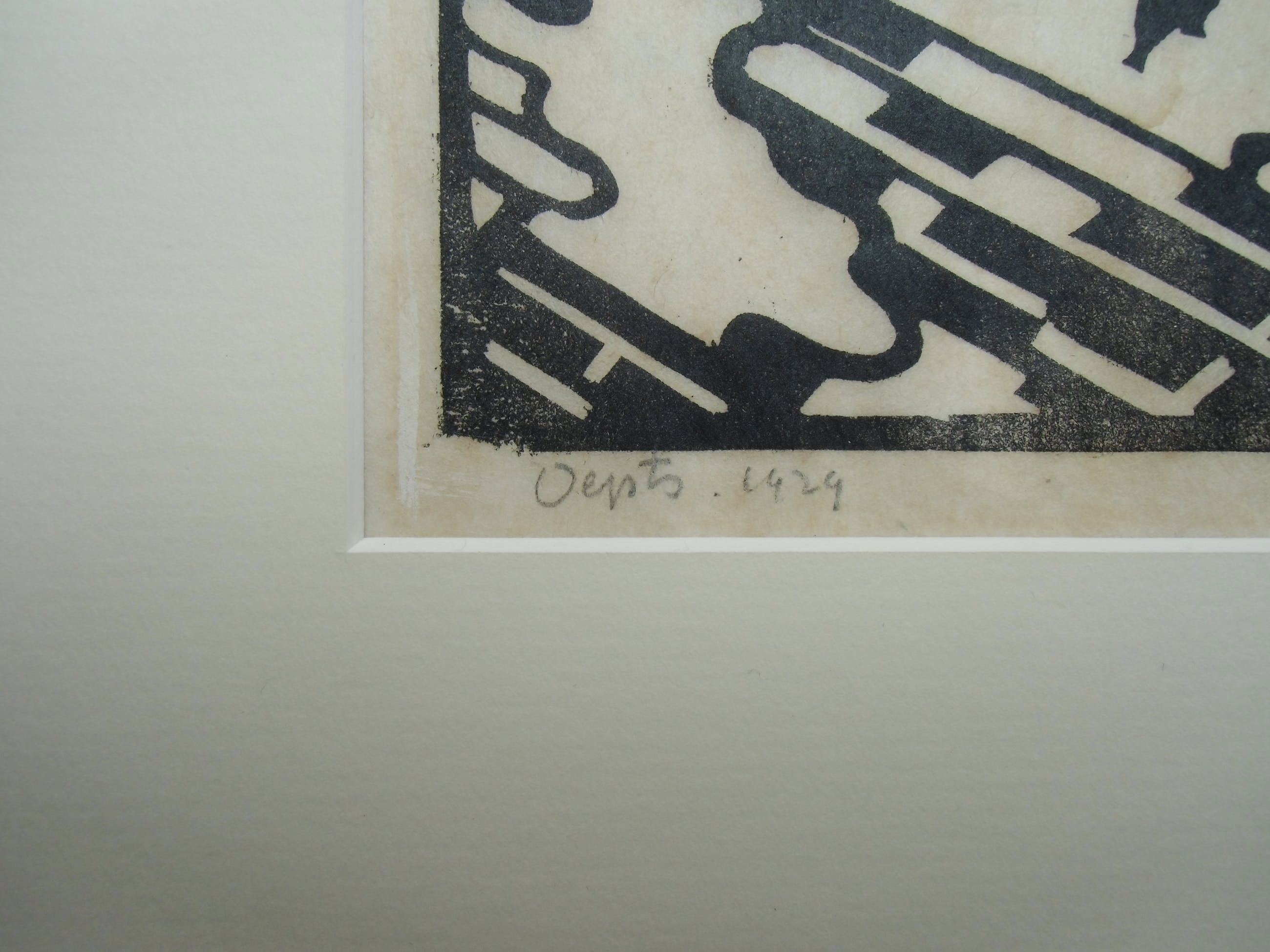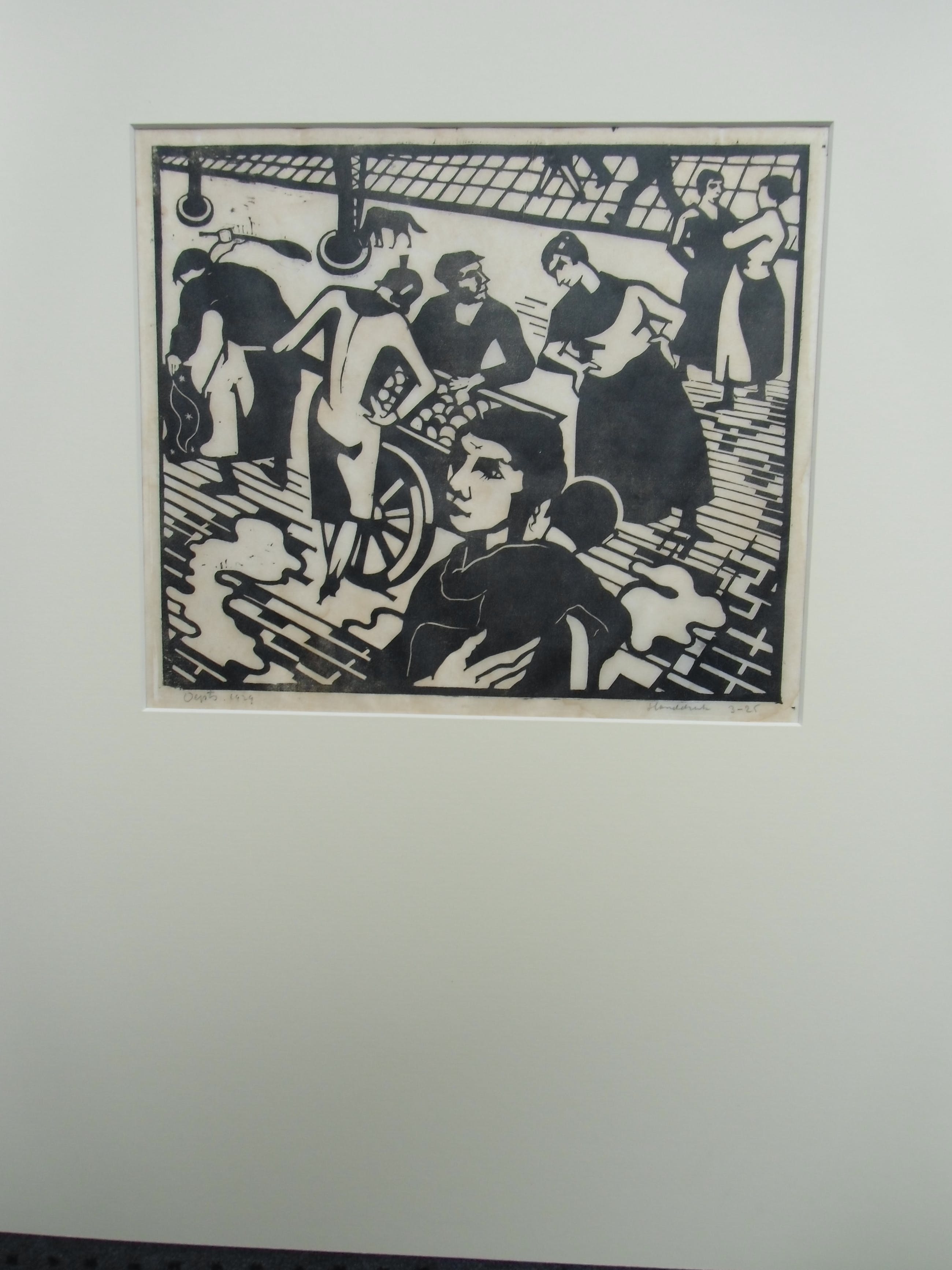 Zeldzame houtsnede uit 1929 van Wim Oepts. Ondanks enige lichte bruining en smalle marges over het geheel genomen een prent in goede conditie en in kleine oplage gedrukt. Handdruk.