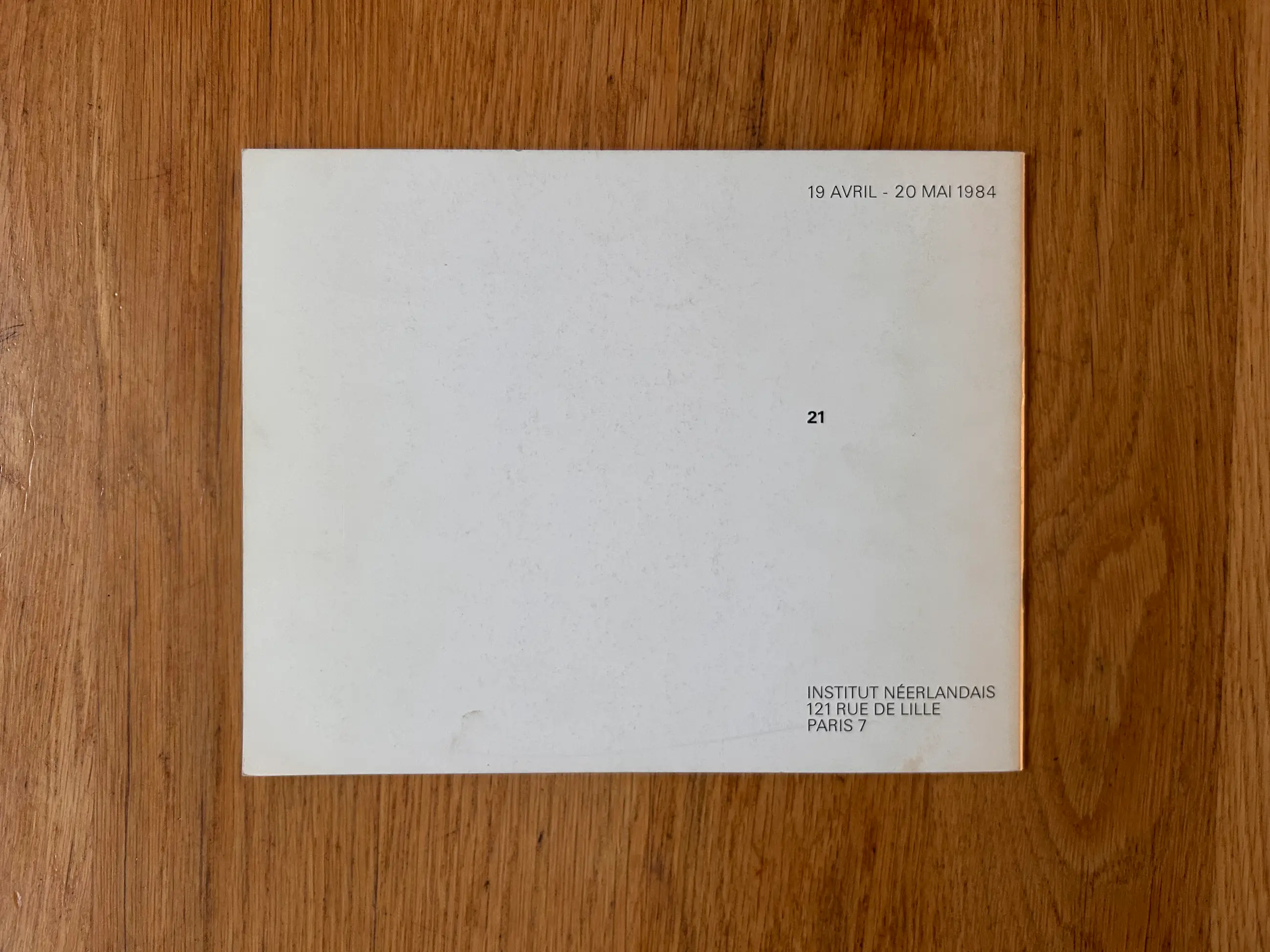 Tentoonstellingscatalogus van de expositie gewijd aan het werk van Wim Oepts, gehouden van 19 april tot 20 mei 1984 in het Institut Néerlandais, 121 Rue de Lille, Parijs.
