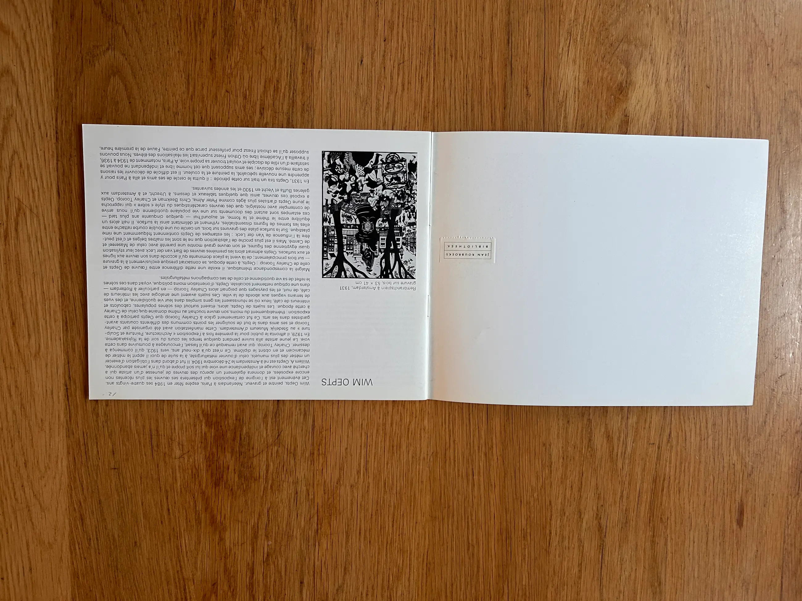 De Franstalige uitgave presenteert schilderijen en grafiek (tableaux, gravures) en bevat een korte inleiding gevolgd door diverse illustraties van het tentoongestelde werk. De publicatie documenteert Oepts’ presentatie in een internationale context en vormt een interessant verzamelobject voor liefhebbers van naoorlogse Nederlandse kunst. Softcover, liggend (landscape) formaat.