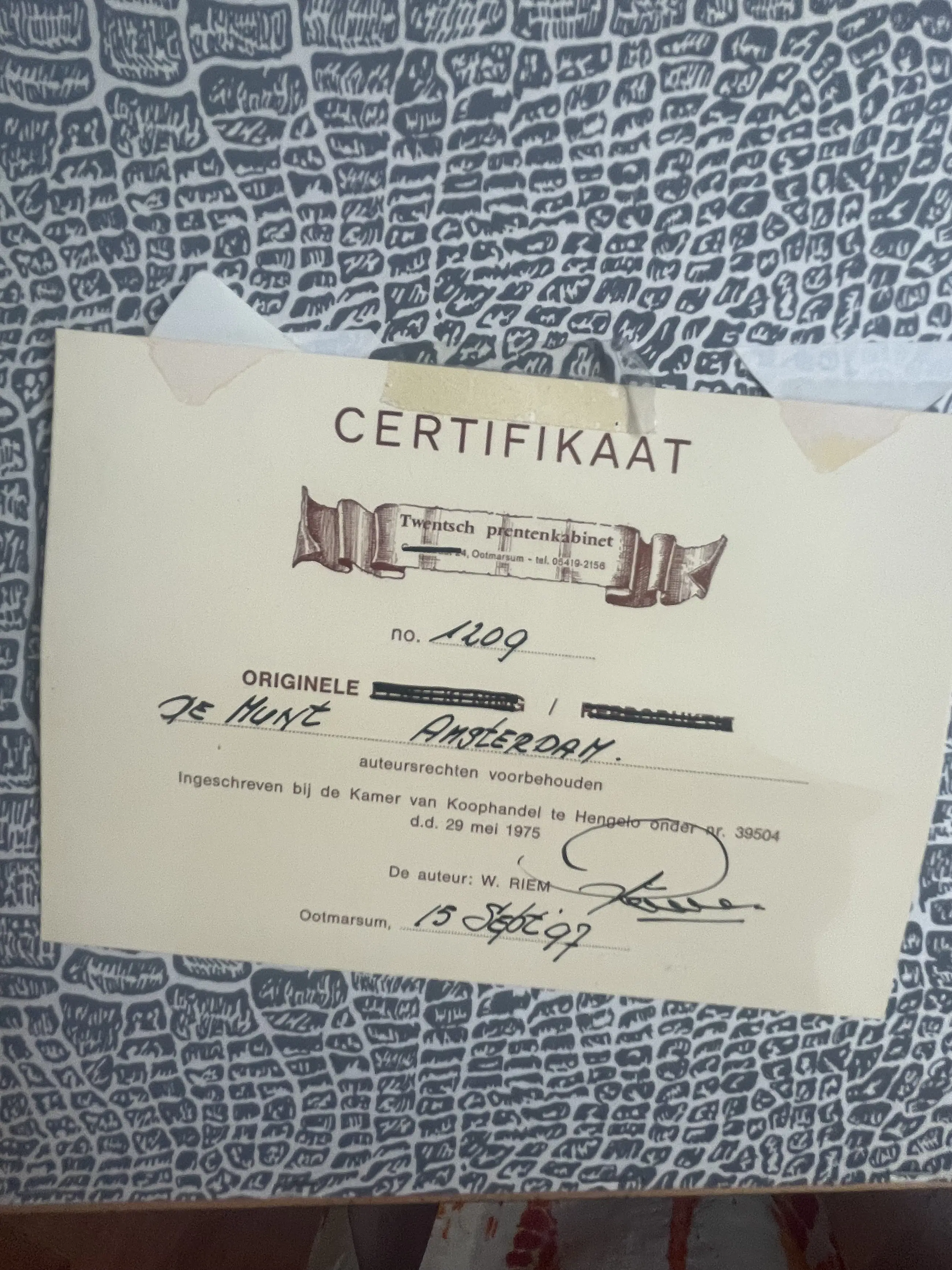 Het werk is af te halen op locatie. Als koper dient u zelf verpakkingsmateriaal mee te nemen. De locatie is: Almere, Nederland