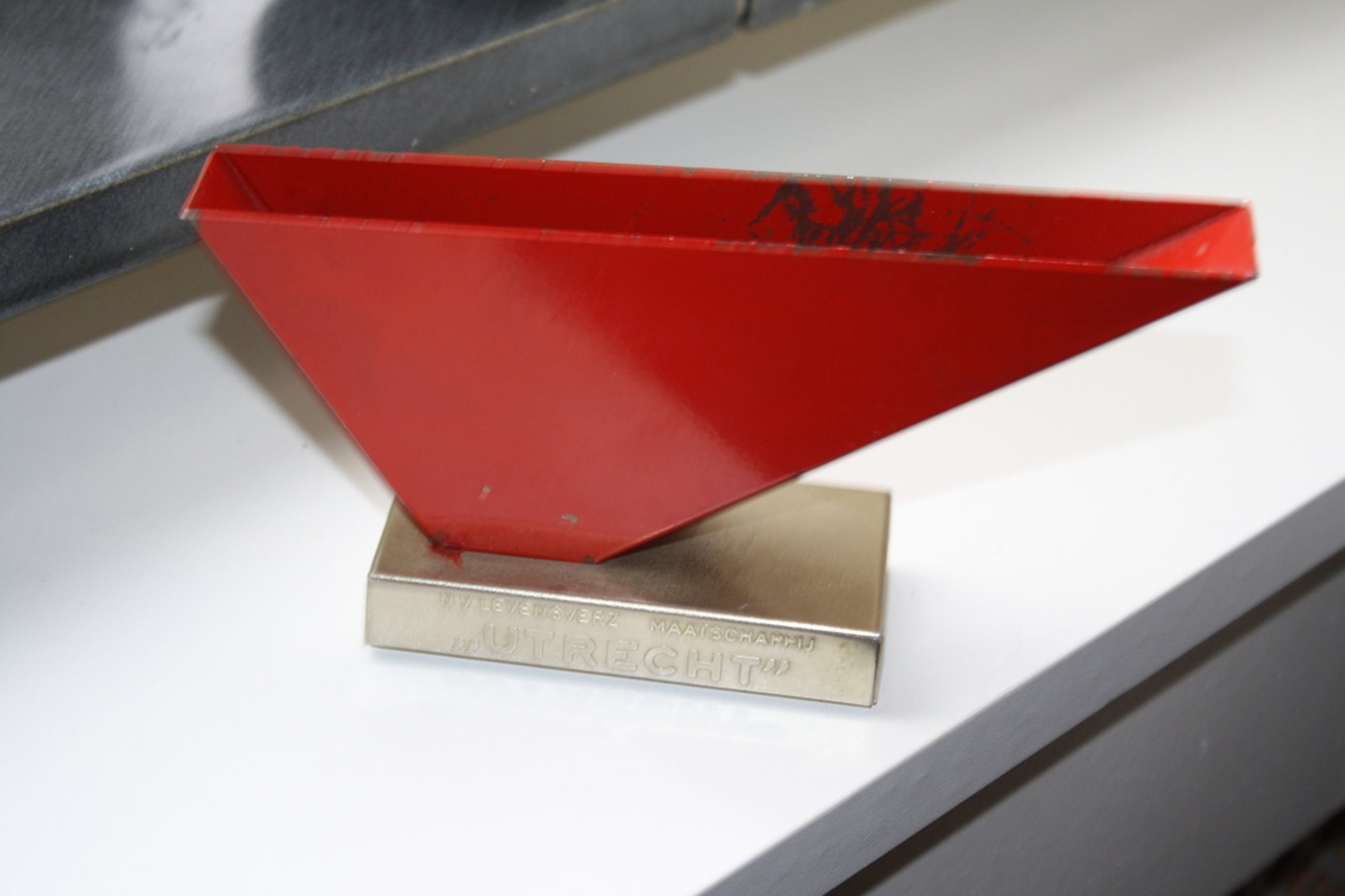 Modernistische ontwerp van Wim Rietveld: metalen brief houder gemaakt voor de N.V. Levensverzekering Maatschappij "Utrecht". 1965.